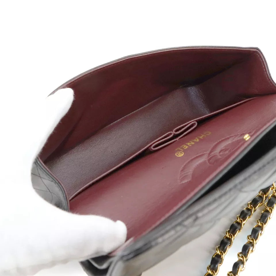 Auth CHANEL Matelasse 25 Chain Shoulder Bag Leather Black Purse