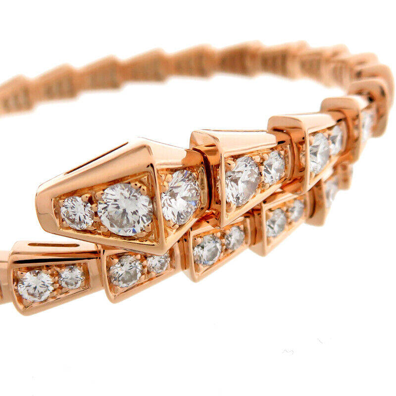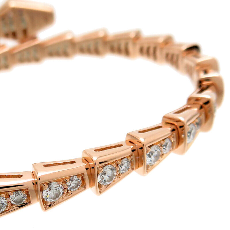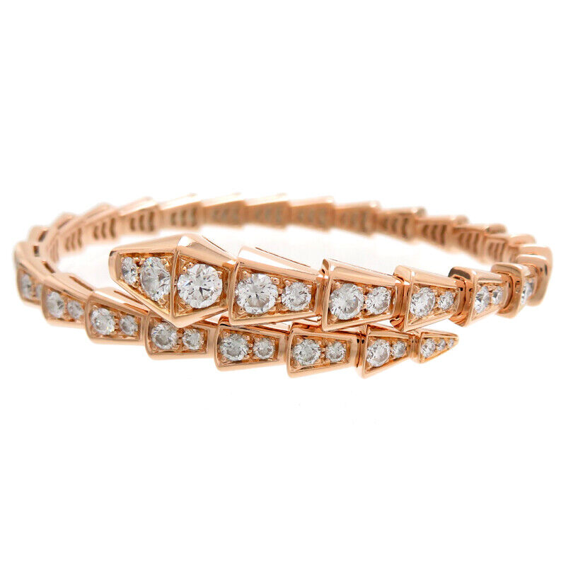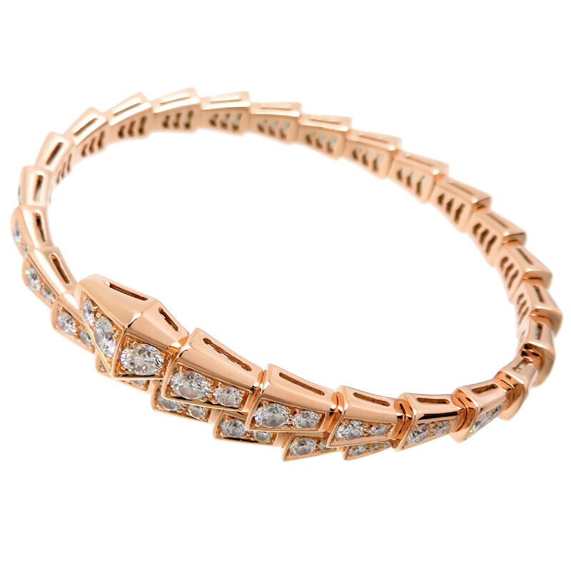 Embrace the iconic elegance of BVLGARI with this Serpenti Viper bracelet, exquisitely crafted from 750 pink gold. This luxurious piece, inspired by the sinuous shape of a serpent, wraps gracefully around the wrist, reflecting BVLGARI’s mastery in creating timeless and captivating jewelry.