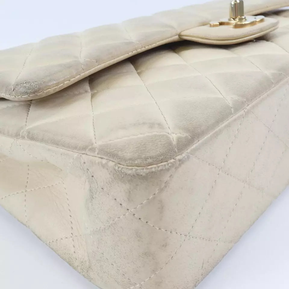 This CHANEL 1112 Shoulder Bag is a stunning example of timeless elegance, perfect for the modern woman who values luxury. Crafted from lambskin with light beige mat gold hardware, this bag offers both sophistication and practicality. It's ideal for adding a touch of class to any outfit.