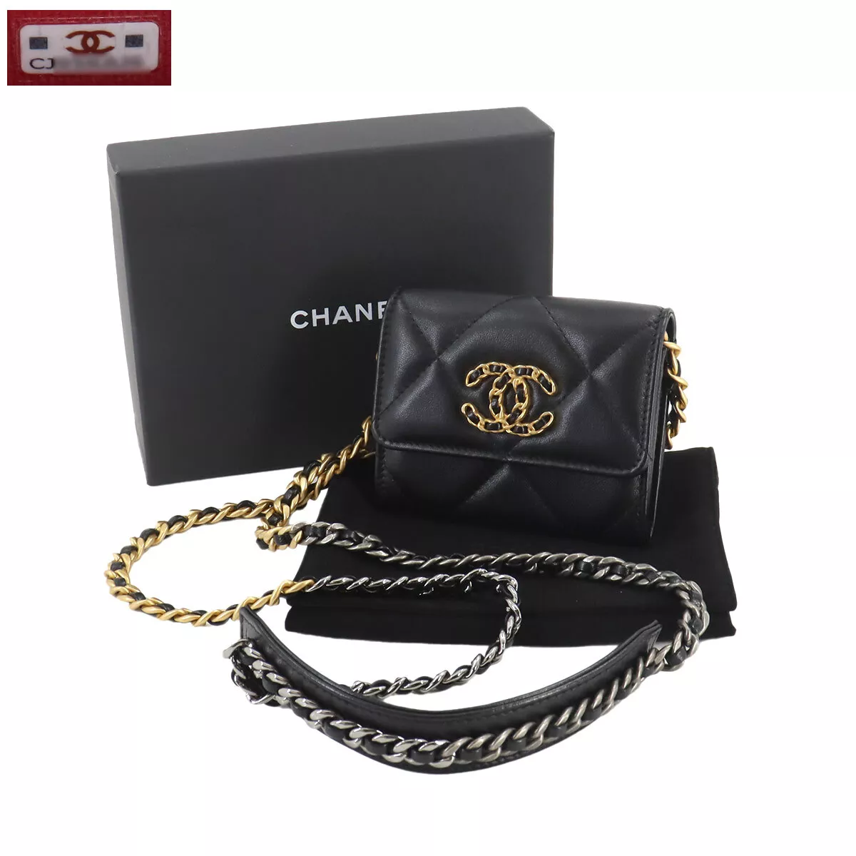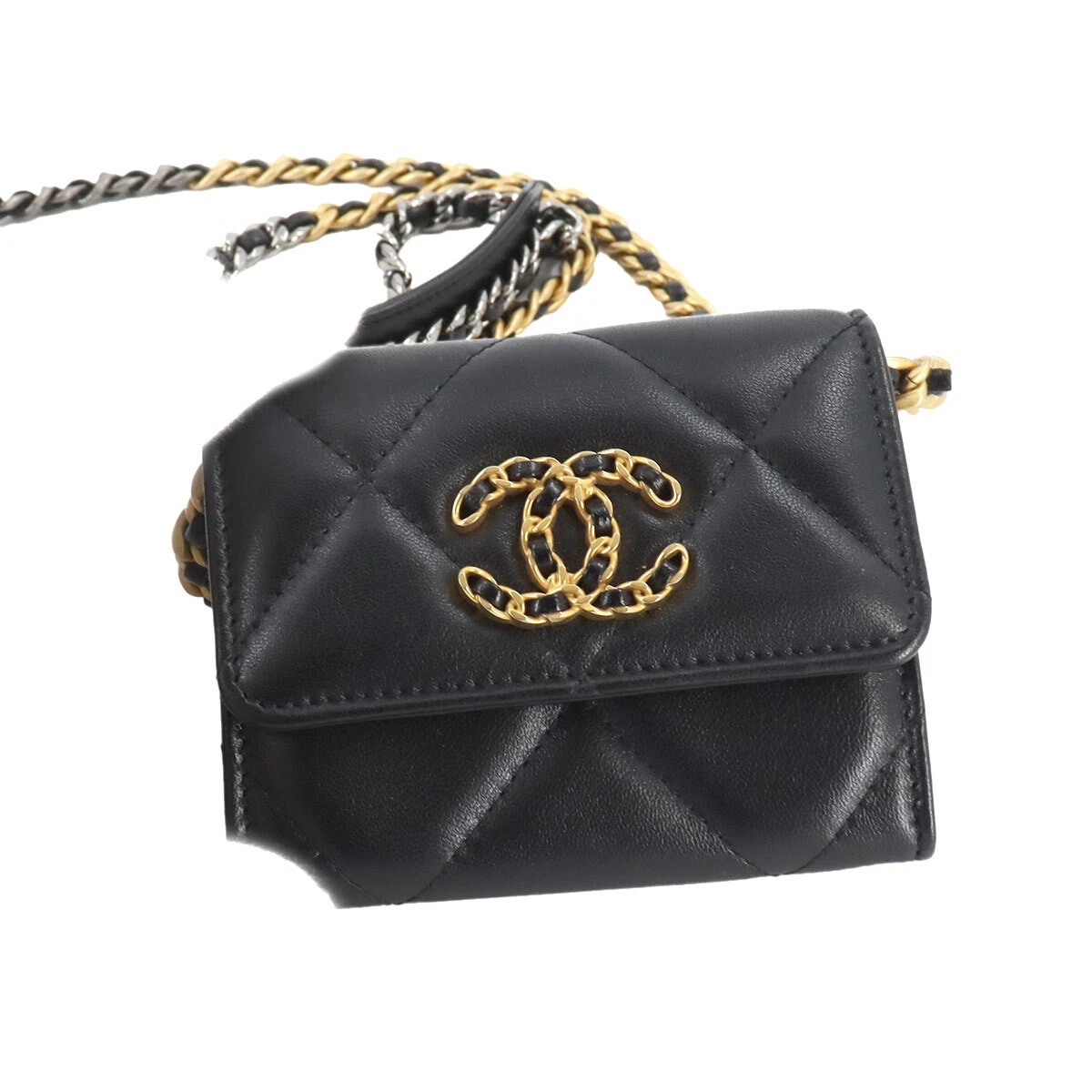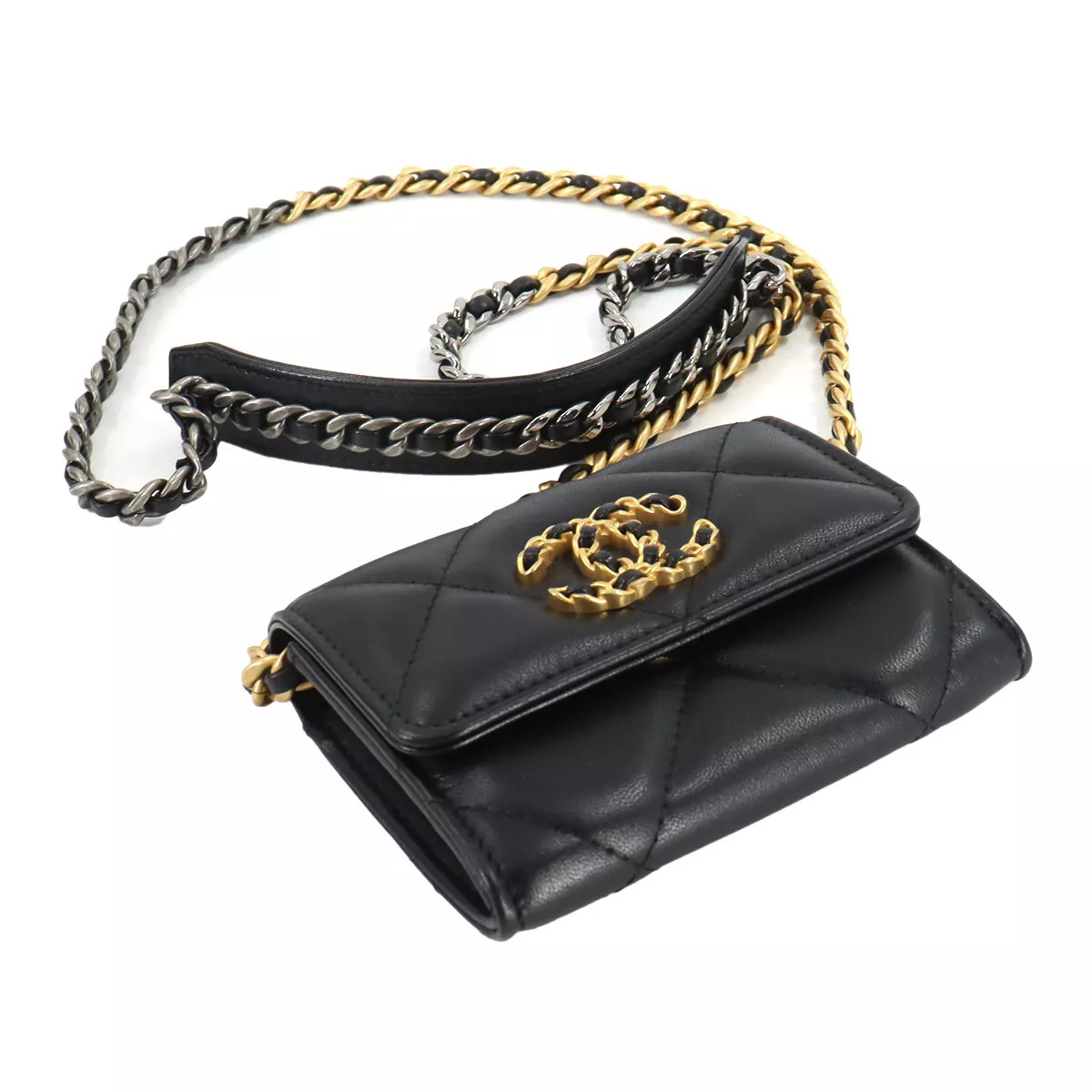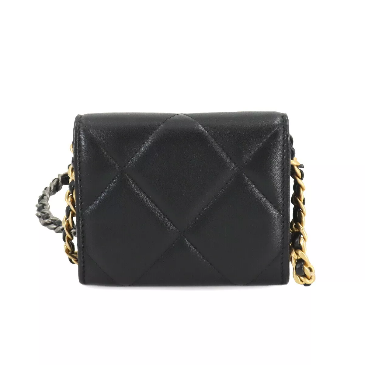 CHANEL 19 Flap Coin Purse Chain Coin Case Leather Black