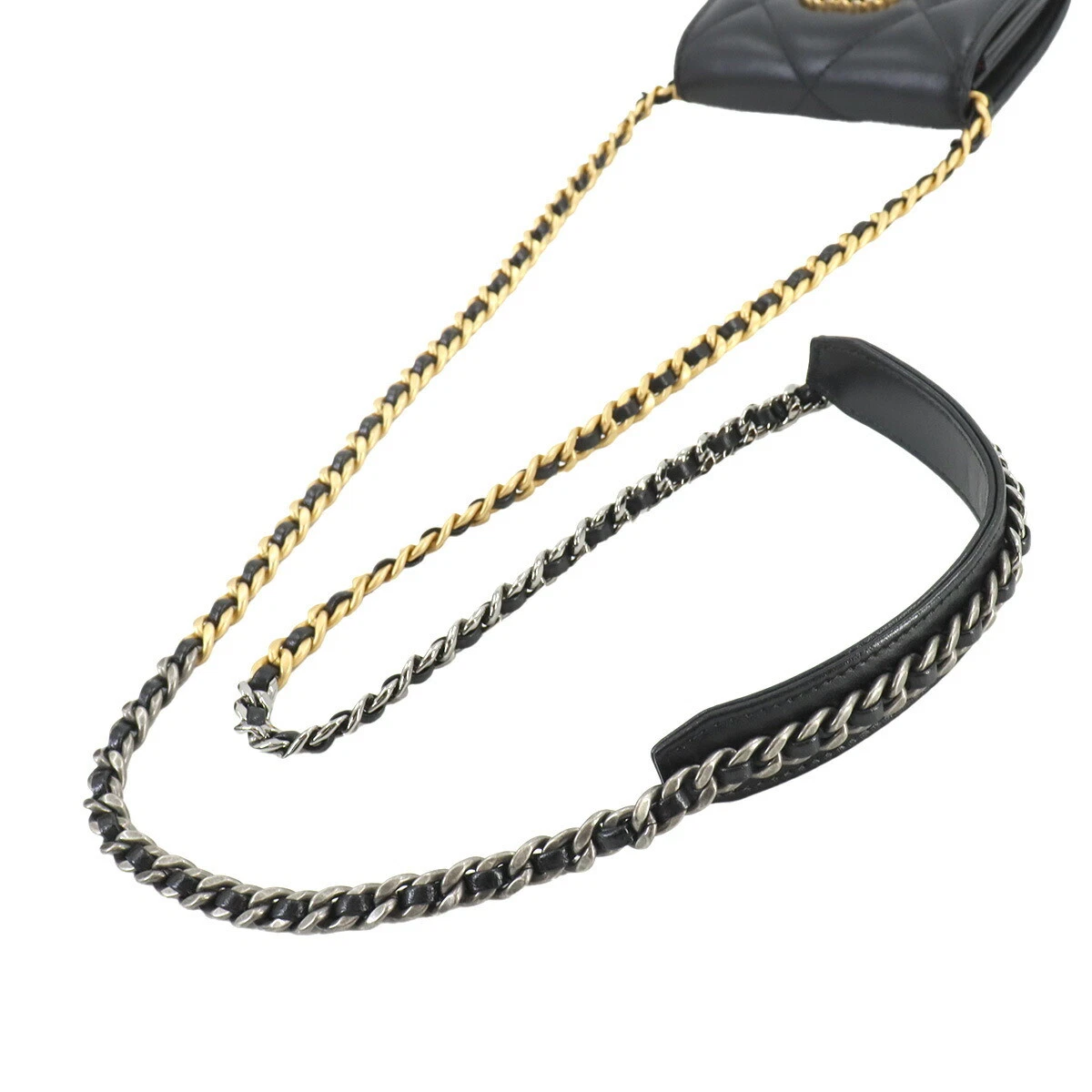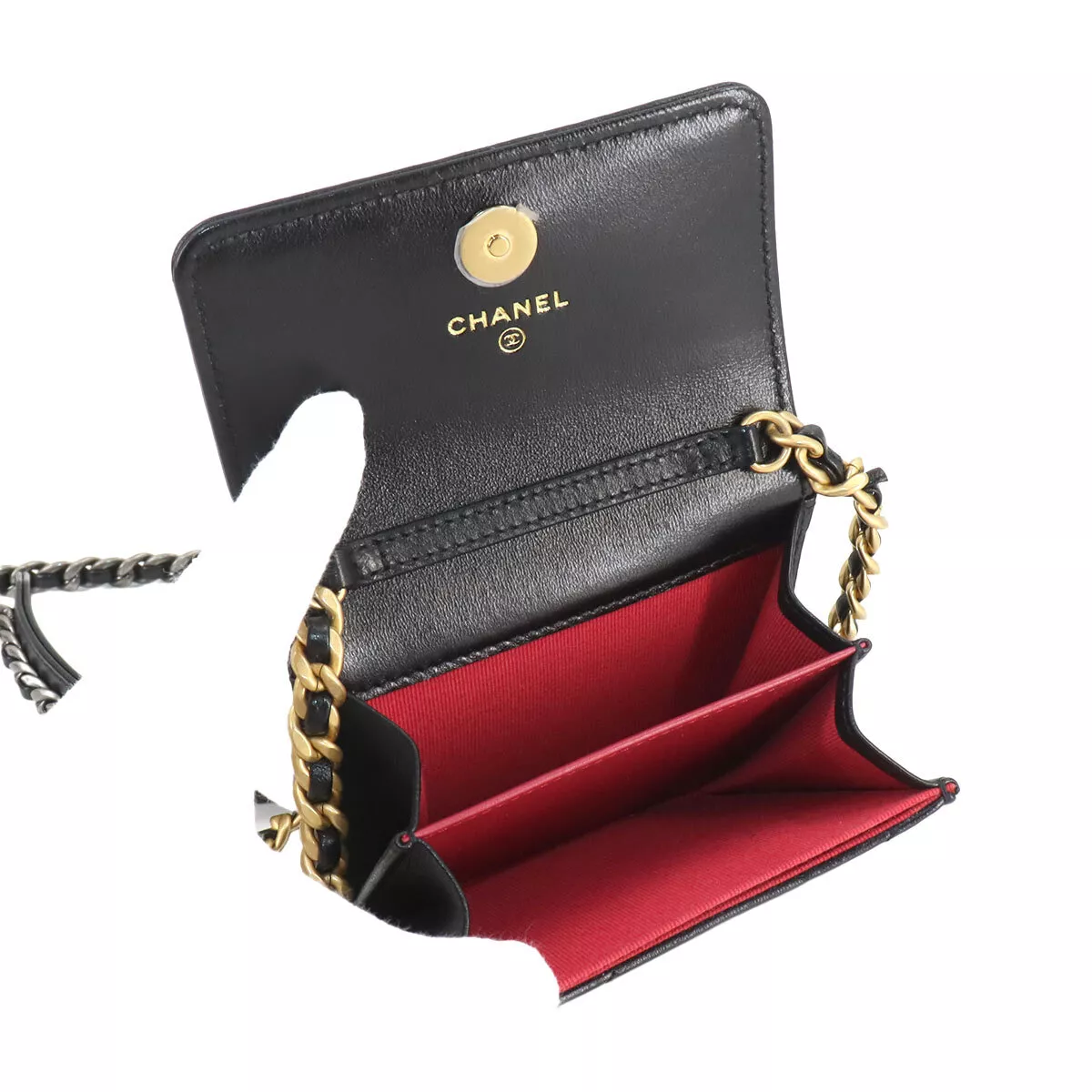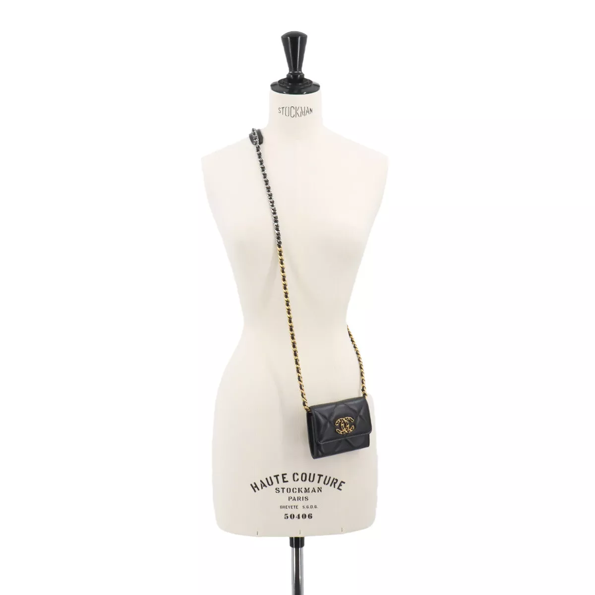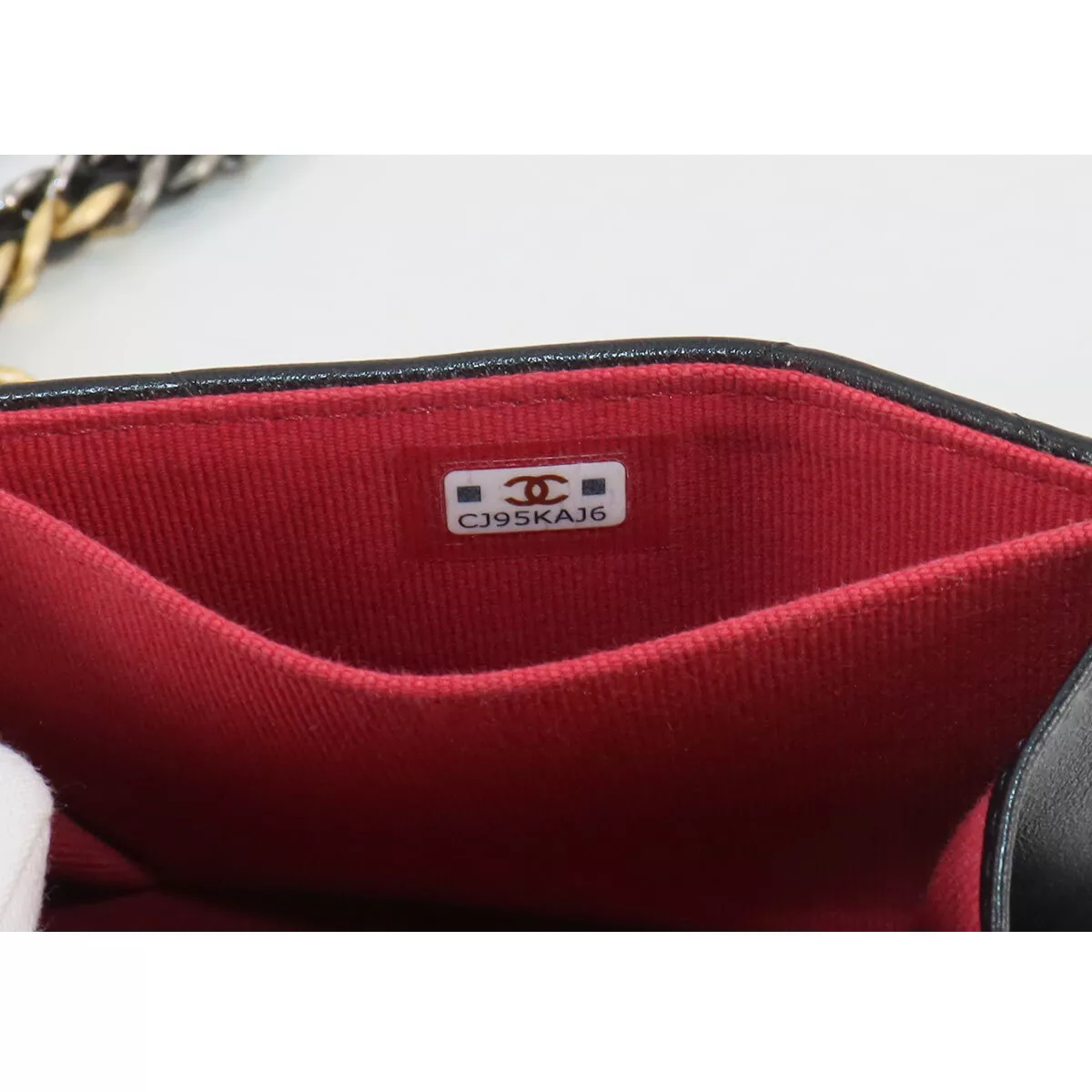 CHANEL 19 Flap Coin Purse Chain Coin Case Leather Black
