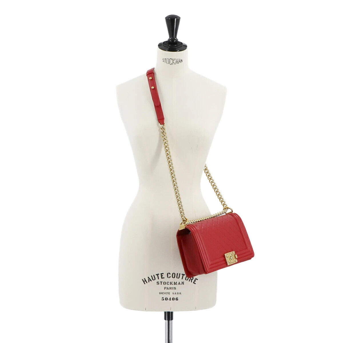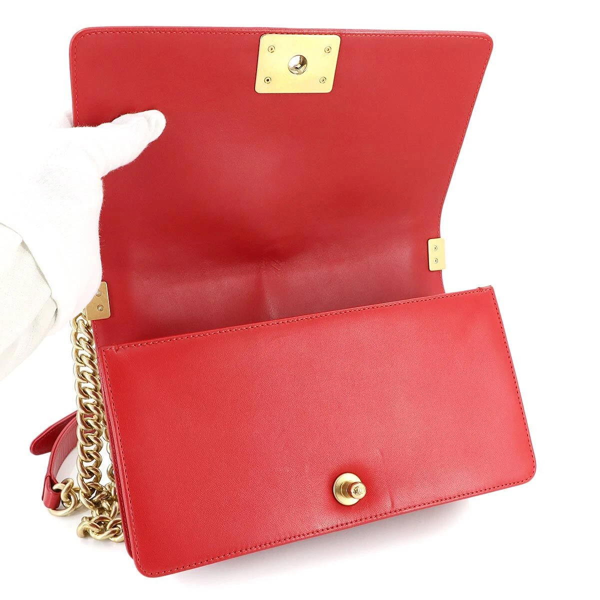 CHANEL BOY CHANEL Chain Shoulder Bag Leather Red Purse