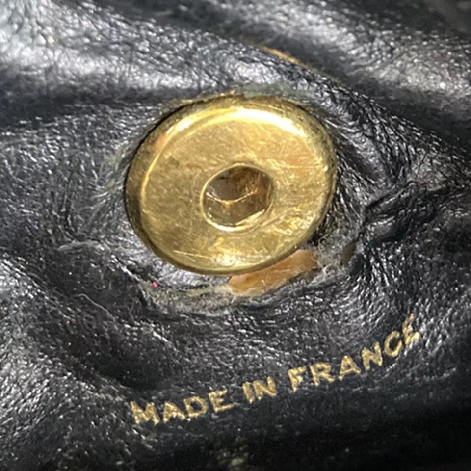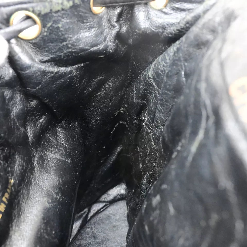 This authentic Chanel CC Logo Matelasse Chain Backpack Bag is a timeless and iconic piece, crafted from black leather with gold-tone hardware. Made in France, this backpack features a chain shoulder strap with a drop of 13 to 14.2 inches, making it both functional and stylish. The exterior shows signs of wear, including scuffs, dirt, stains, scratches, and peeling on the gold-plated hardware. The interior also has wear, with scuffs, dirt, and signs of deterioration. There is a light closet smell present.