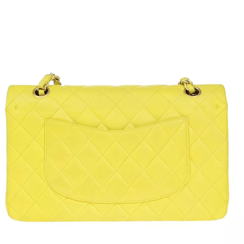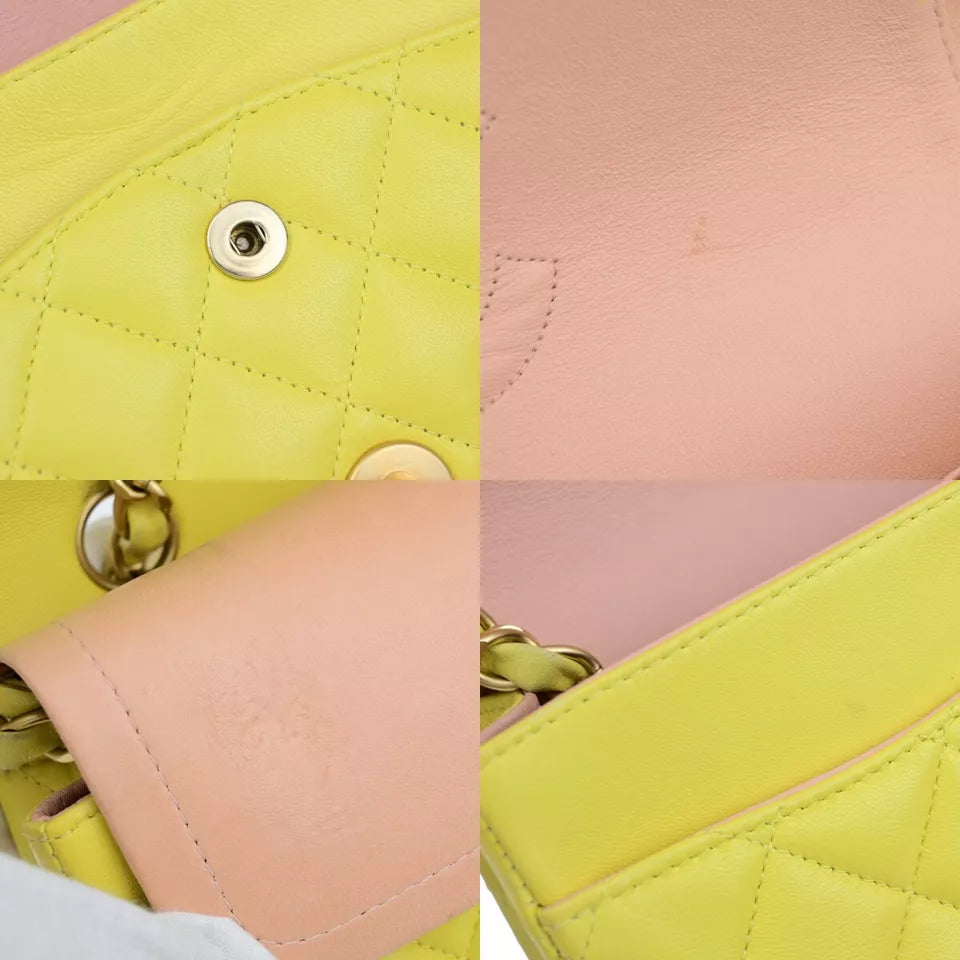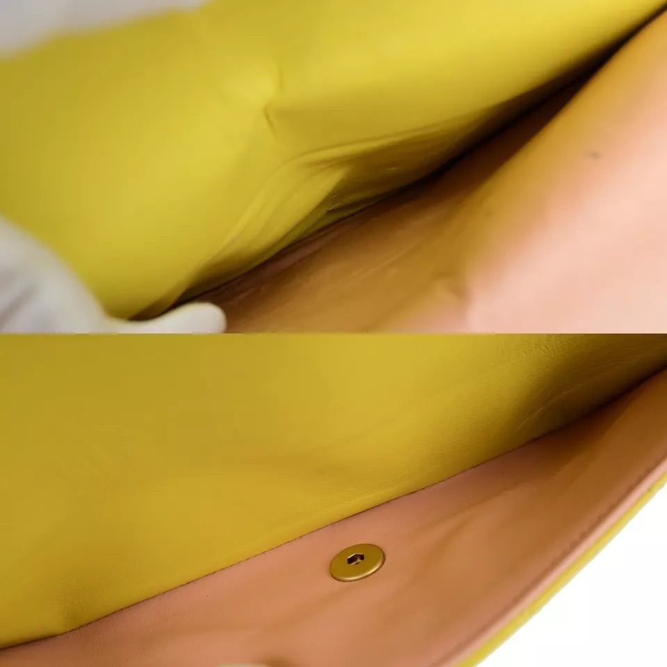 This iconic Chanel CC Matelasse Double Flap Chain Shoulder Bag in yellow leather is a timeless piece that adds a pop of color to any ensemble. Crafted in France, this shoulder bag features Chanel’s signature quilted pattern with a double flap closure for secure storage.