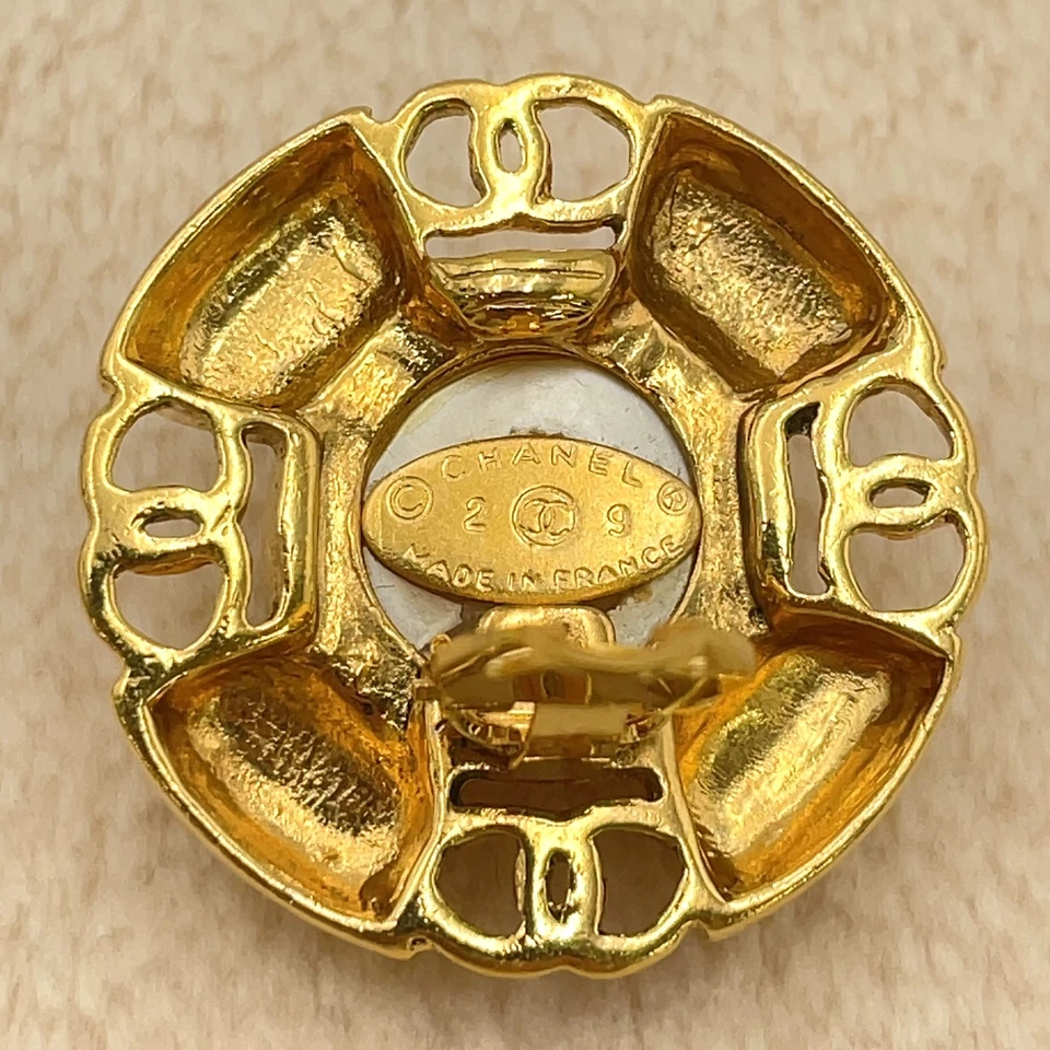 Chanel Coco Faux Pearl Earrings in Gold-Tone Metal (29 Engraved)