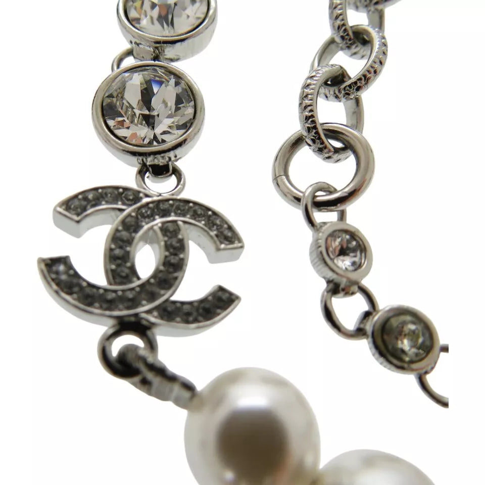 CHANEL Costume Pearl Crystal Choker Necklace – Silver
