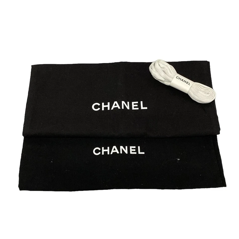 CHANEL Cream Light Green Tweeds Leather Suede Women's Sneakers