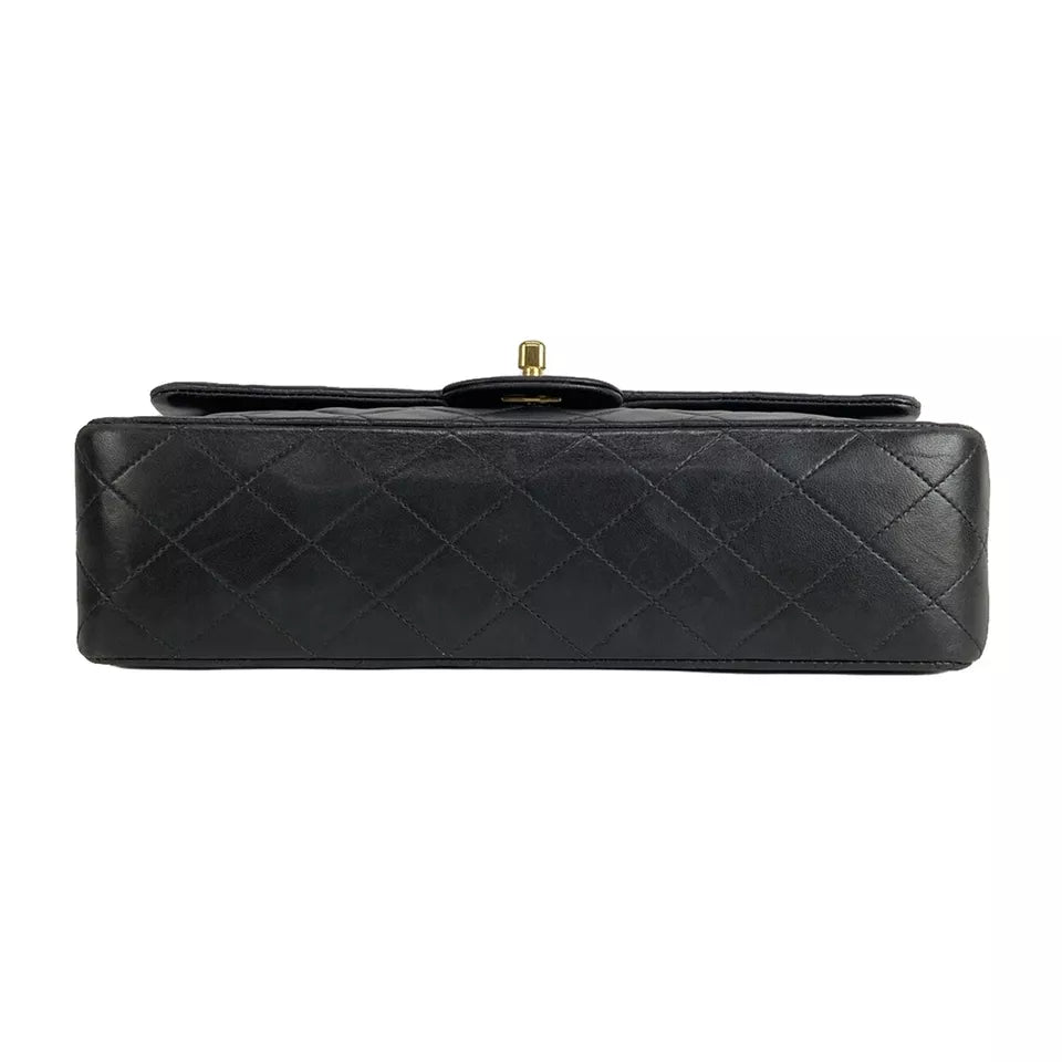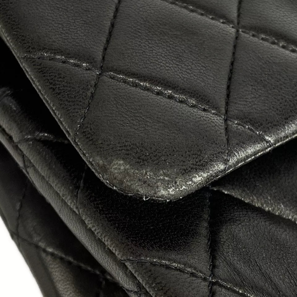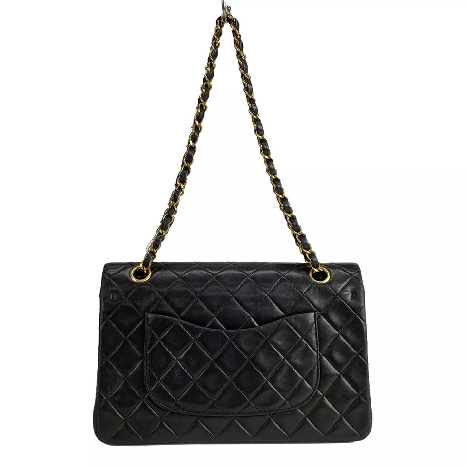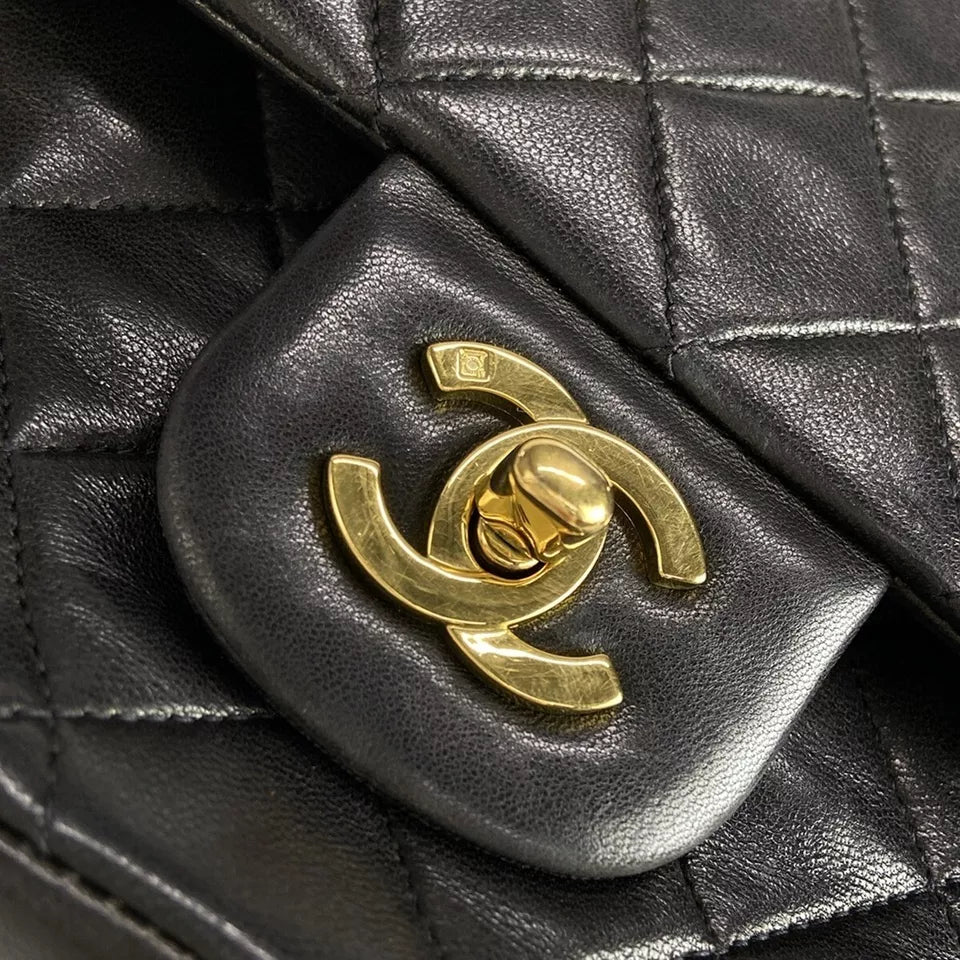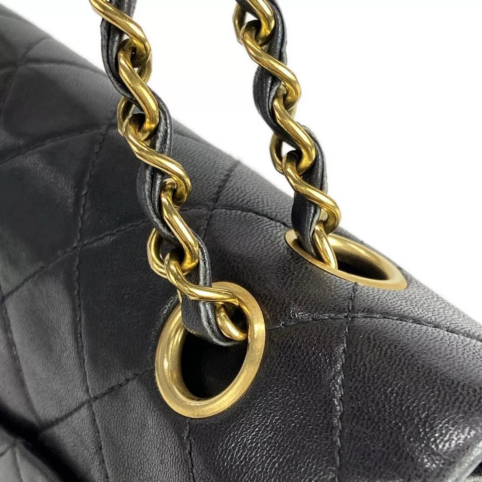 This CHANEL Double Flap Matelasse Shoulder Bag is crafted from luxurious black lambskin and is a classic accessory for any wardrobe. Its detailed matelasse quilting adds an iconic touch paired with gold hardware for timeless elegance.