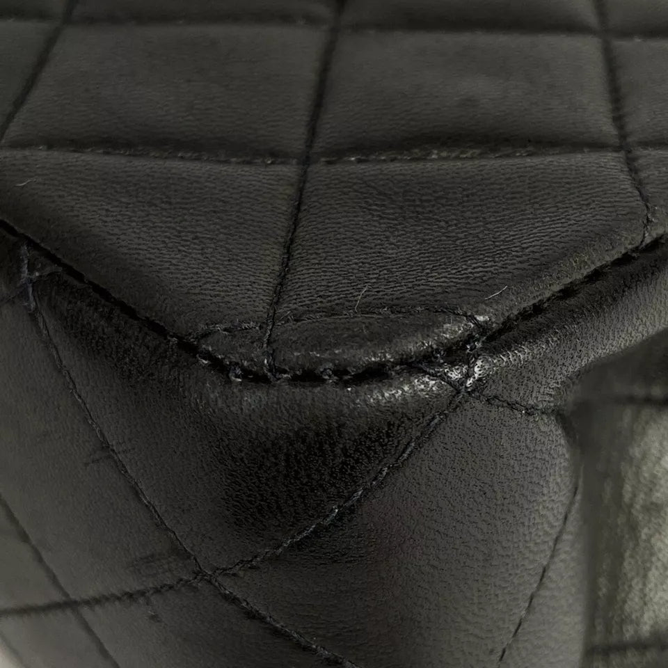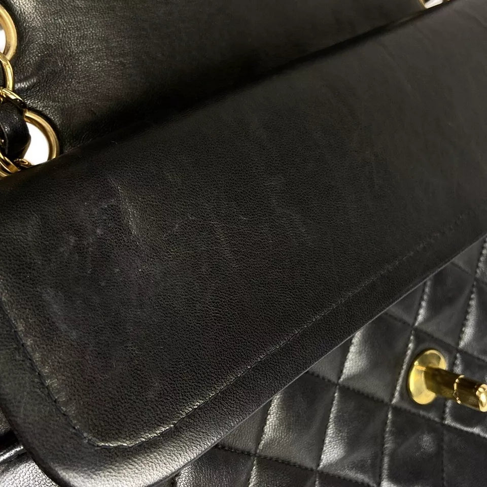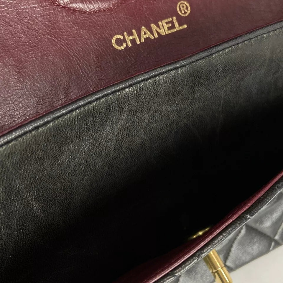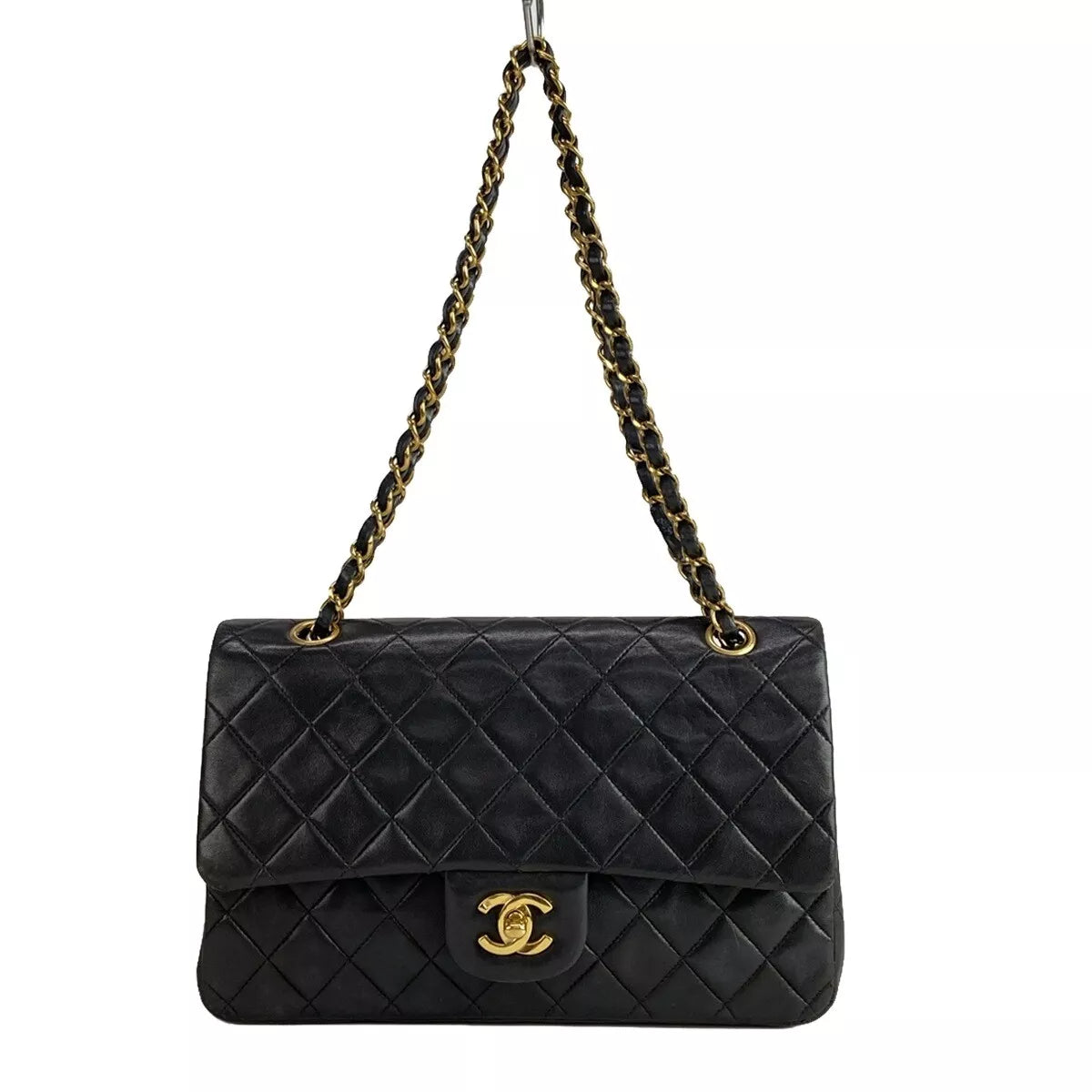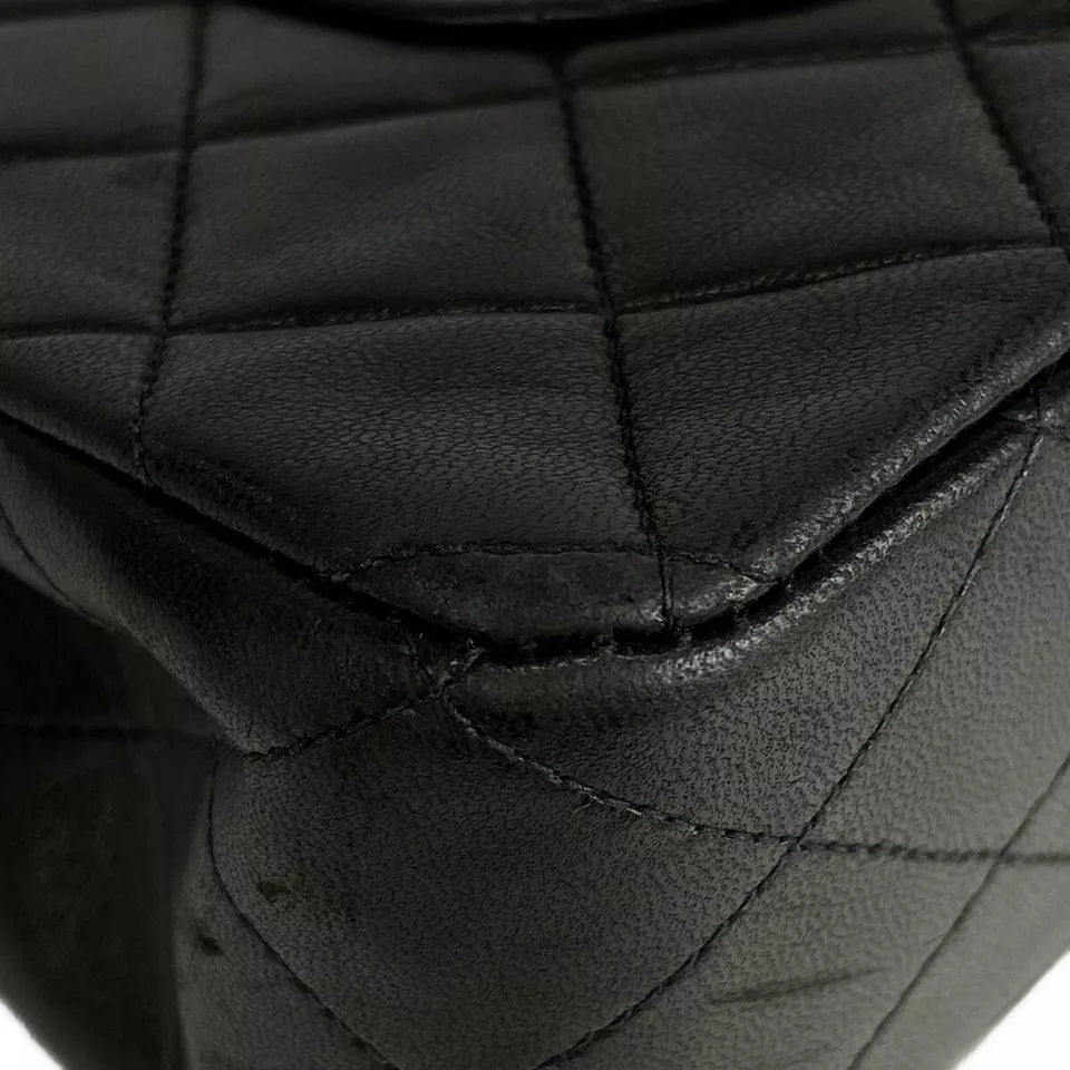 This CHANEL Double Flap Matelasse Shoulder Bag is crafted from luxurious black lambskin and is a classic accessory for any wardrobe. Its detailed matelasse quilting adds an iconic touch paired with gold hardware for timeless elegance.