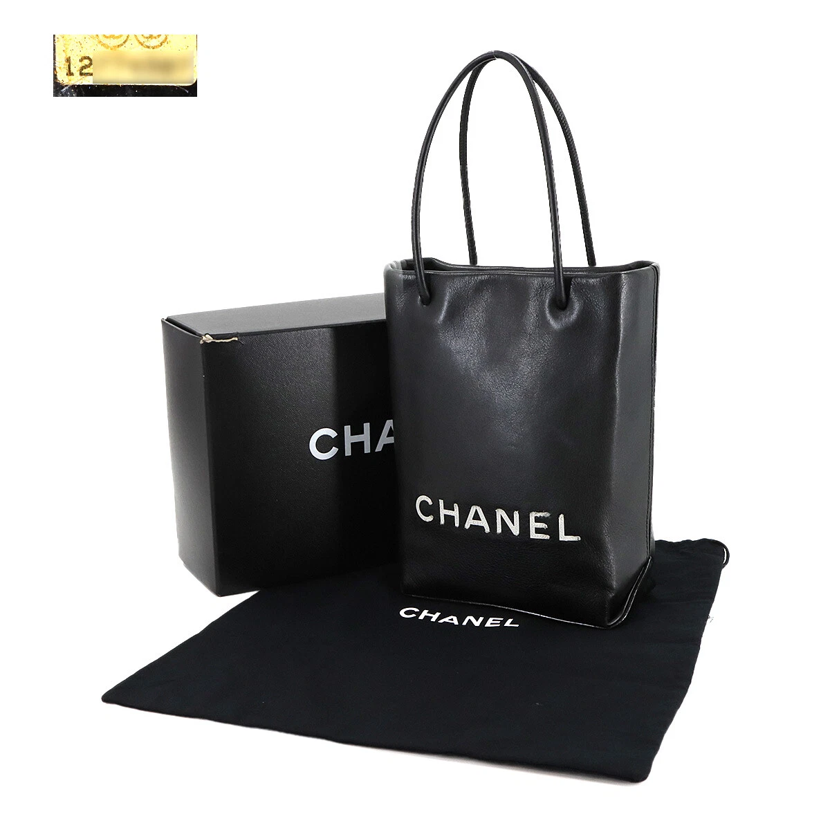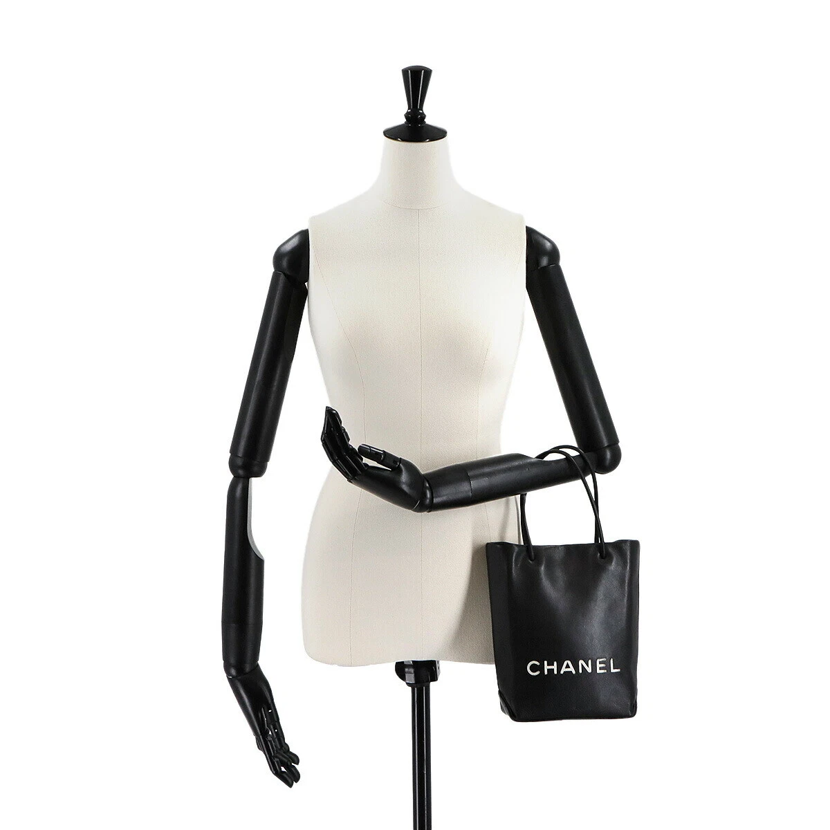 CHANEL Essential Tote Bag Leather Black White Purse