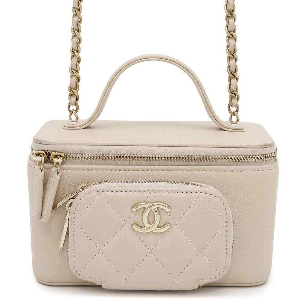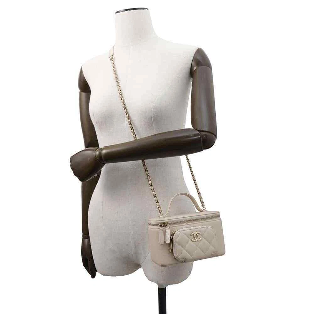 CHANEL Matelasse 2WAY Chain Vanity Bag Calfskin Beige