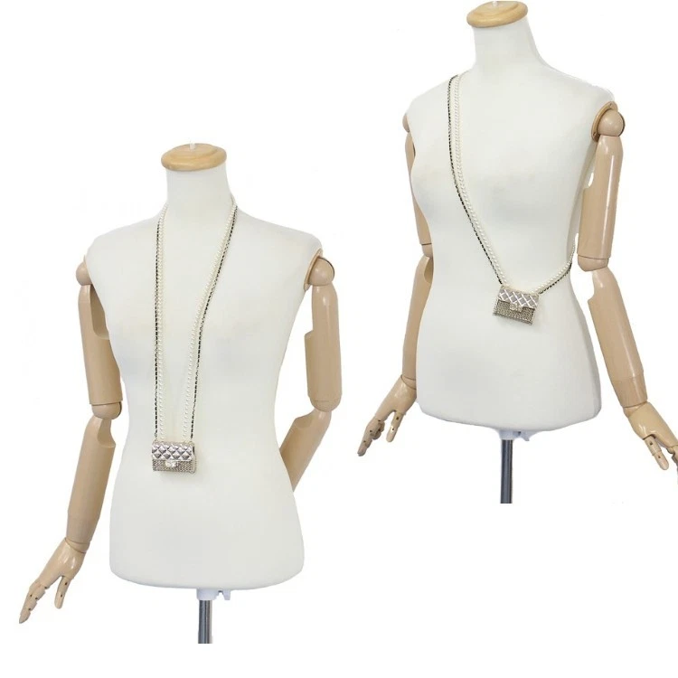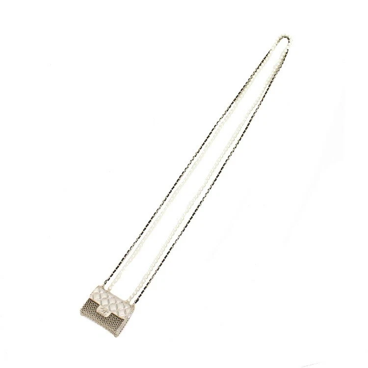 Chanel Matelasse Bag Necklace Faux Pearl Coco Mark Lambskin