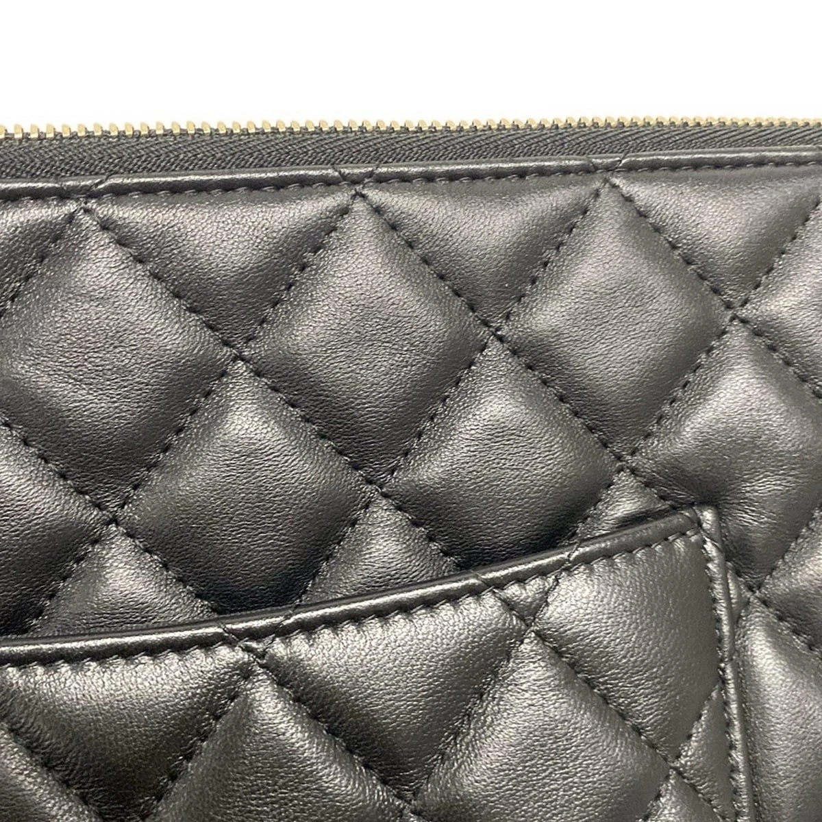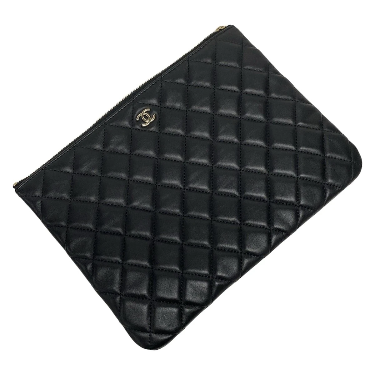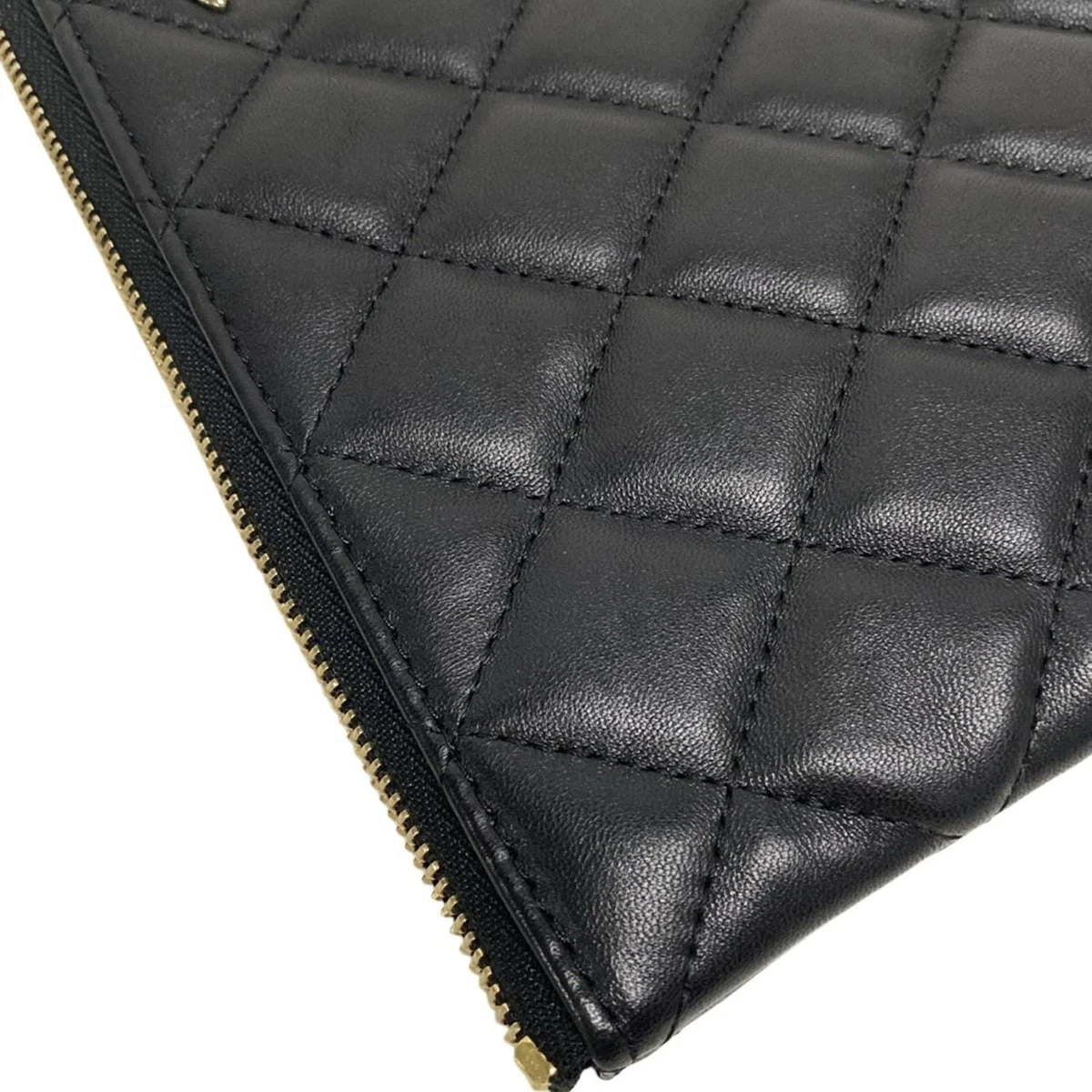 CHANEL Matelasse Black Lambskin Clutch Bag Gold Hardware