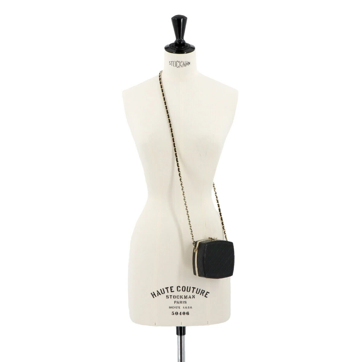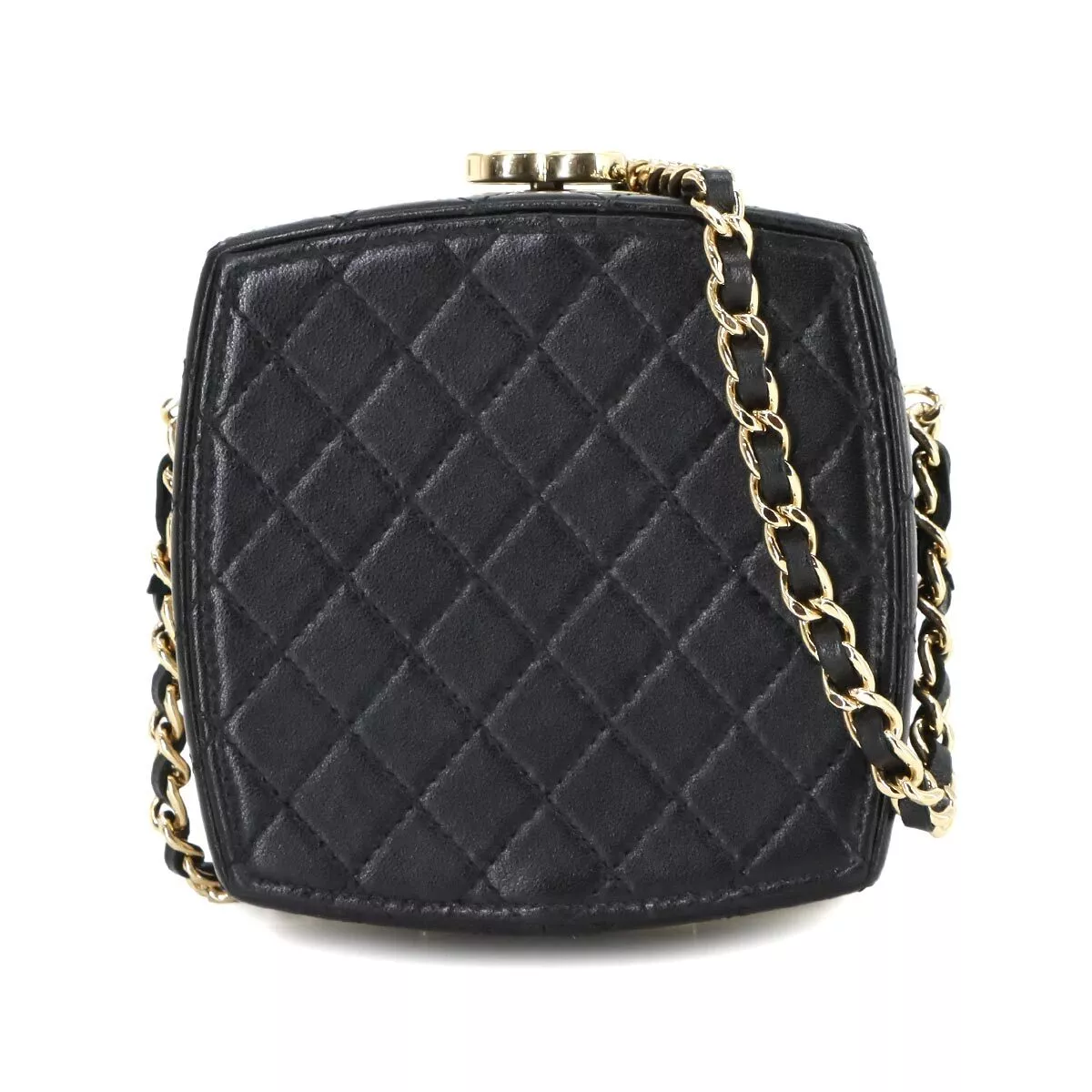 CHANEL Matelasse Chain Clutch Shoulder Bag Leather Black