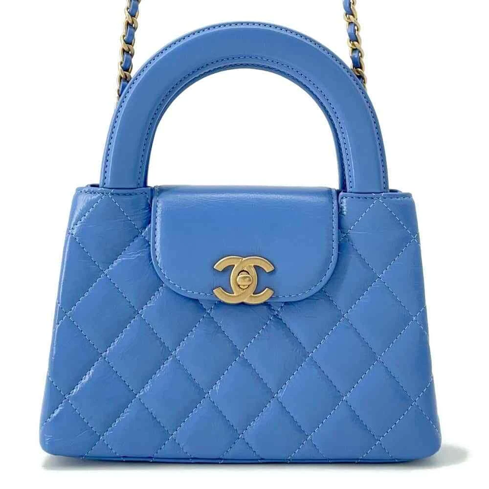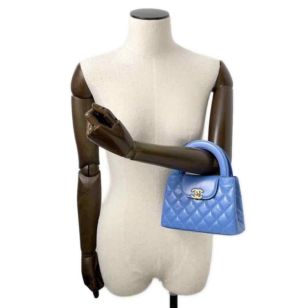 CHANEL Matelasse Mini Shopping Bag 2-Way Bag Size Mini Shiny Calf Leather Light Blue