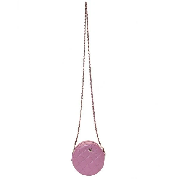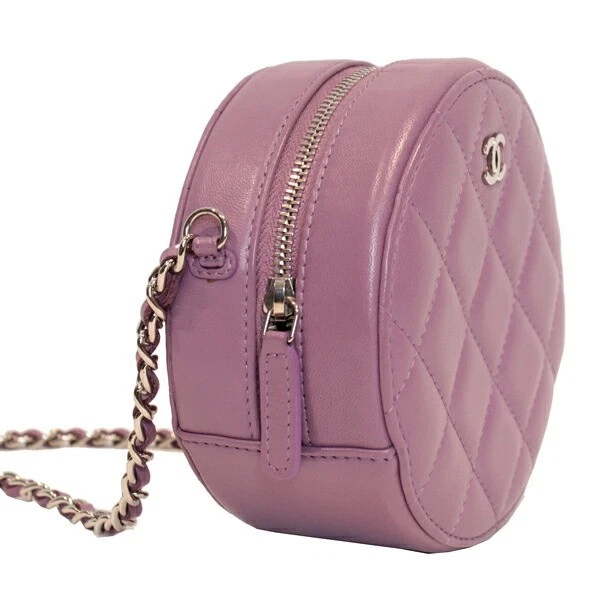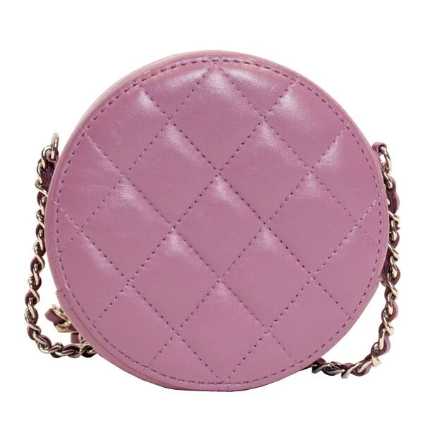 Chanel Matelasse Round Chain Shoulder Bag Lambskin Purple