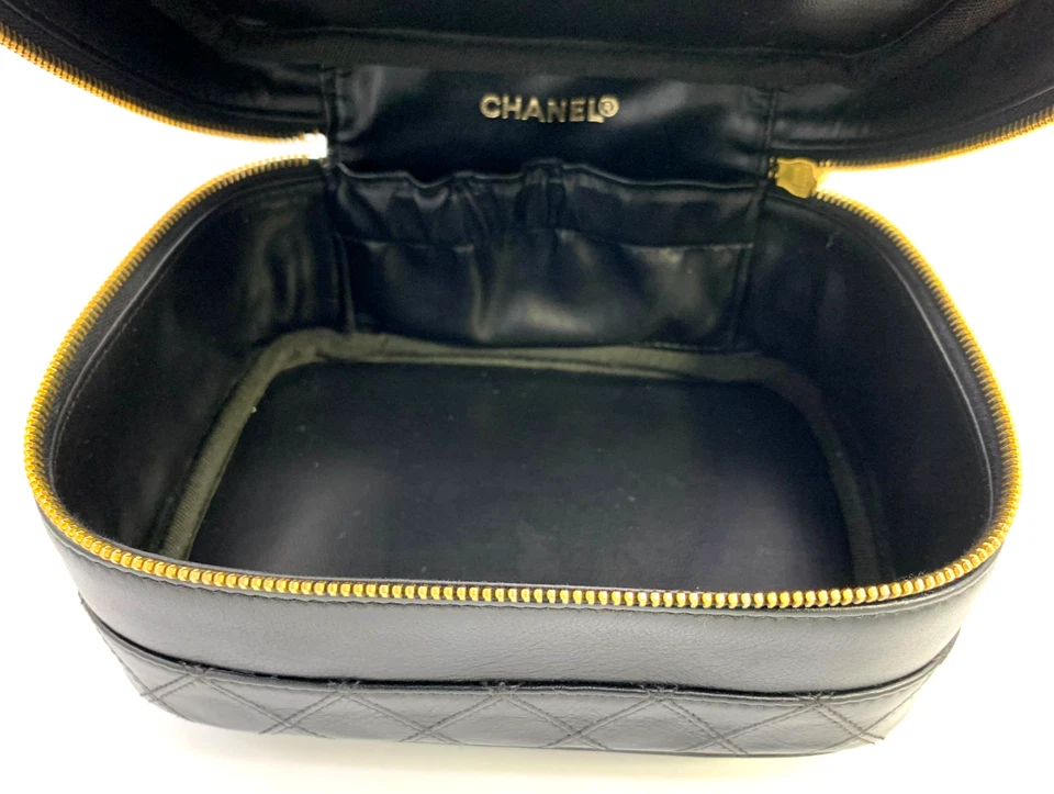 Chanel Matelassé Vanity Bag in Black Leather (Vintage)