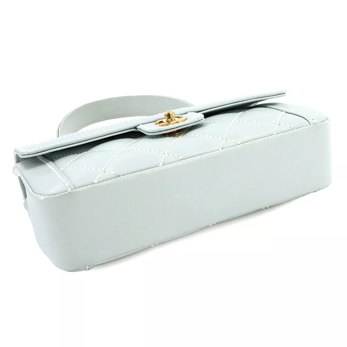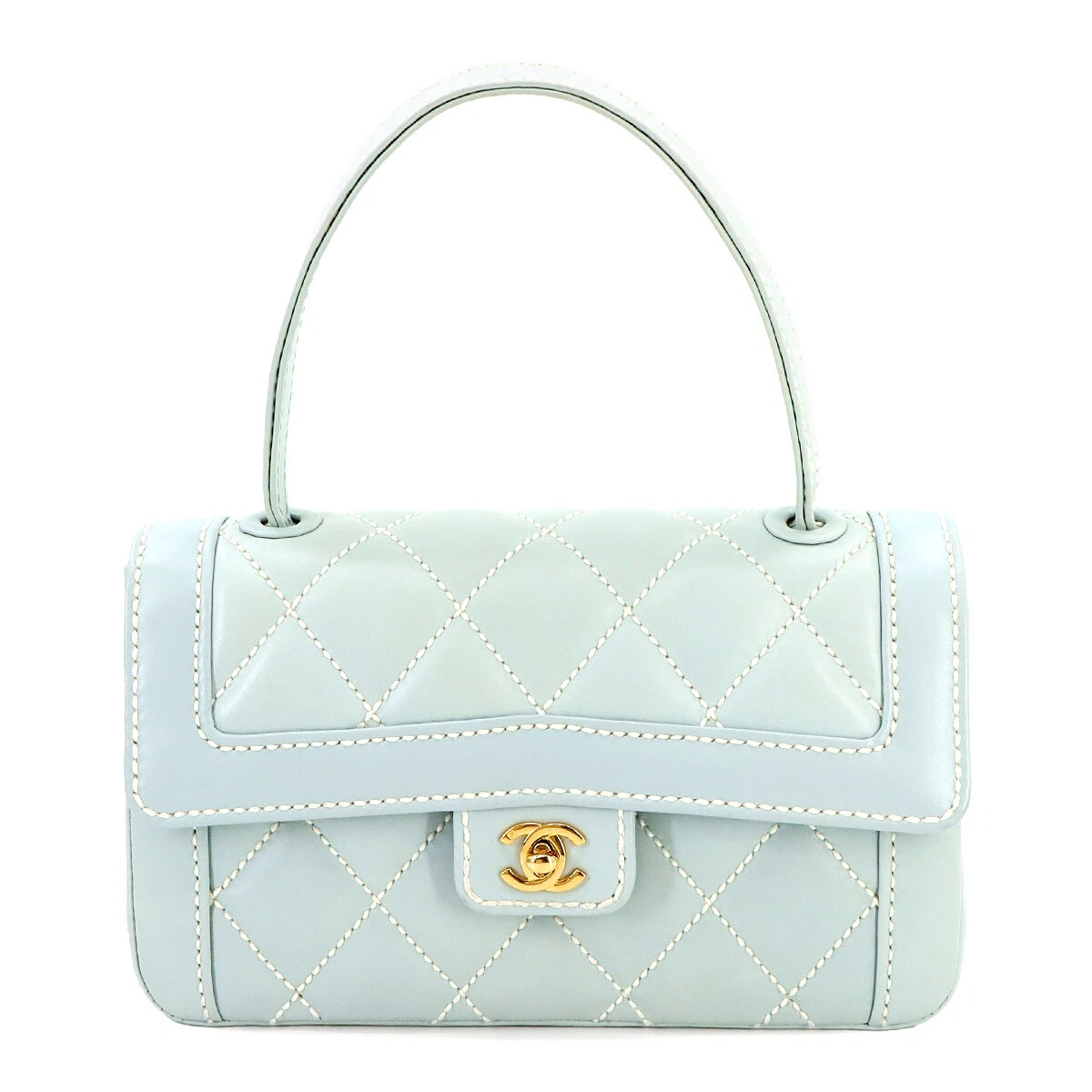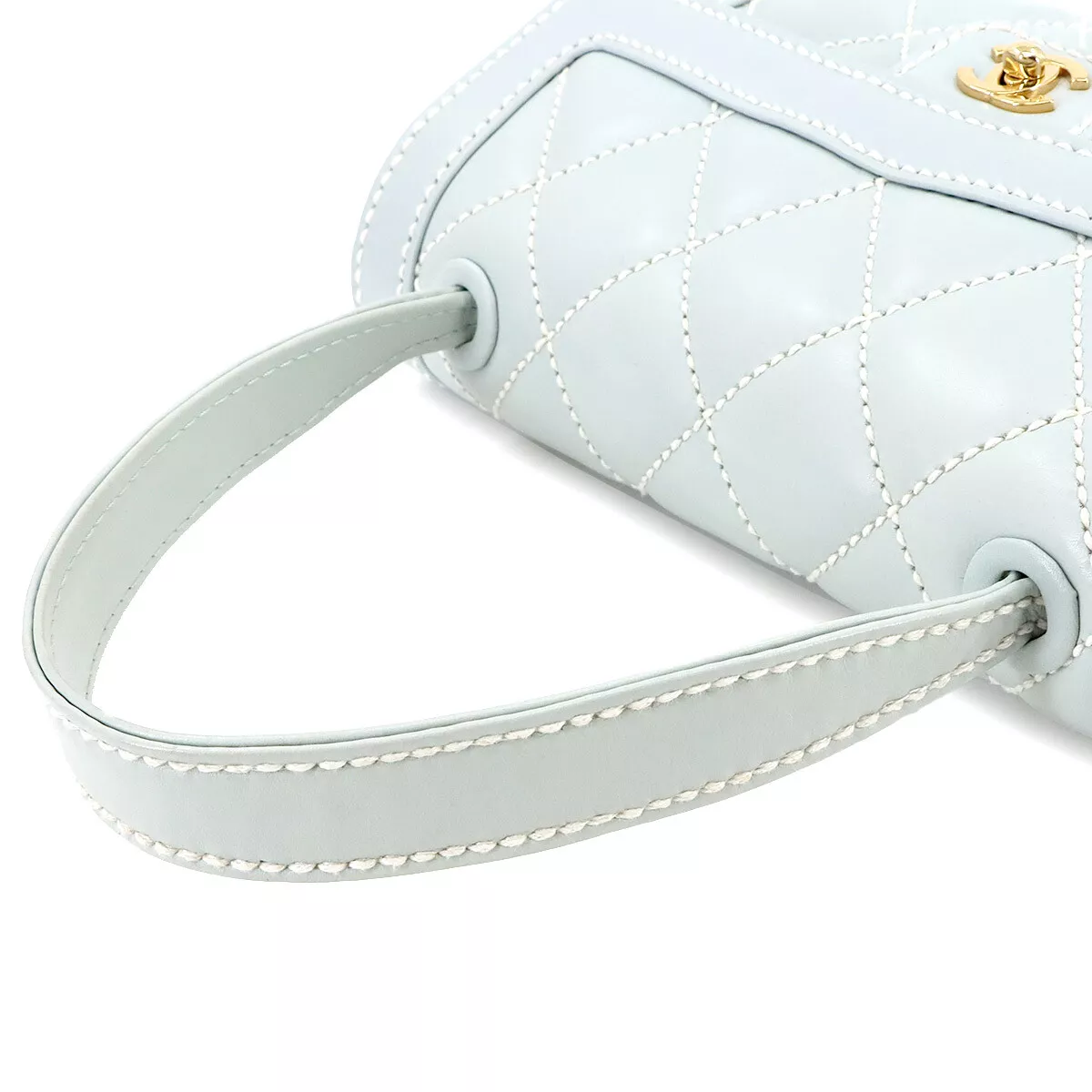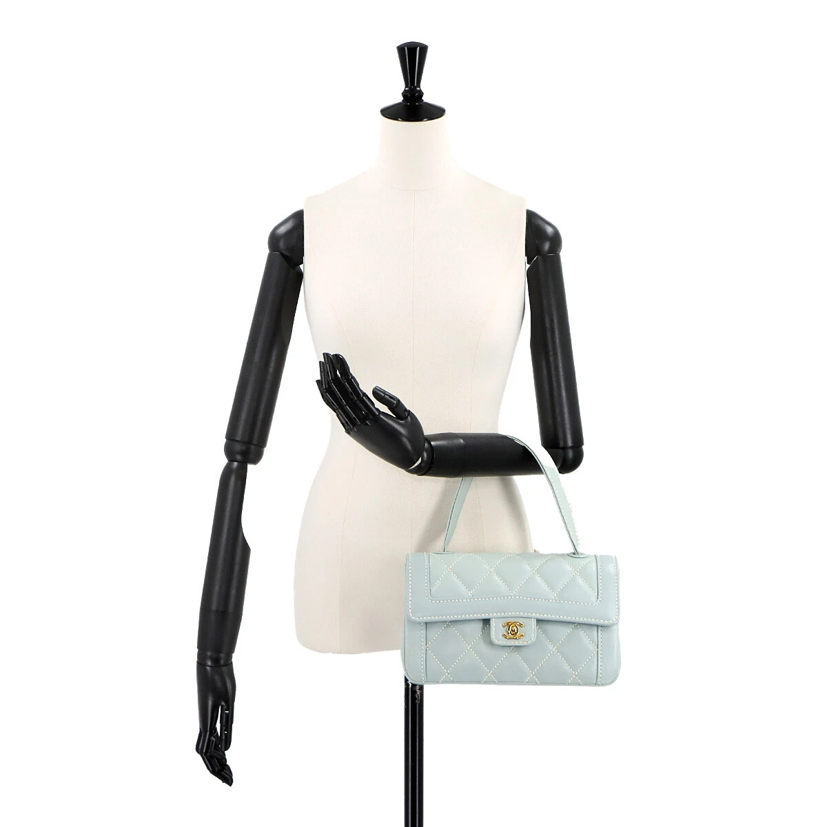 CHANEL Matelasse Wild Stitch Hand Bag Leather Light Blue