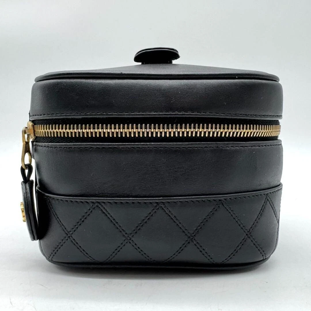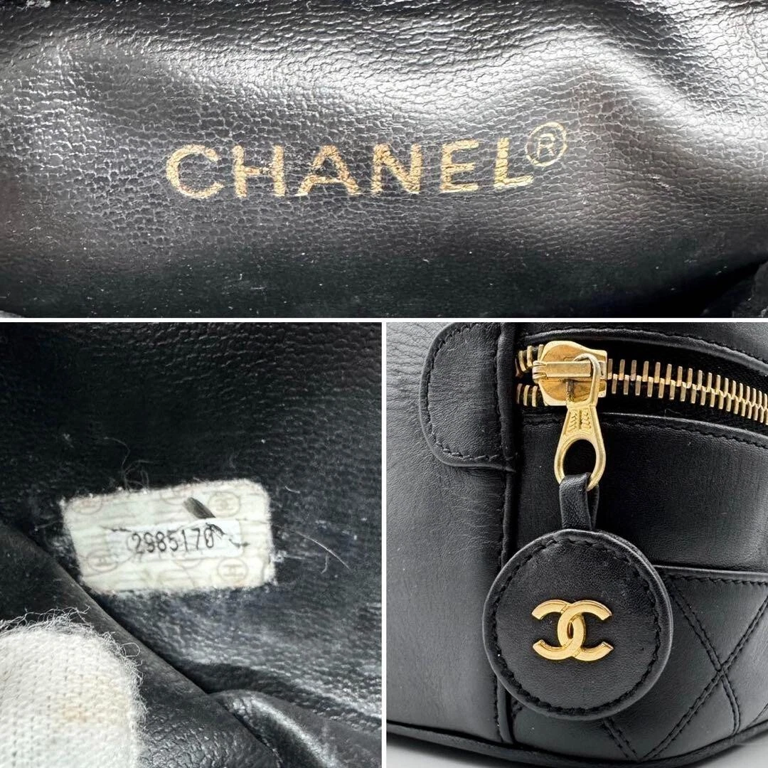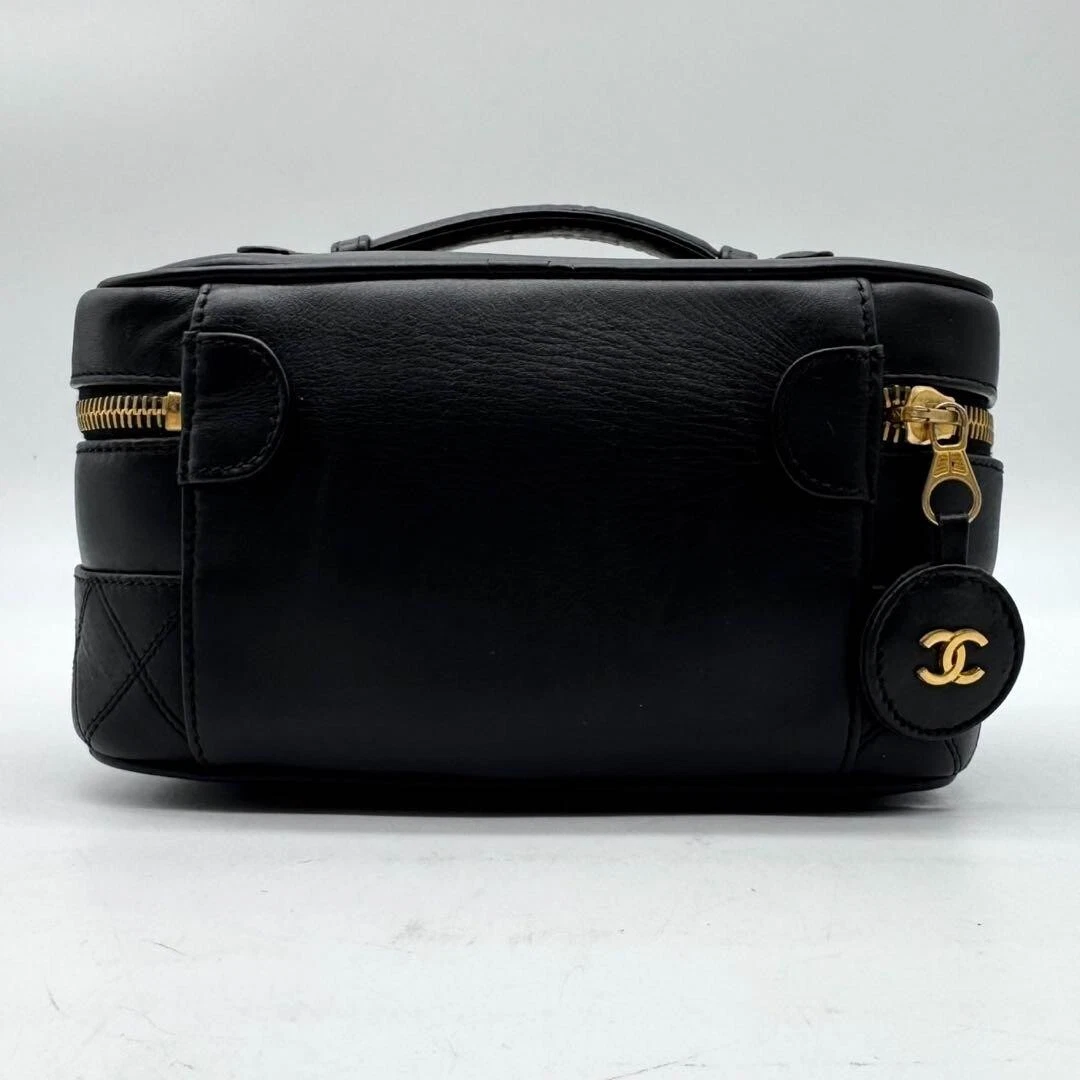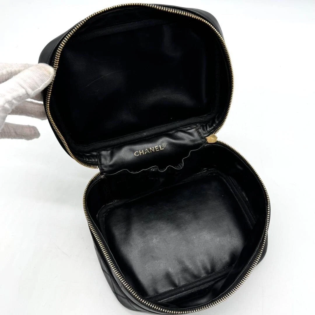 Chanel MATRASSE Vanity Bag Coco Mark Bicolore Lambskin Black Women’s