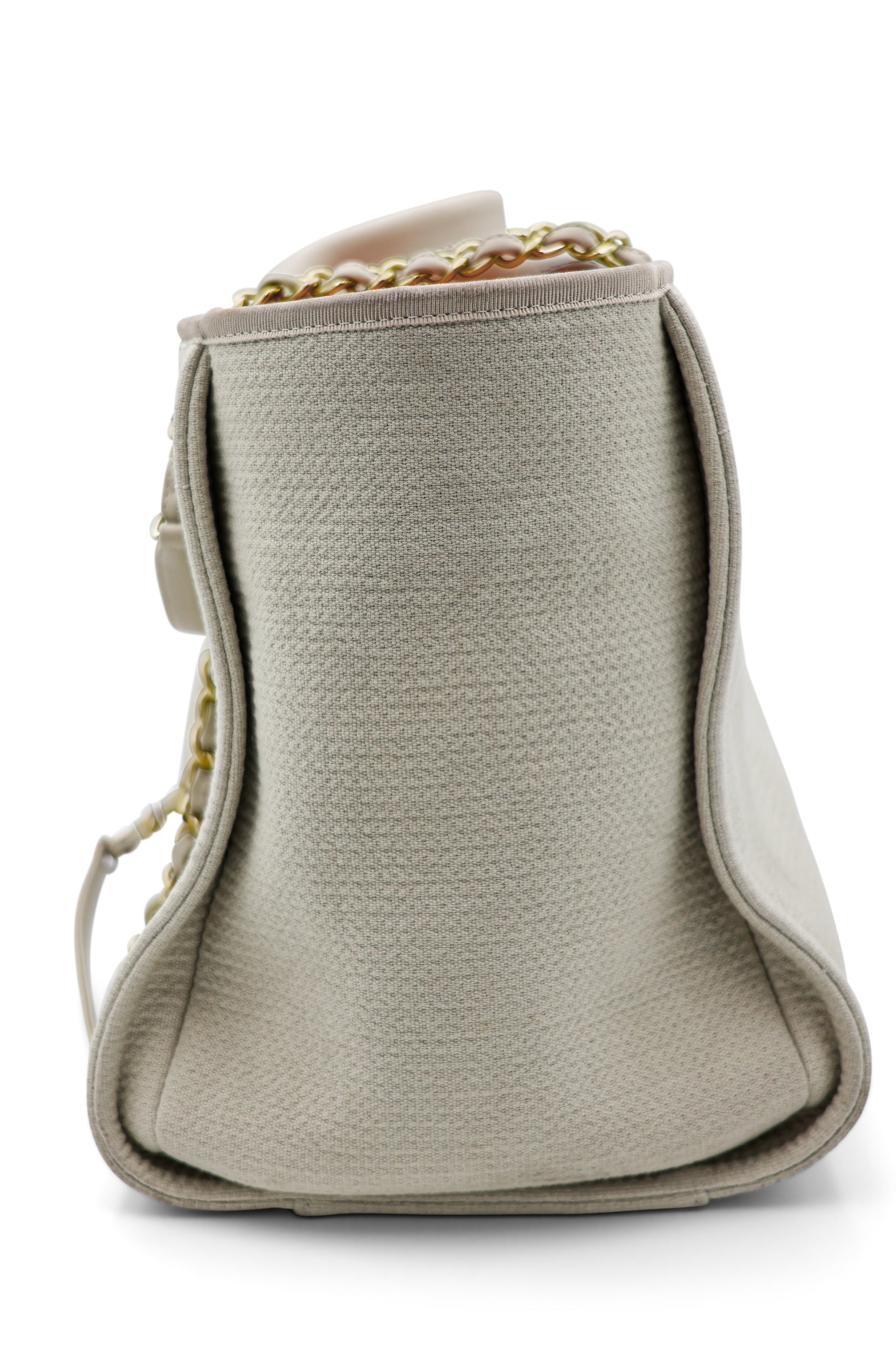 Chanel Medium Deauville Tote in Beige Canvas with Gold Hardware