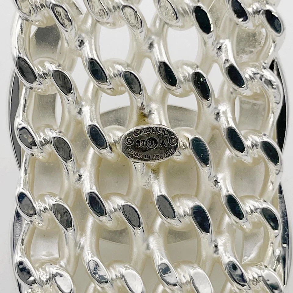 Chanel Mesh Bracelet Coco Mark Turnlock 97A Metal Silver Women's F/S