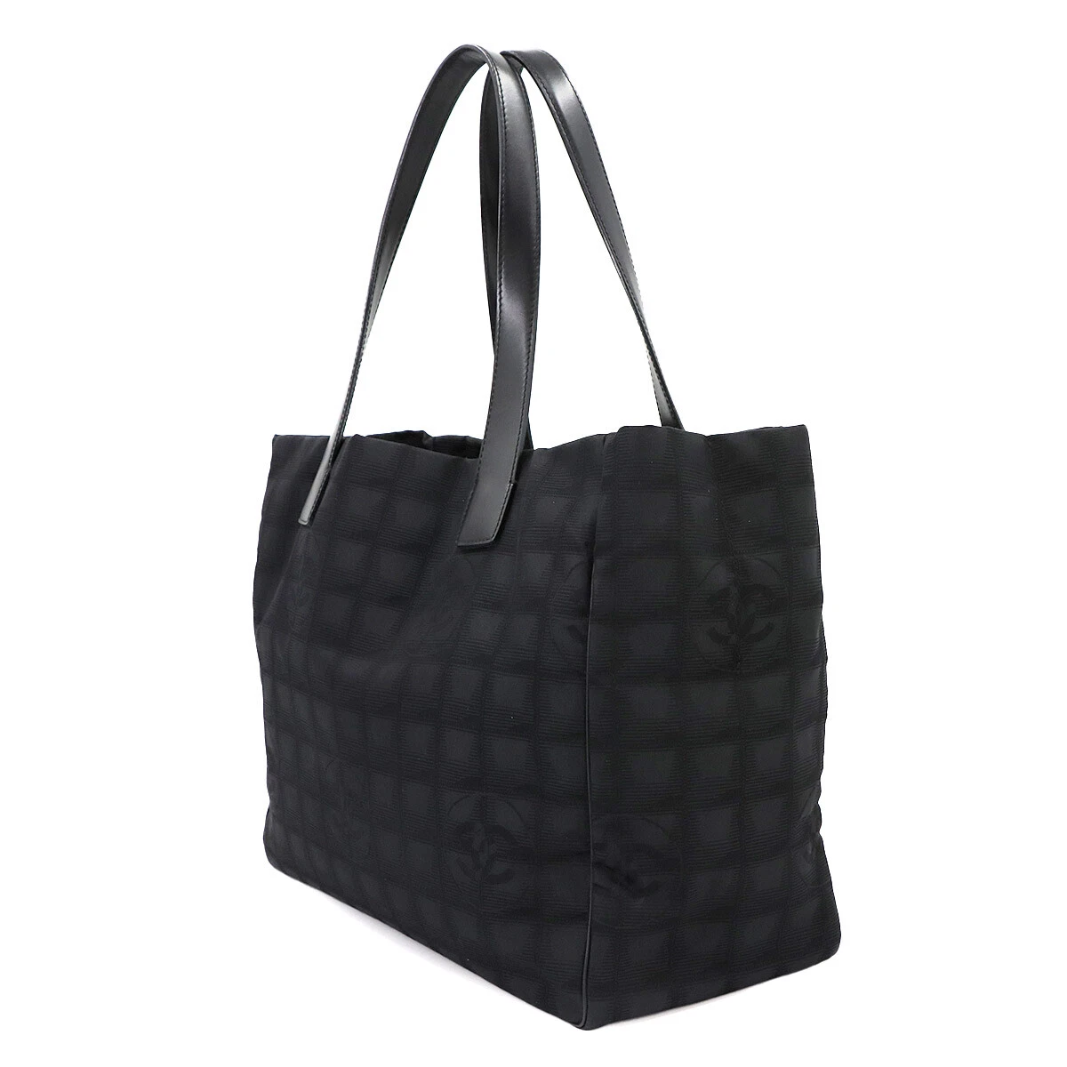 CHANEL New Travel Line Tote MM Bag Nylon Jacquard Leather Black A15991