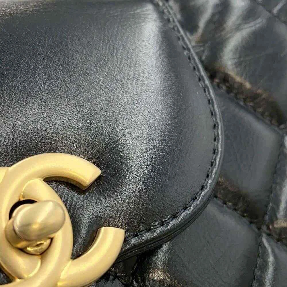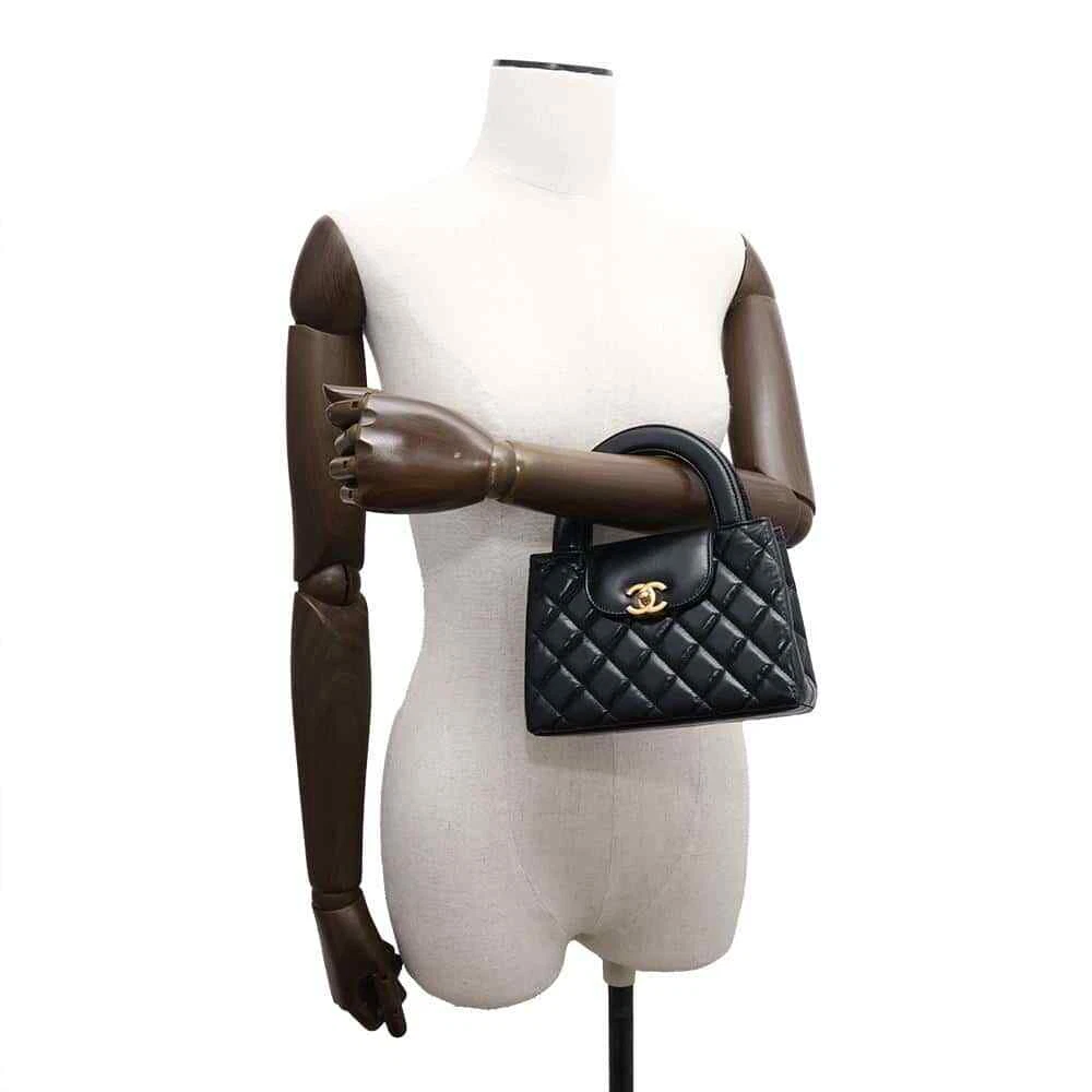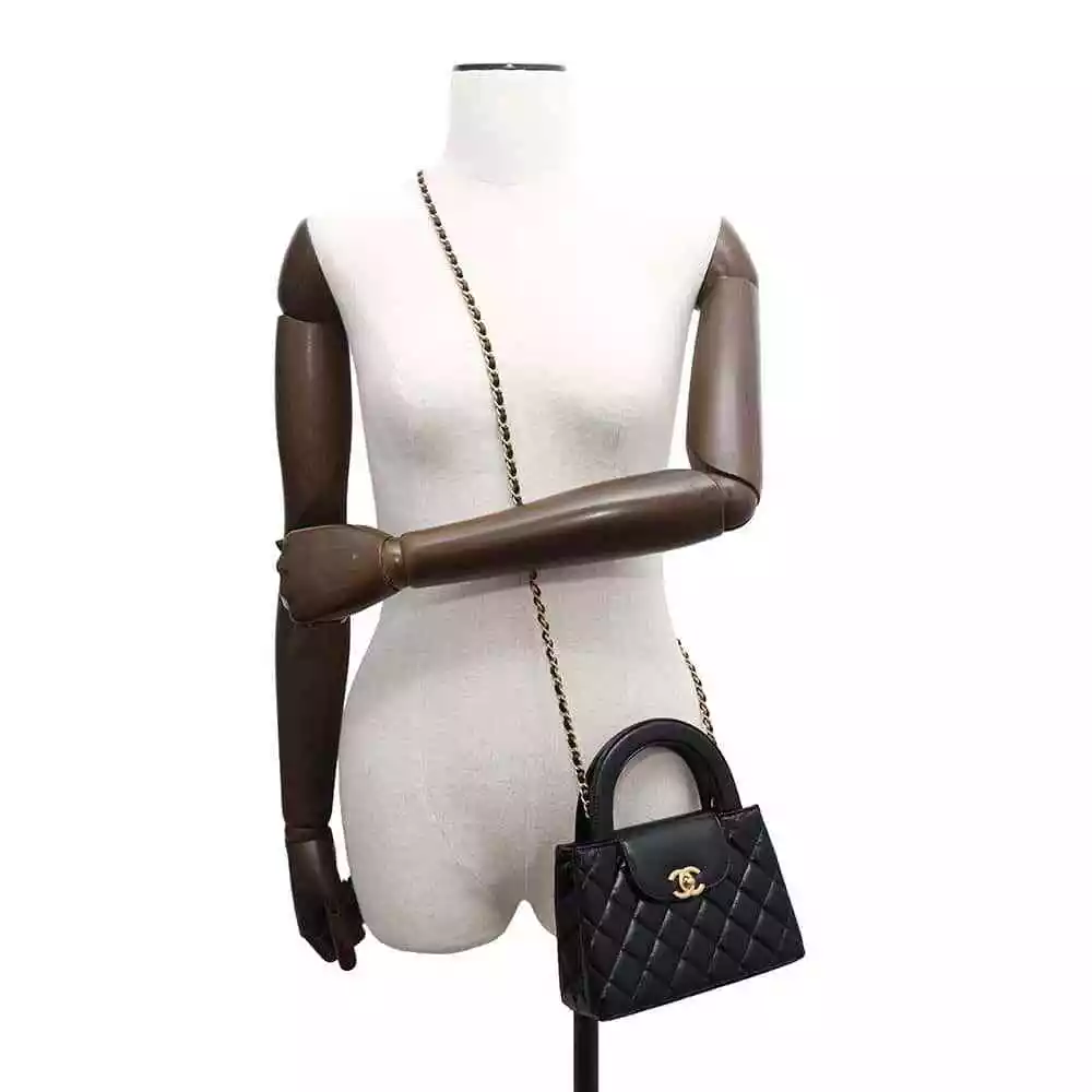 CHANEL Shopping Bag 2-Way Shoulder Bag Size Mini Shiny Calf Leather Black
