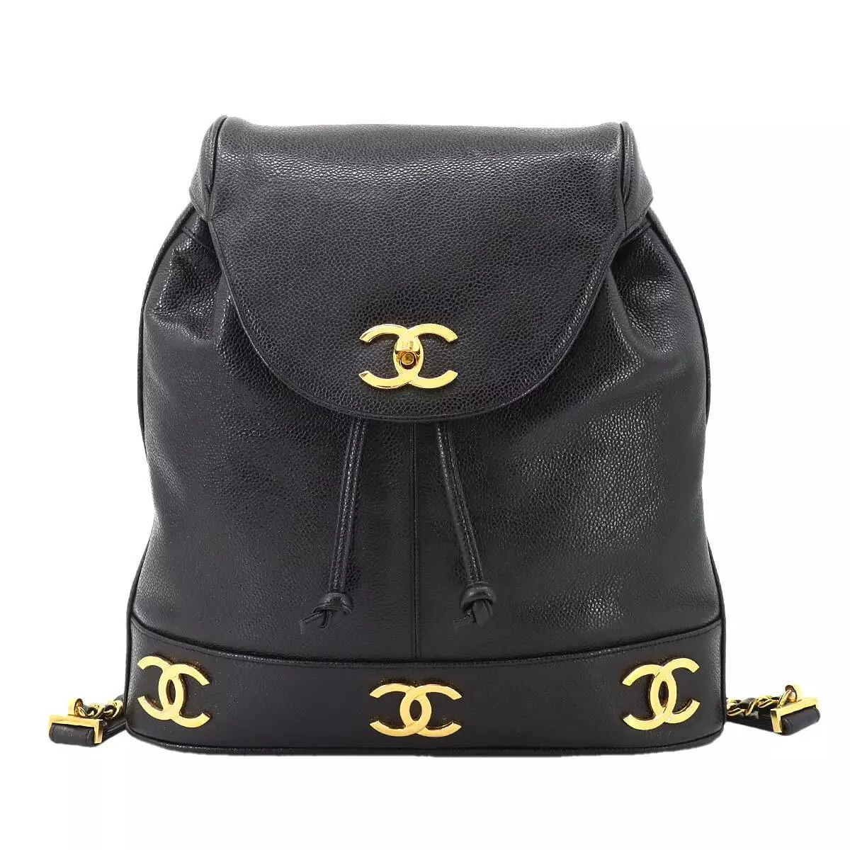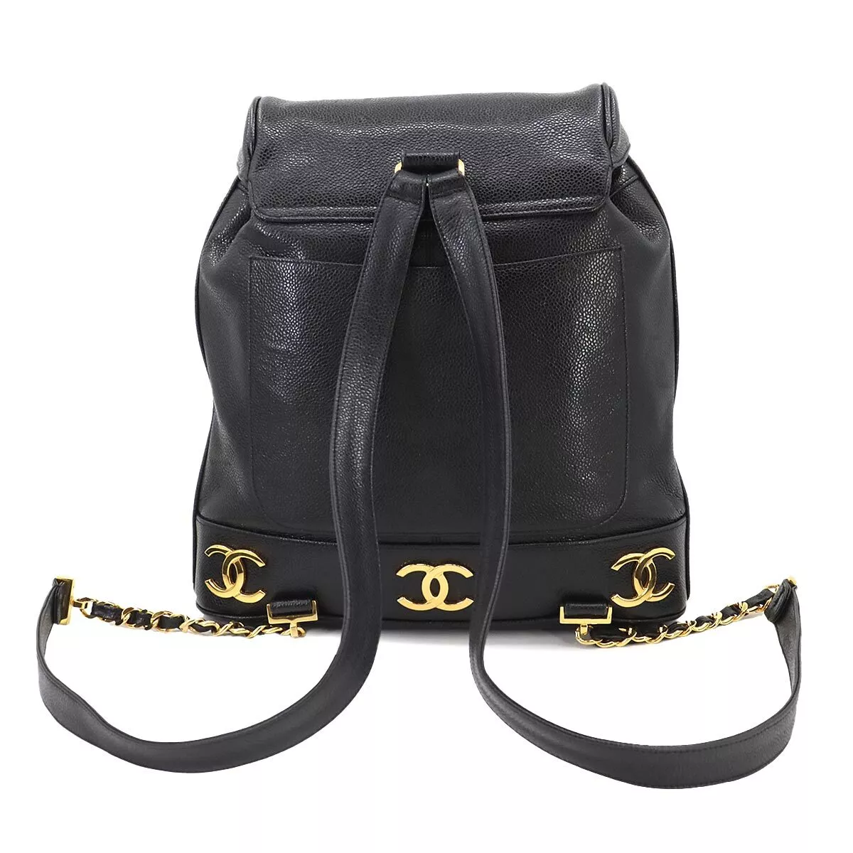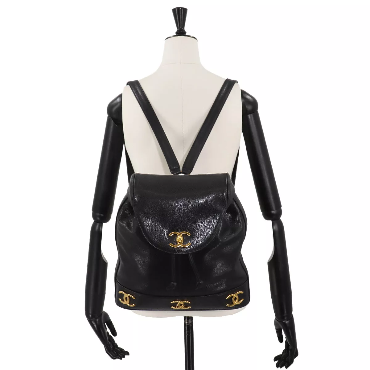 CHANEL Triple Coco Chain Backpack Caviar Skin Leather Black Purse