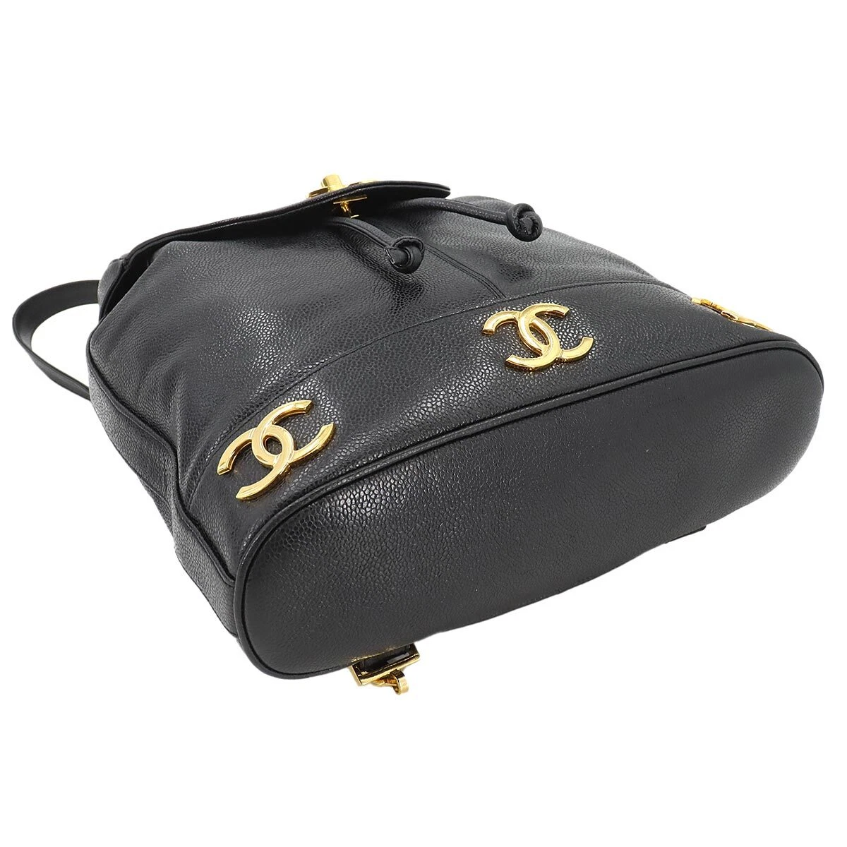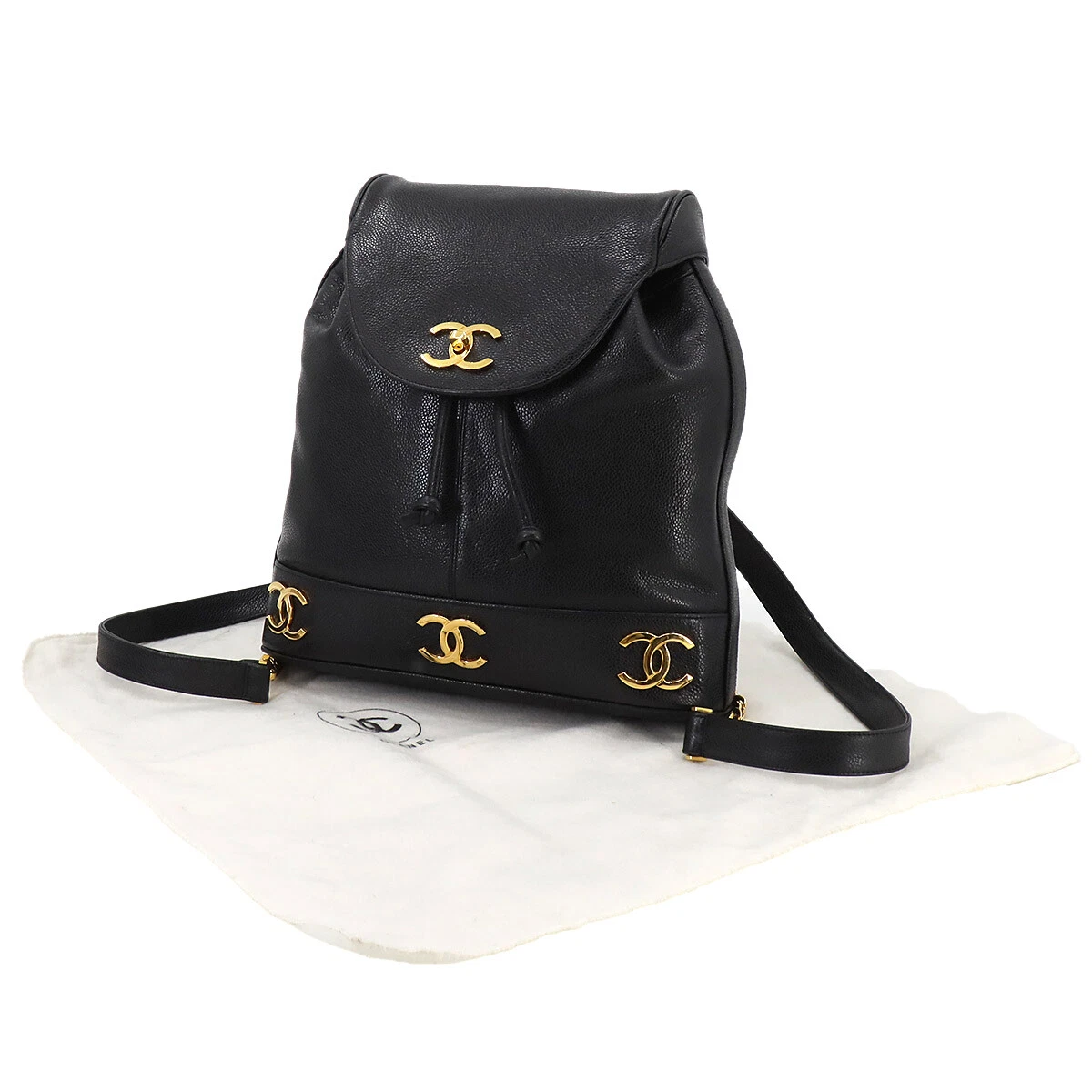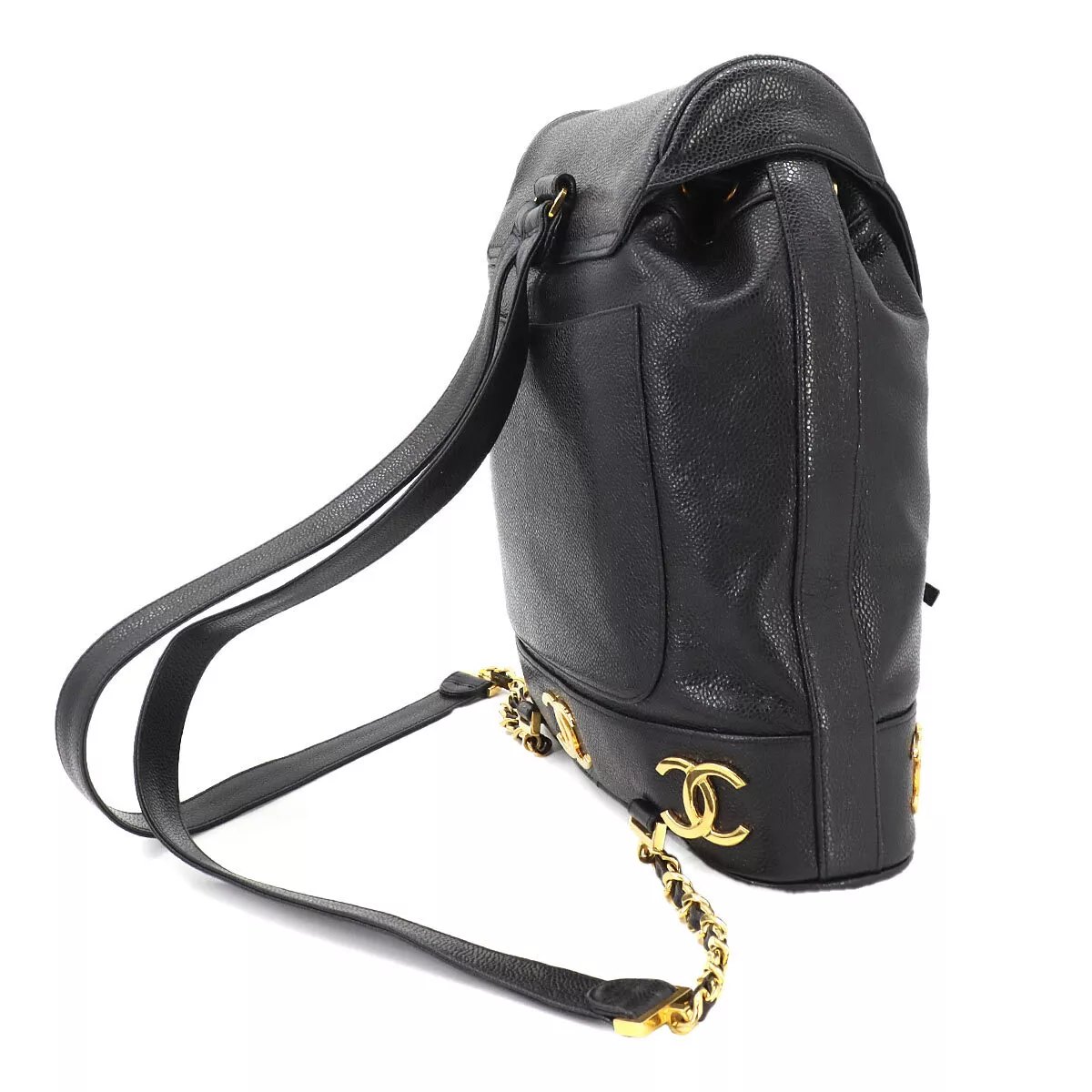 CHANEL Triple Coco Chain Backpack Caviar Skin Leather Black Purse