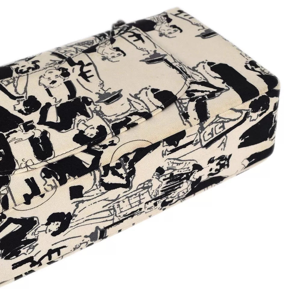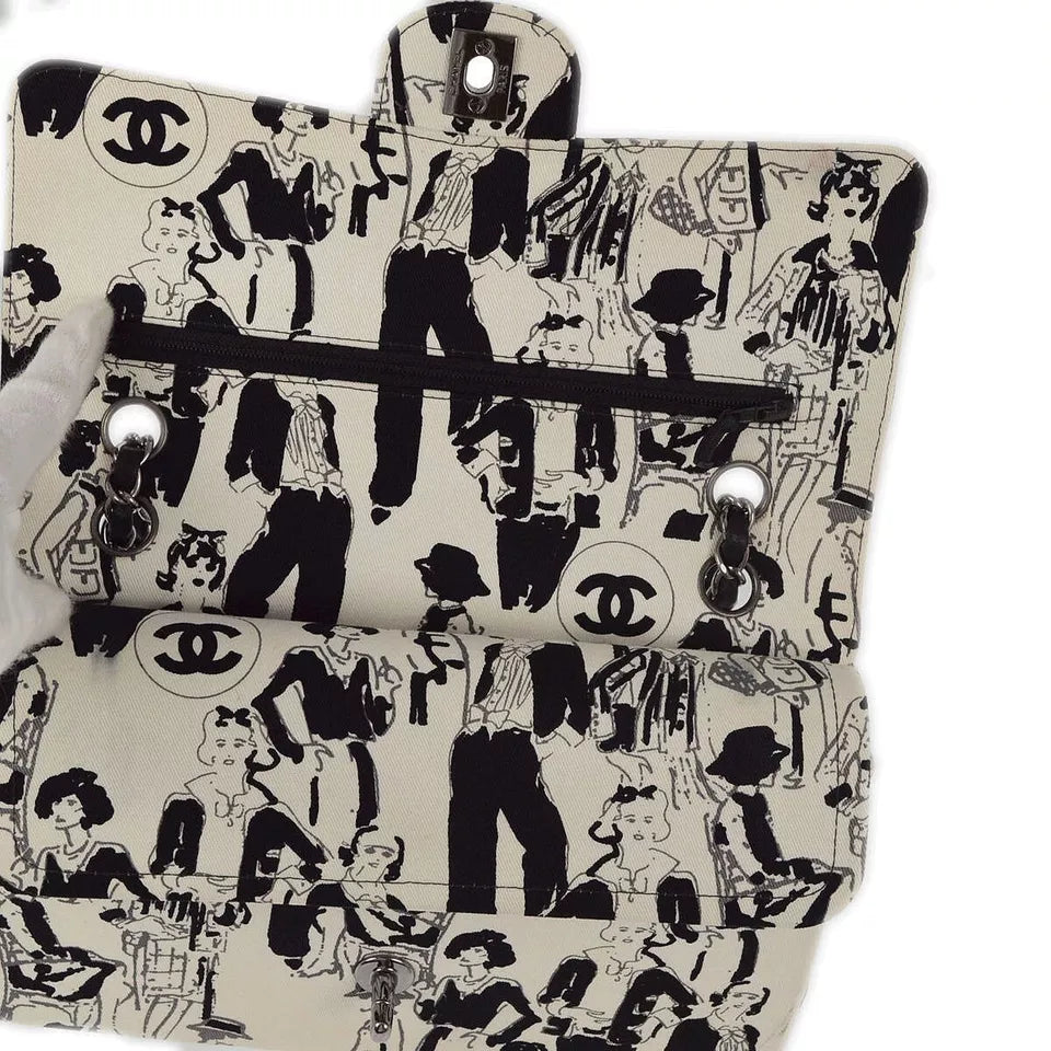 This Chanel White and Black Medium Double Flap Shoulder Bag is a limited edition piece, featuring a unique sketch design by Karl Lagerfeld. Crafted from a combination of canvas and lambskin leather, this bag offers both elegance and a touch of artistic flair. The iconic double flap design, combined with the classic turn lock closure, ensures that this bag is not only stylish but also functional. Perfect for collectors and fashion enthusiasts alike.