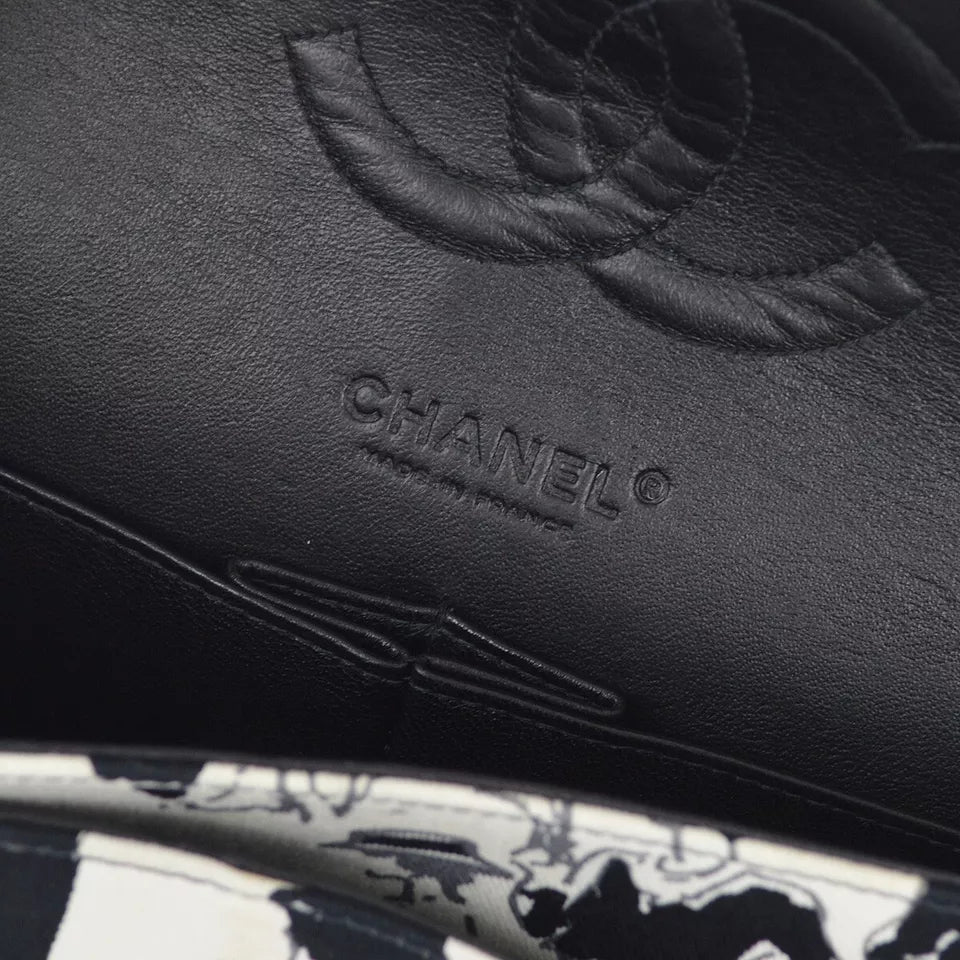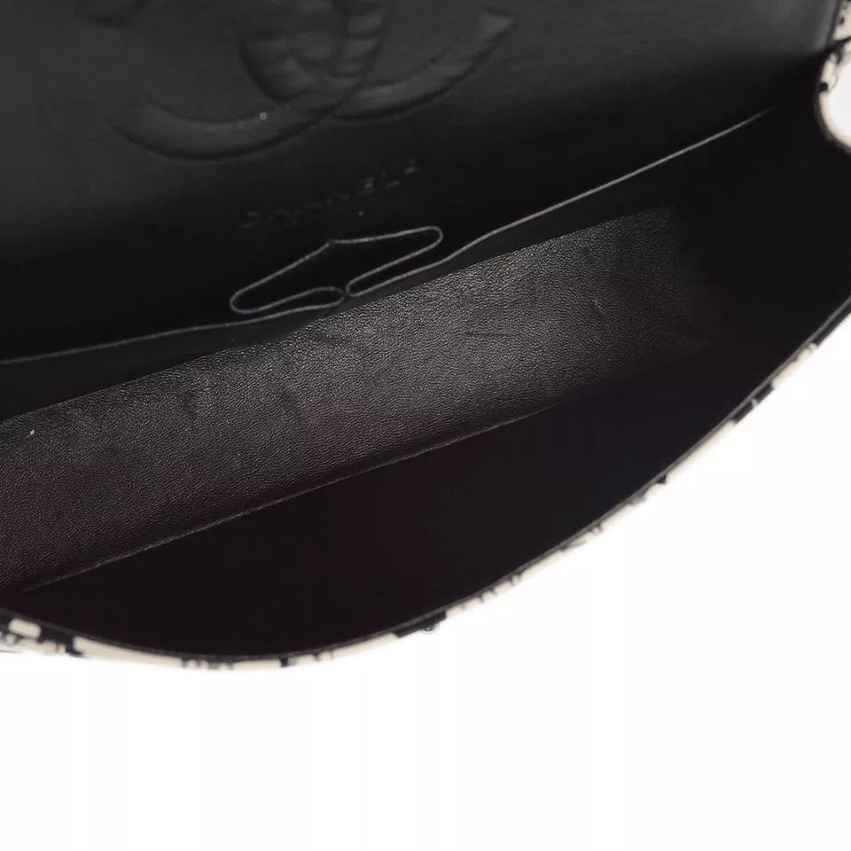 Chanel White and Black Medium Double Flap Shoulder Bag