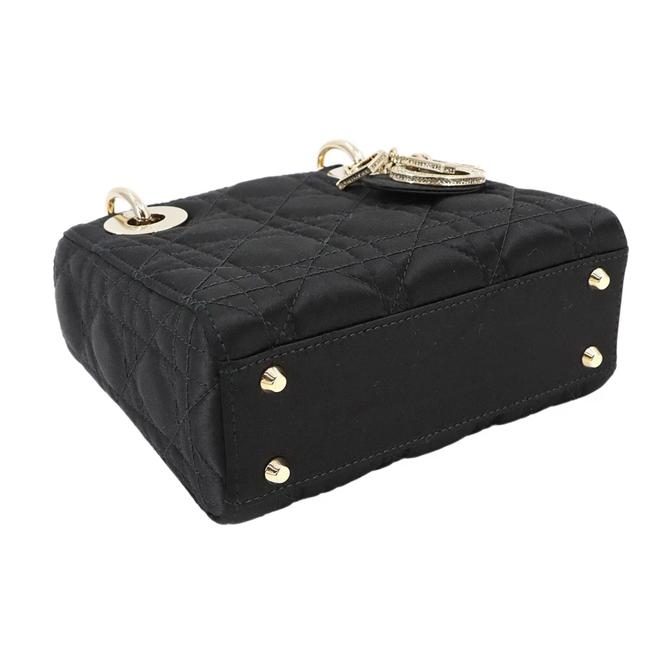 Christian Dior Lady Dior Mini in Black Satin with Rhinestone Details