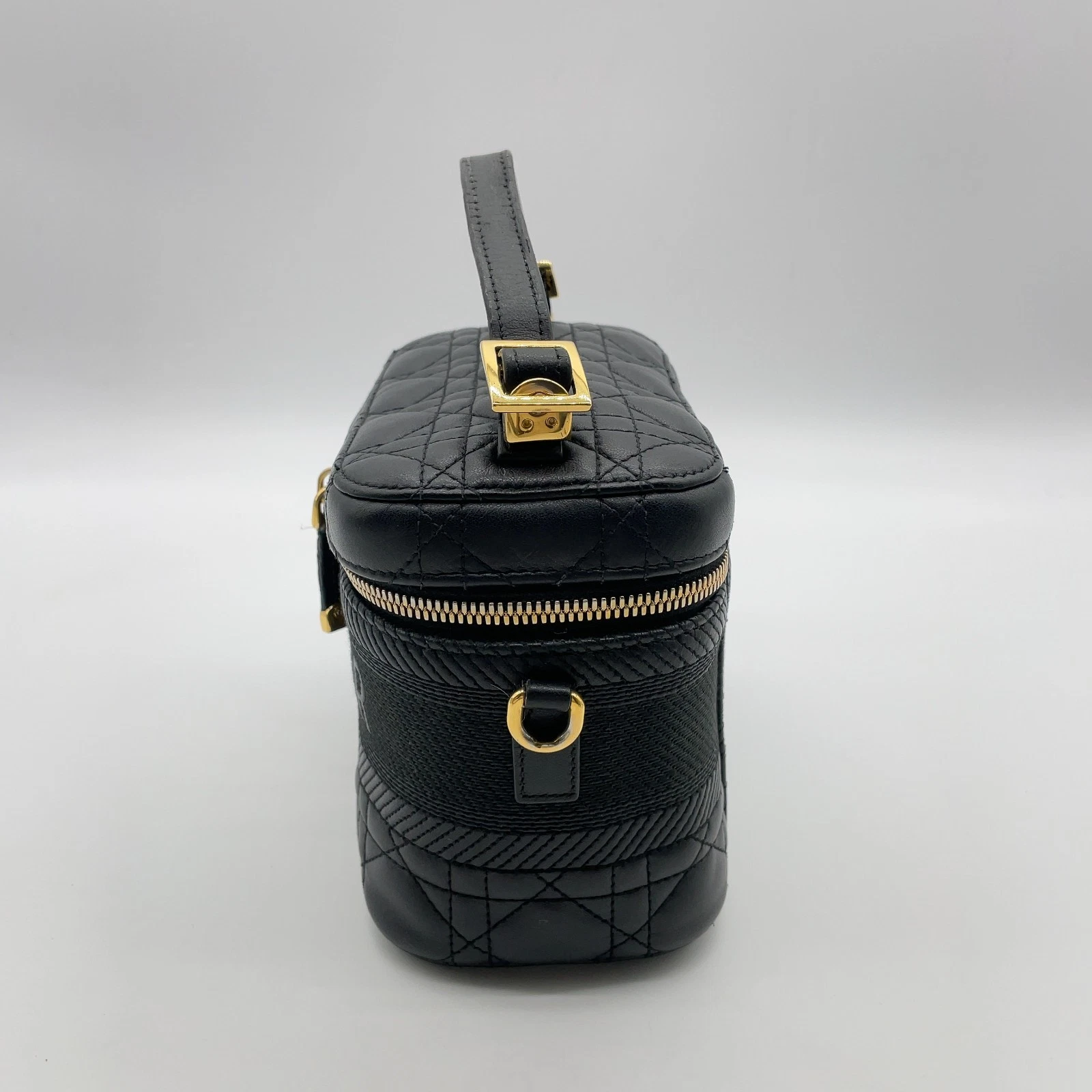 Christian Dior Small Cannage Leather 2-Way Vanity Bag in Black