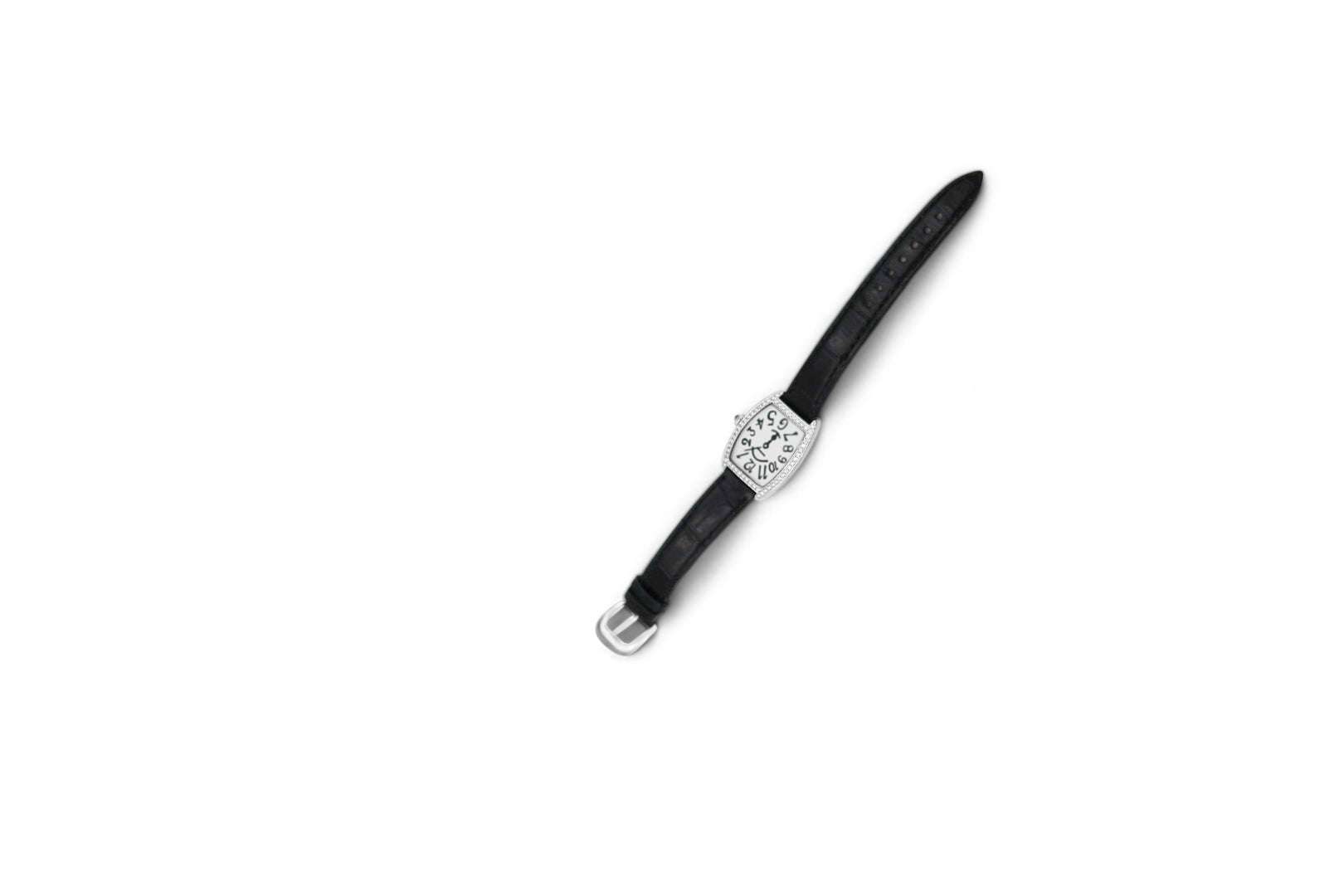 Paired with a sleek black leather strap and classic silver dial, this piece encapsulates the sophistication and artistry that define Franck Muller timepieces. A luxurious statement watch for the discerning collector.
