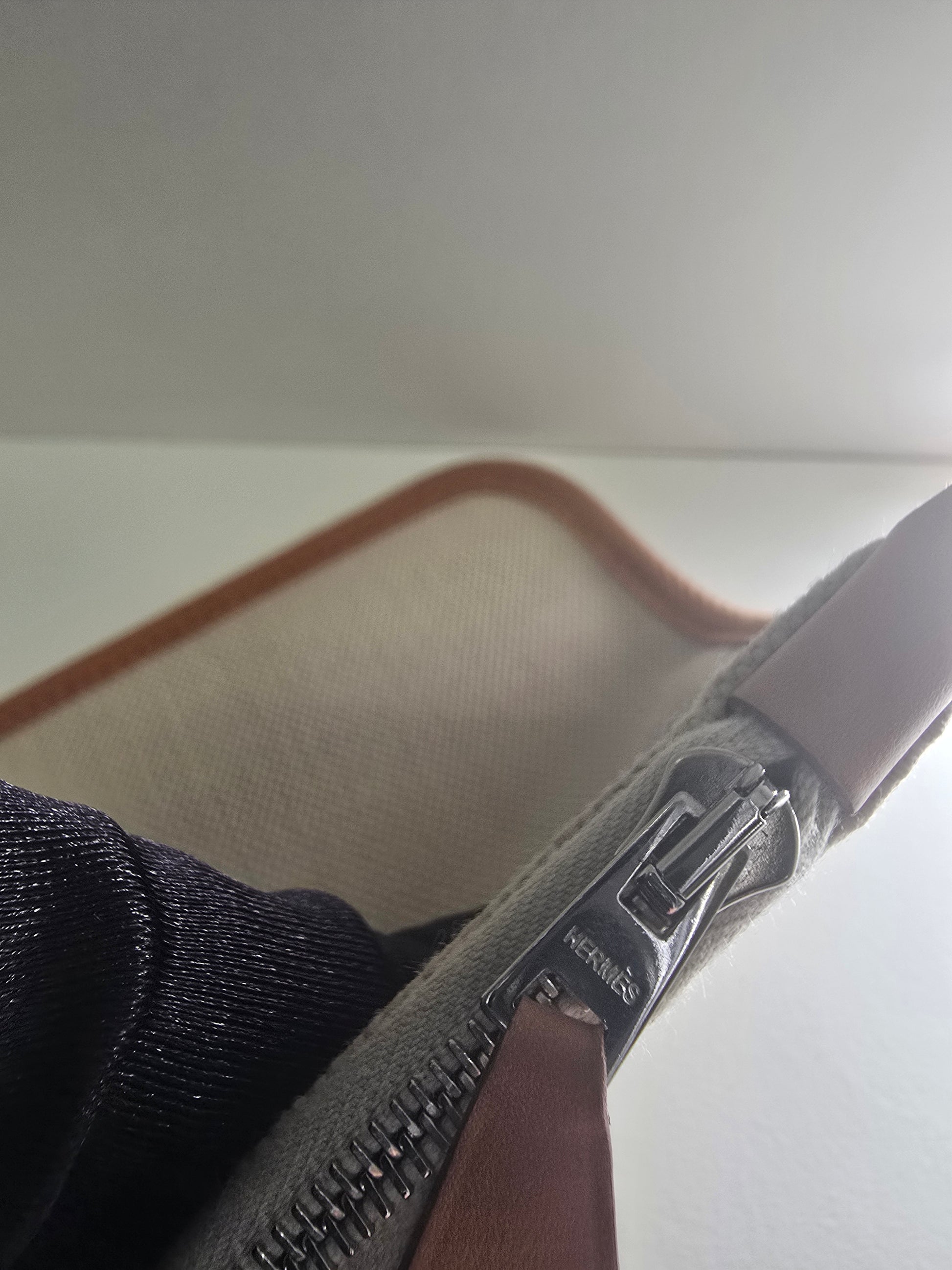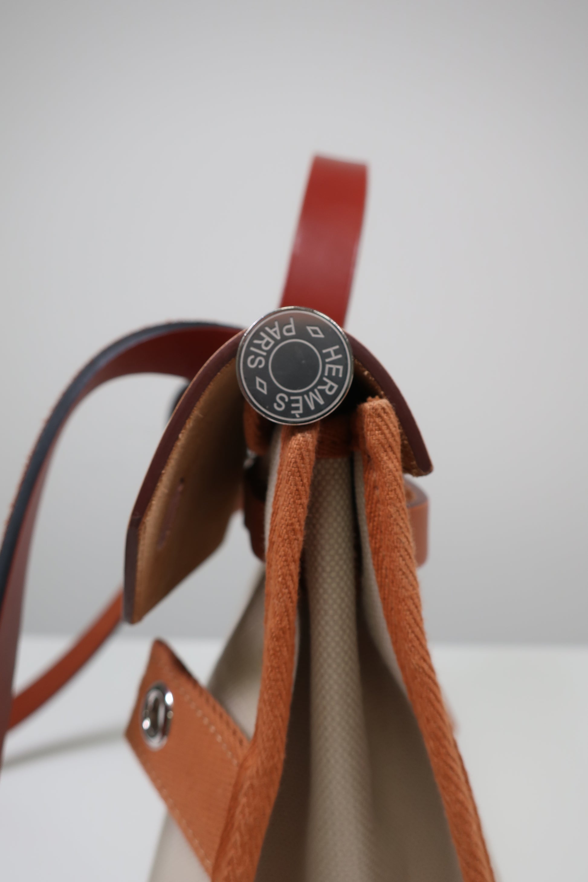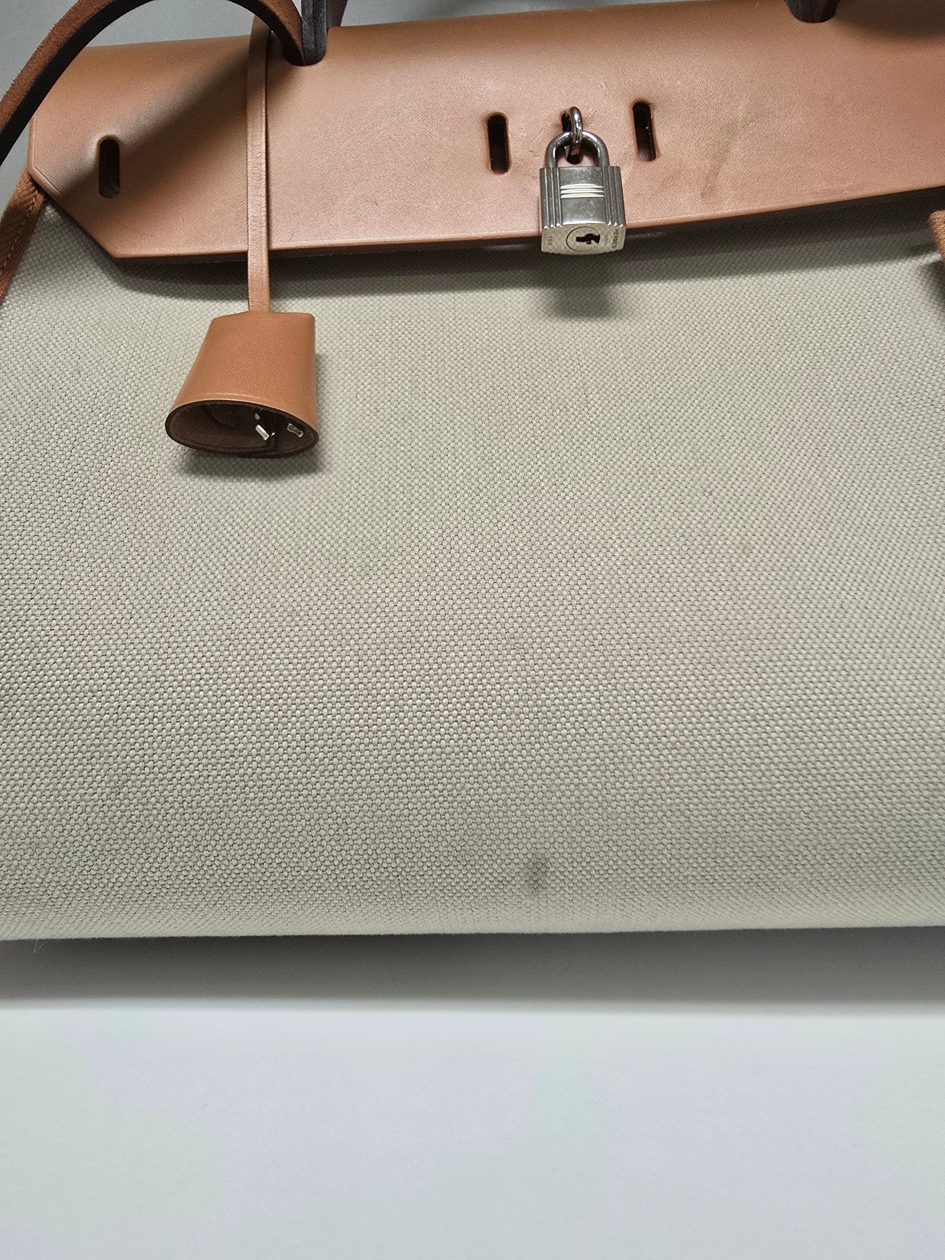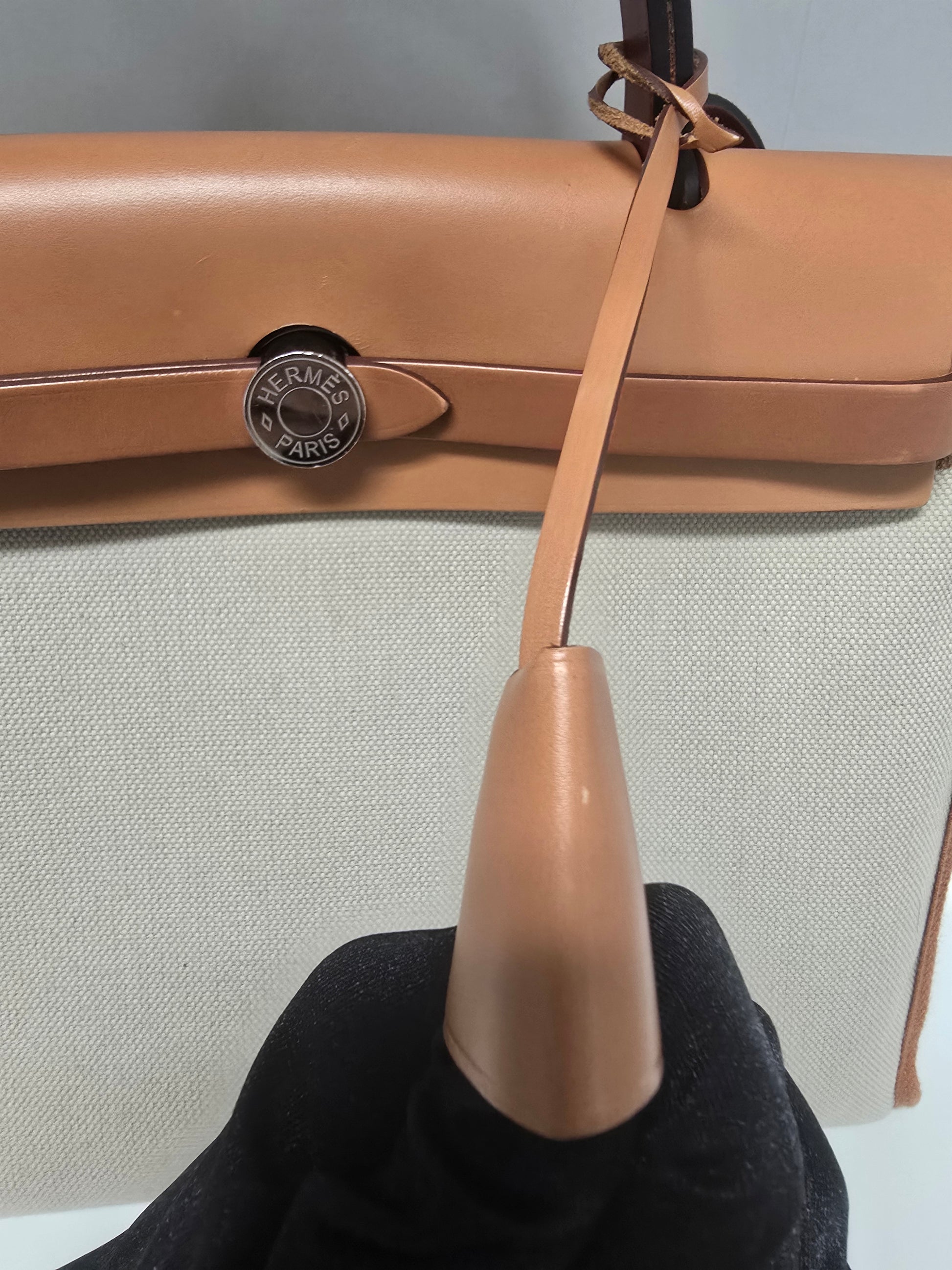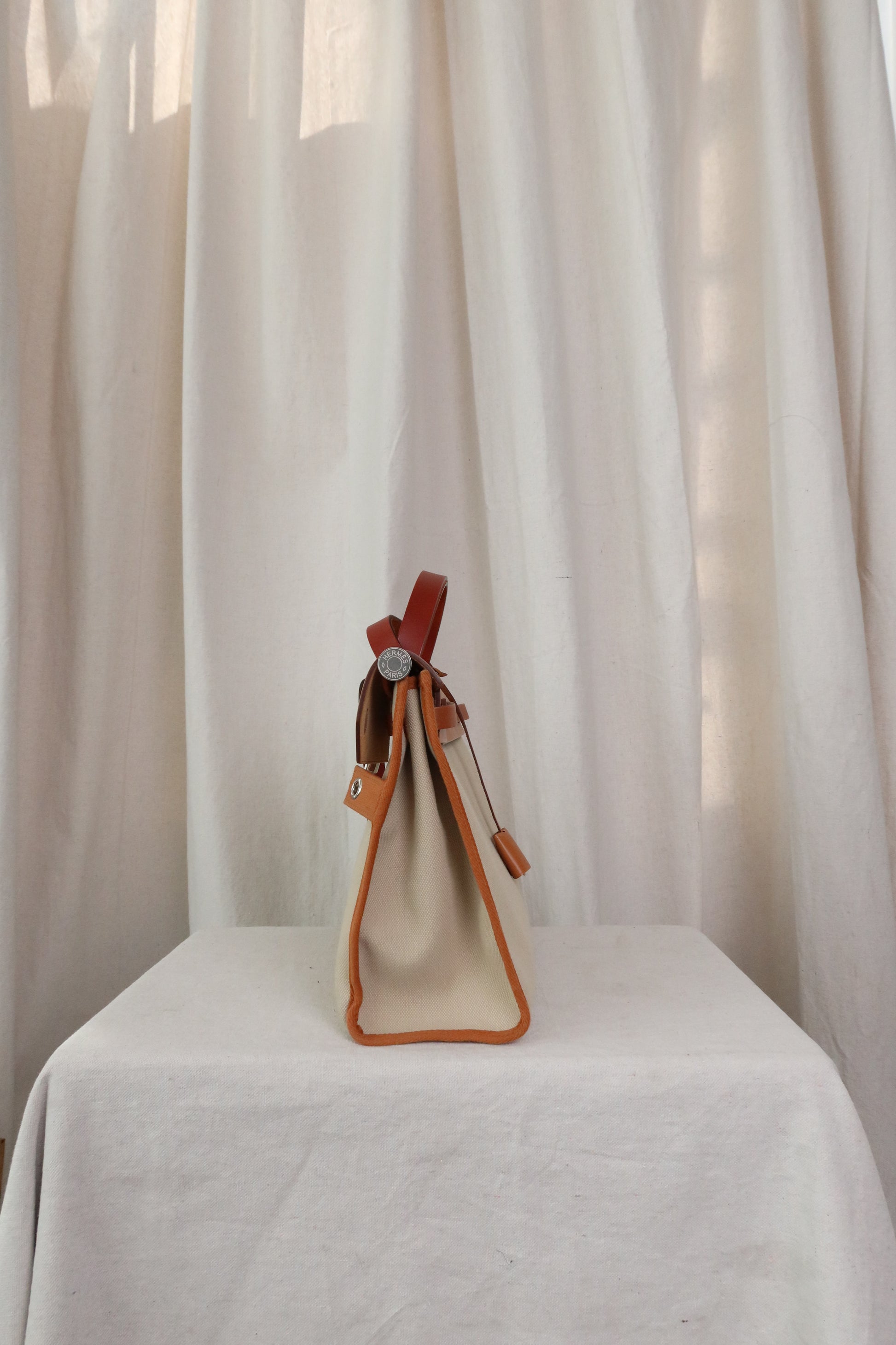 HERMES Herbag Zip 31 in Beton Toile H Canvas and Fauve Vache Hunter Leather