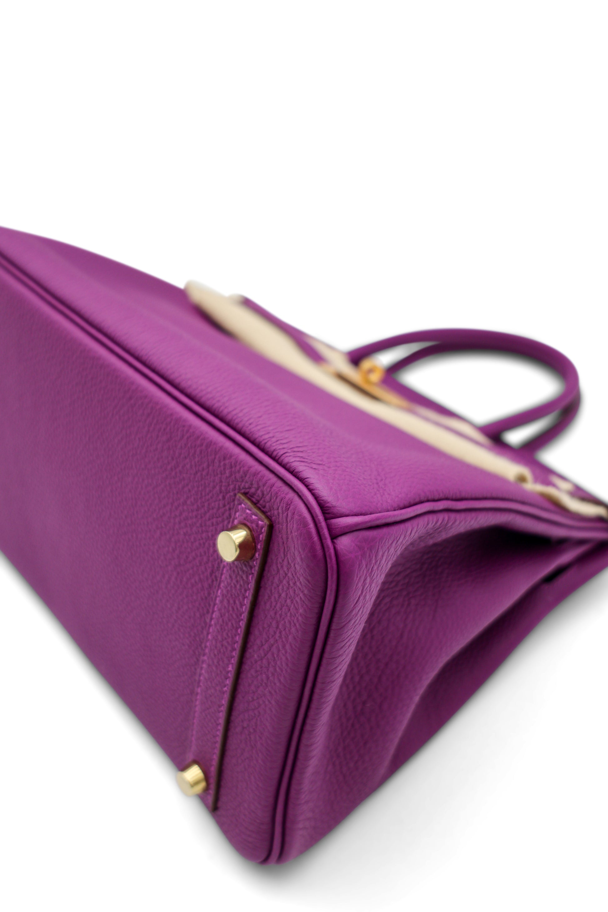 This Hermès Birkin 30 in Anemone Togo leather is a refined and versatile statement piece. The structured silhouette features gold hardware, tonal stitching, double rolled handles, and the classic front flap with toggle closure. The interior is lined with matching chevre leather and includes a zip pocket with Hermès engraved zipper pull and an open pocket on the opposite side. With its 30 cm size, this Birkin balances daily practicality with timeless elegance, making it a standout addition to any luxury collection.