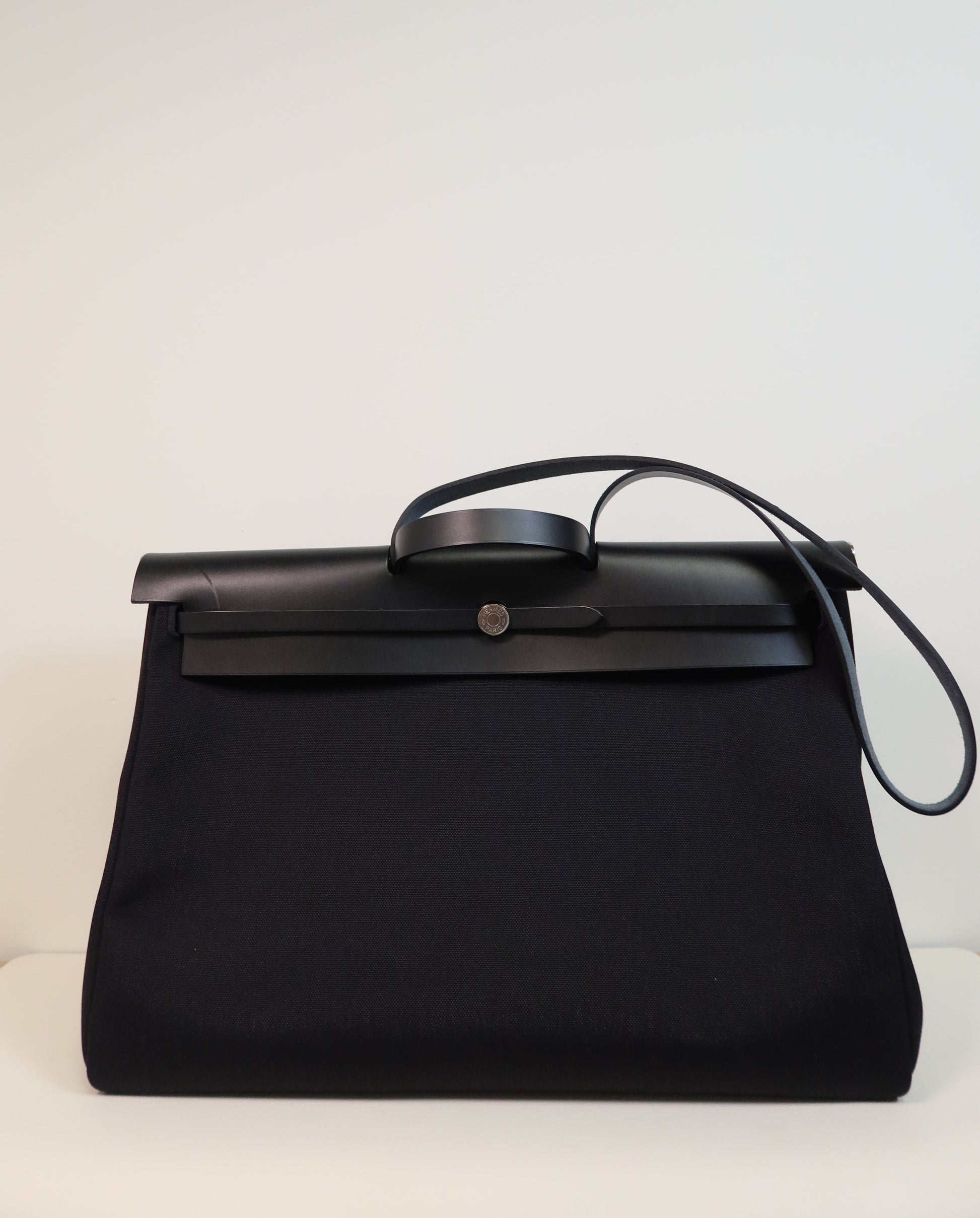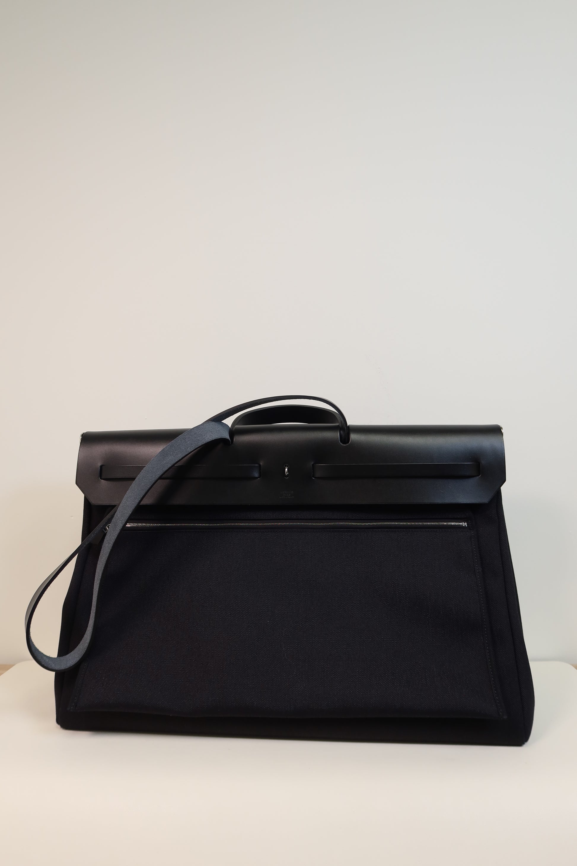 Hermès Black Vache Hunter and Toile Herbag Zip Cabine 50