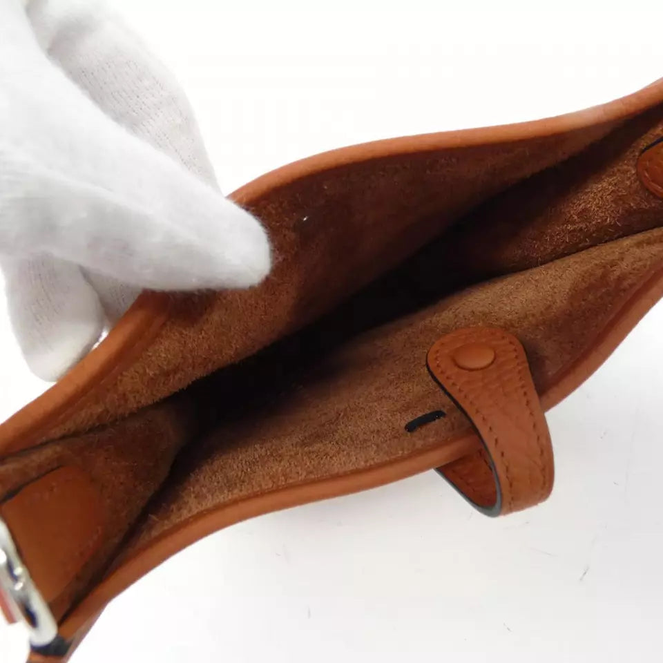 This HERMES Evelyn Amazon 16cm Shoulder Bag, crafted from Taurillon Clemence leather, is a sophisticated and compact accessory. The bag features a beautiful Cuivre color with palladium (silver) hardware, offering a timeless and elegant look. It includes a 114cm strap for convenient carrying. The bag comes with a dust bag and box, and it is marked with a B engraving. Please note that any items not shown in the description or photos are not included, and there may be minor scratches and stains that are not indicated.