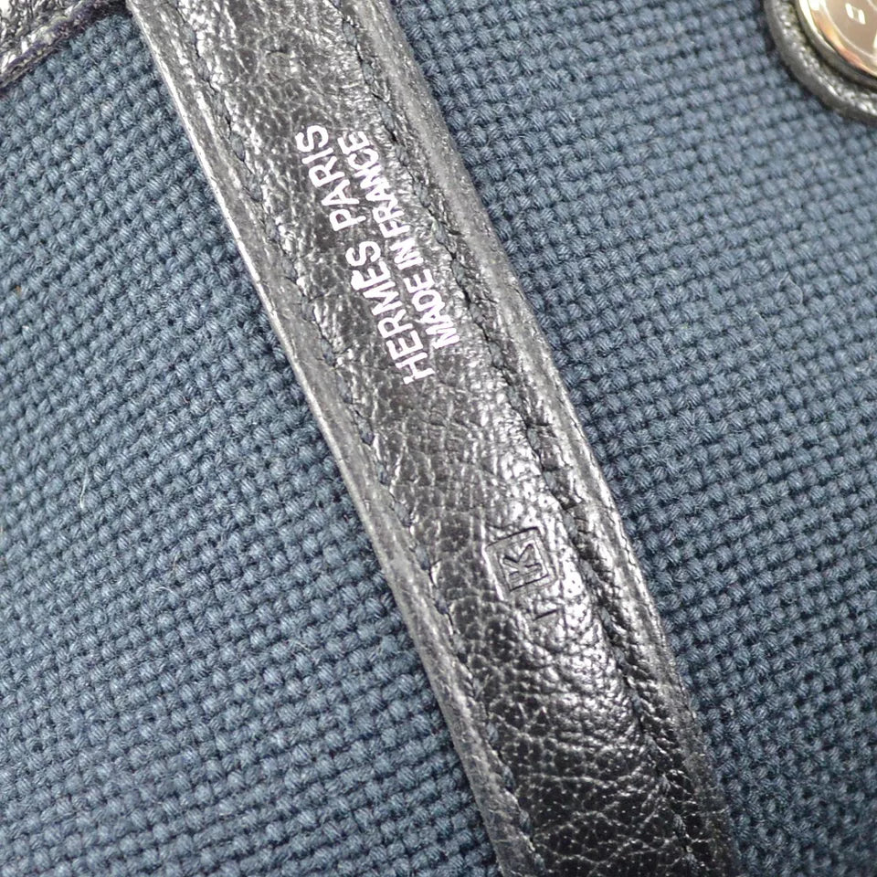 The HERMÈS Garden Party PM Hand Tote Bag is a sophisticated and versatile accessory, perfect for both casual and semi-formal occasions. Crafted from durable Toile So H and luxurious Buffalo Leather, this tote bag showcases the timeless elegance and superior craftsmanship synonymous with the HERMÈS brand. The navy and gray exterior is complemented by silver hardware, providing a subtle yet striking contrast. The bag features double handles with a comfortable drop length, making it easy to carry by hand or on the shoulder. The snap closure ensures secure storage, while the bottom studs protect the base from wear.