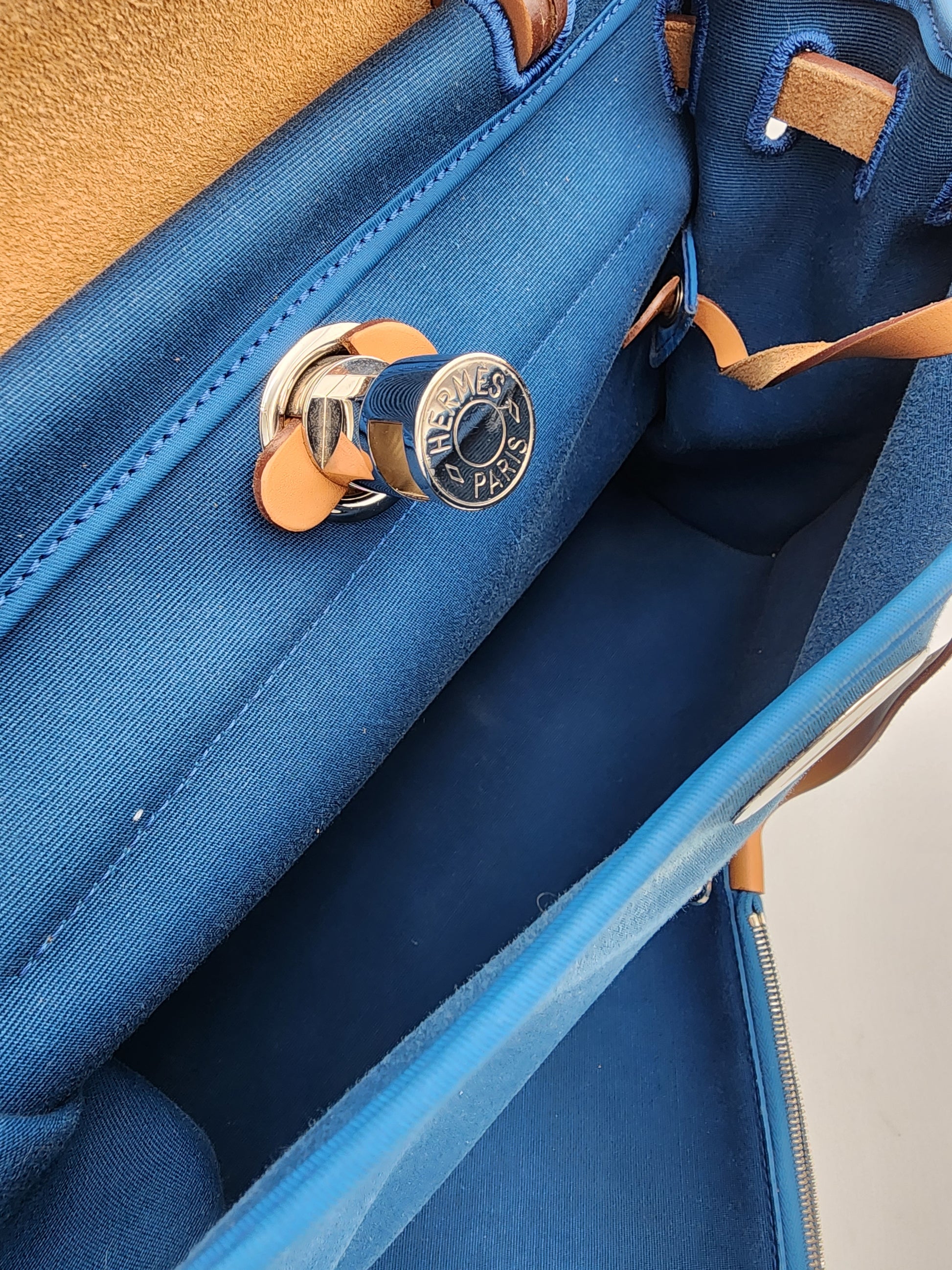 Hermès Herbag Zip 31 Bleu France Toile Militaire & Vache Hunter Leather