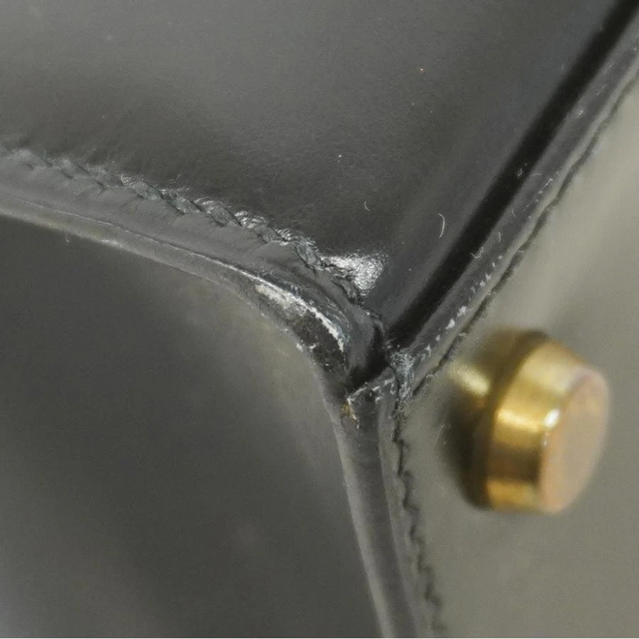 HERMES Kelly 28 Box Calf Handbag Black Circle R (1988)