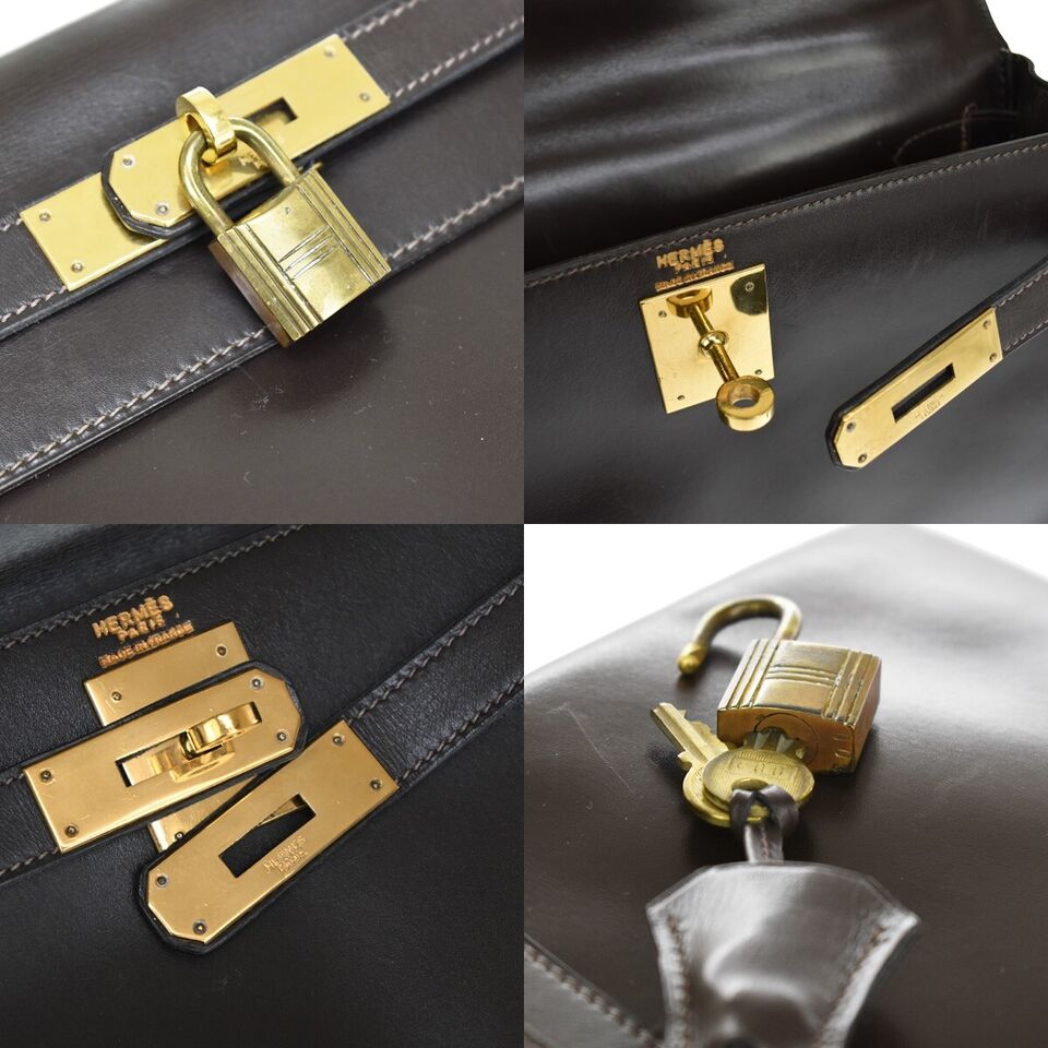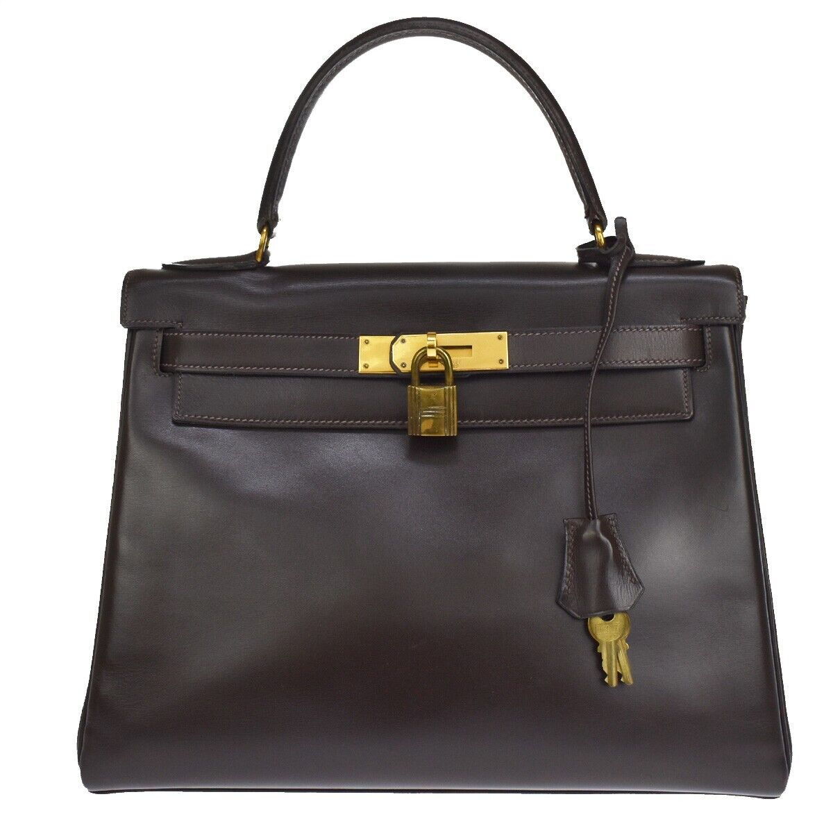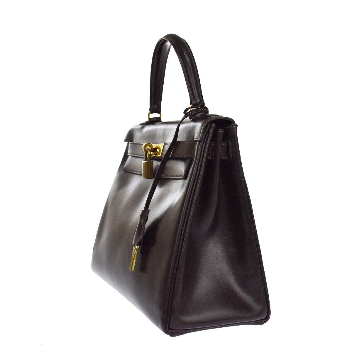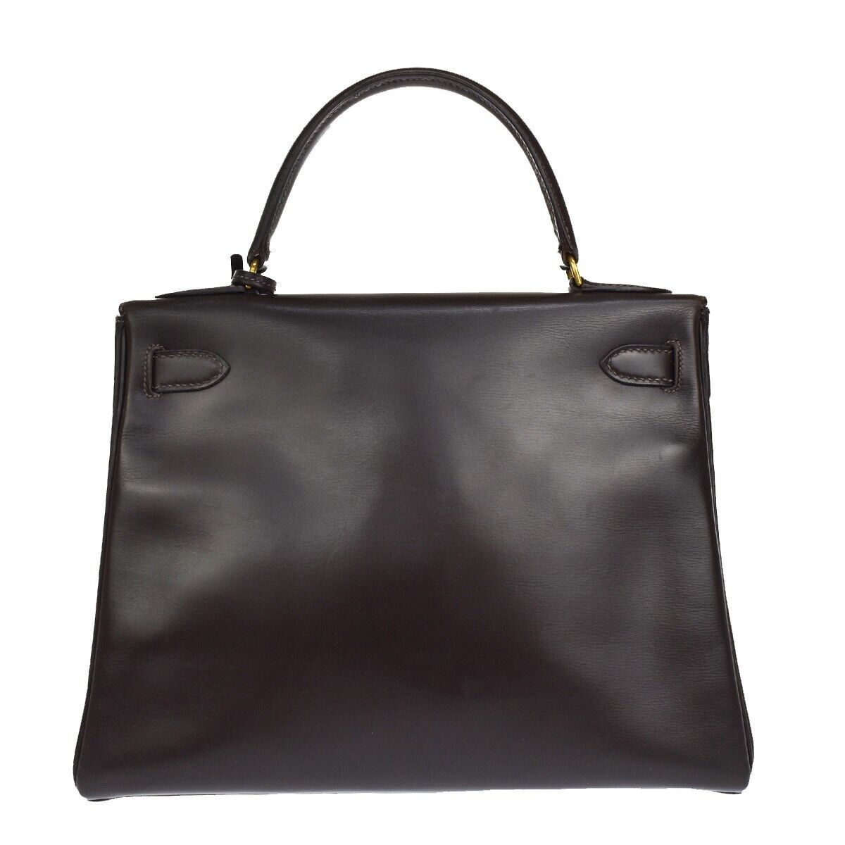 HERMES Kelly 28 Handbag in Cafe Box Calf Leather FRANCE VINTAGE boom2hanten