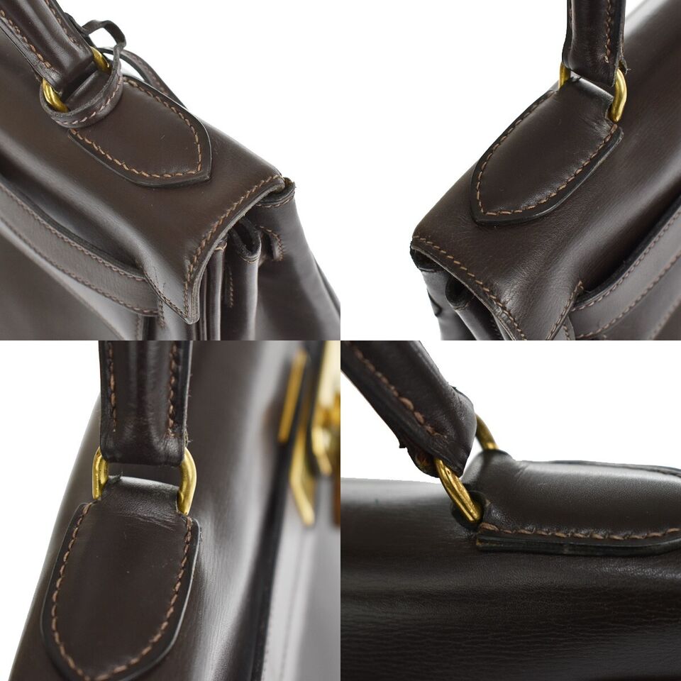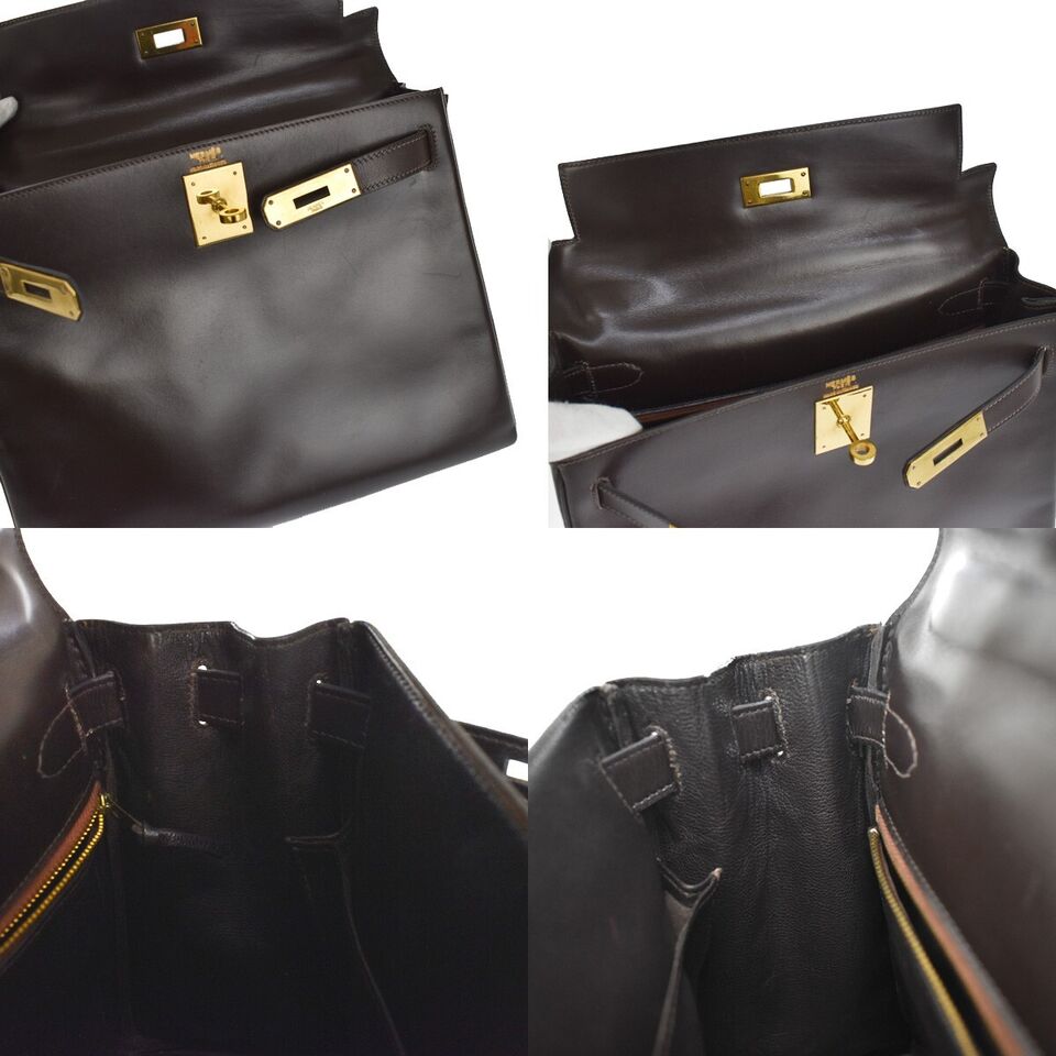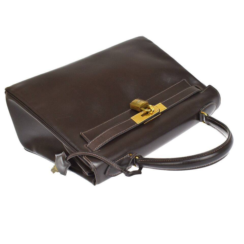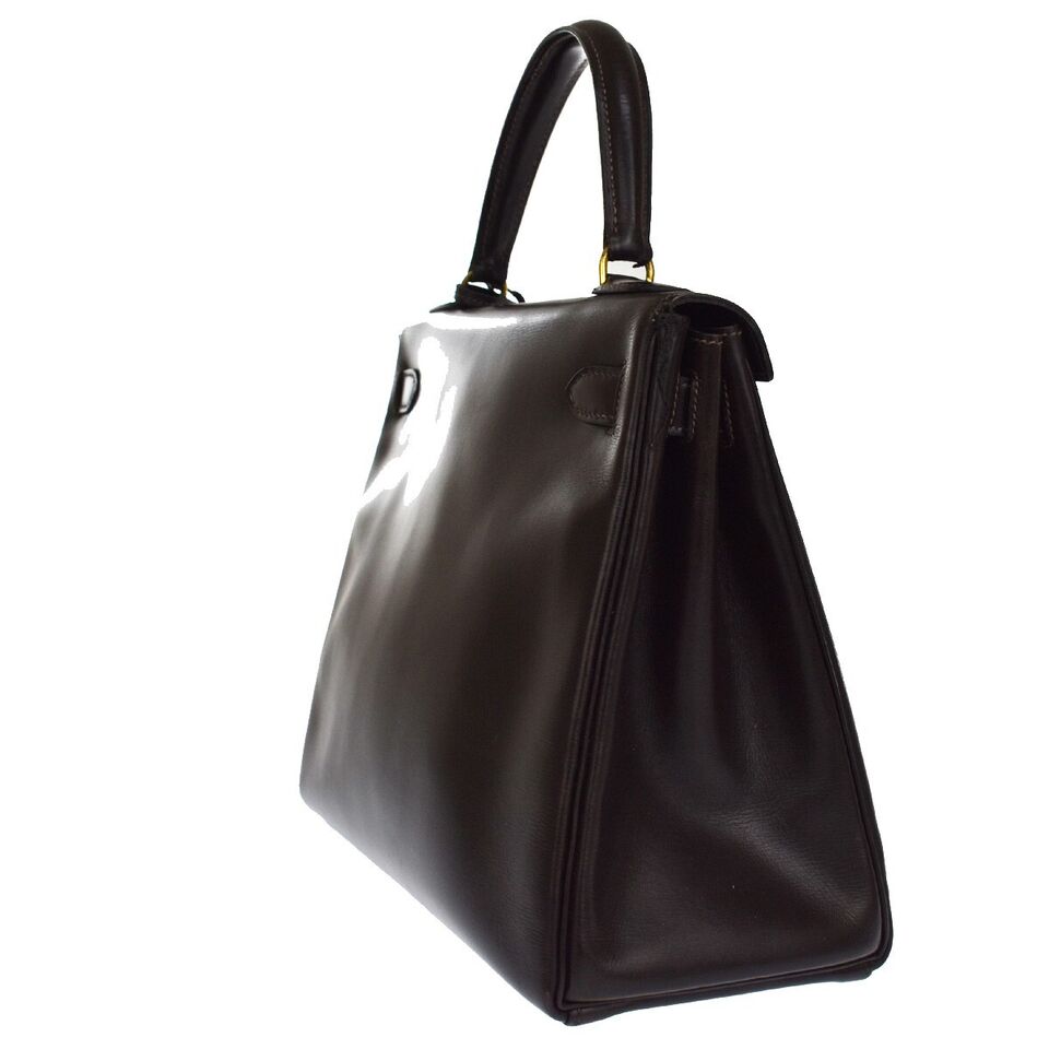 HERMES Kelly 28 Handbag in Cafe Box Calf Leather FRANCE VINTAGE boom2hanten