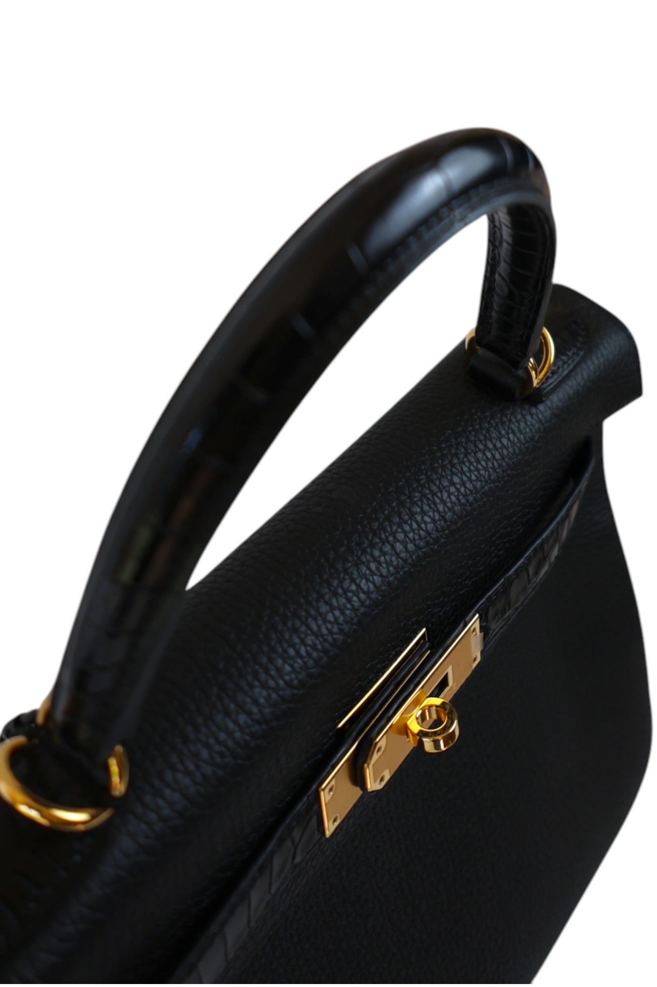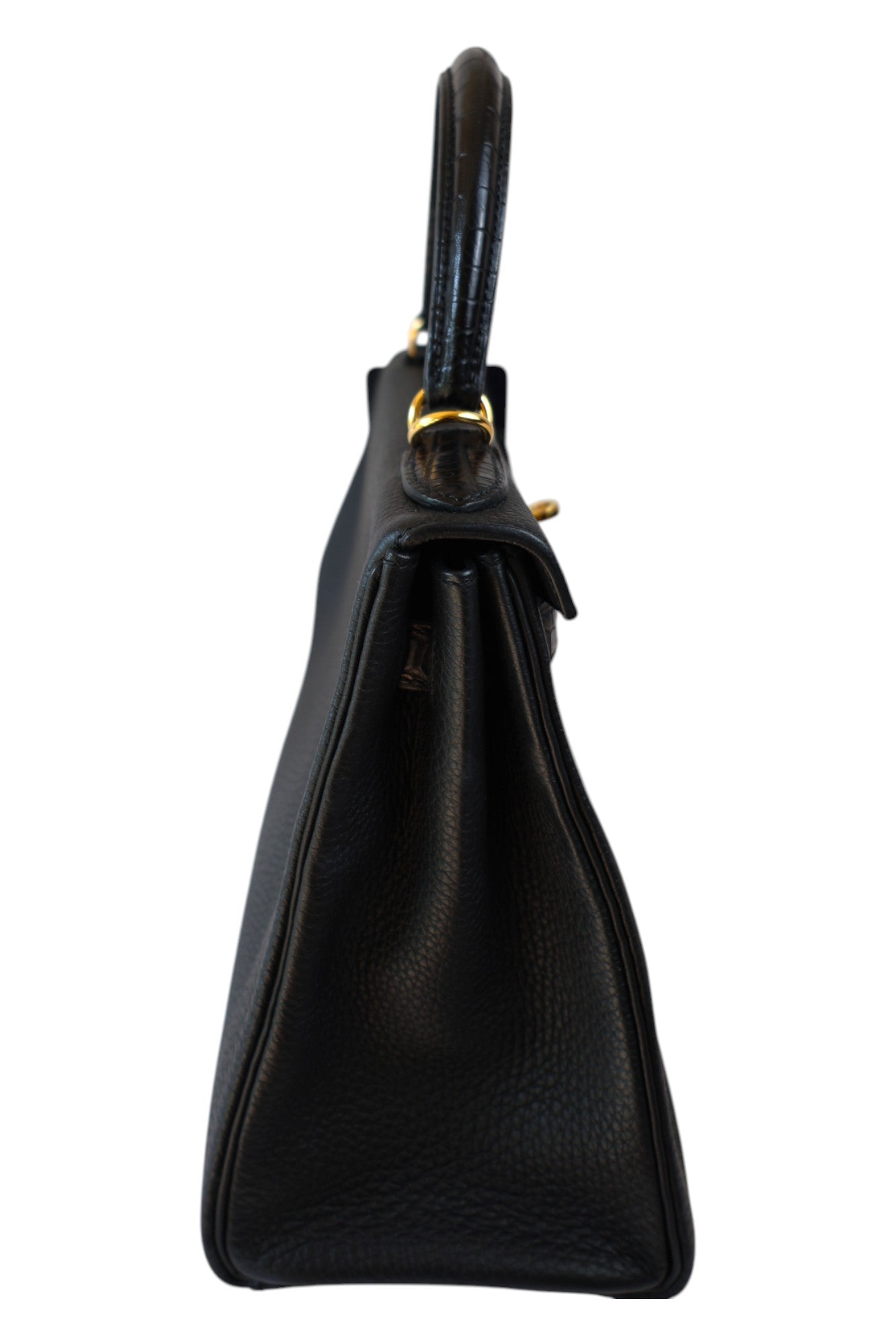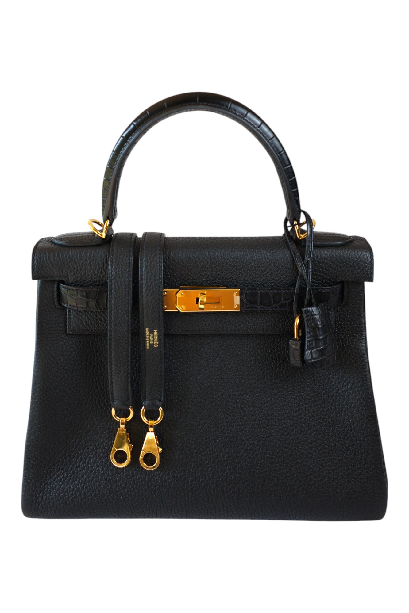 This elegant Kelly 28 Touch is crafted from Noir Togo leather with Alligator details, finished with gold hardware. Stamped Z (2021), in excellent condition, this bag perfectly balances timeless elegance with exotic allure.