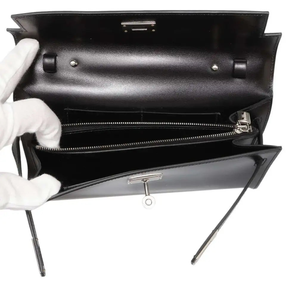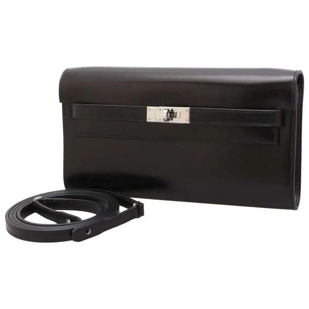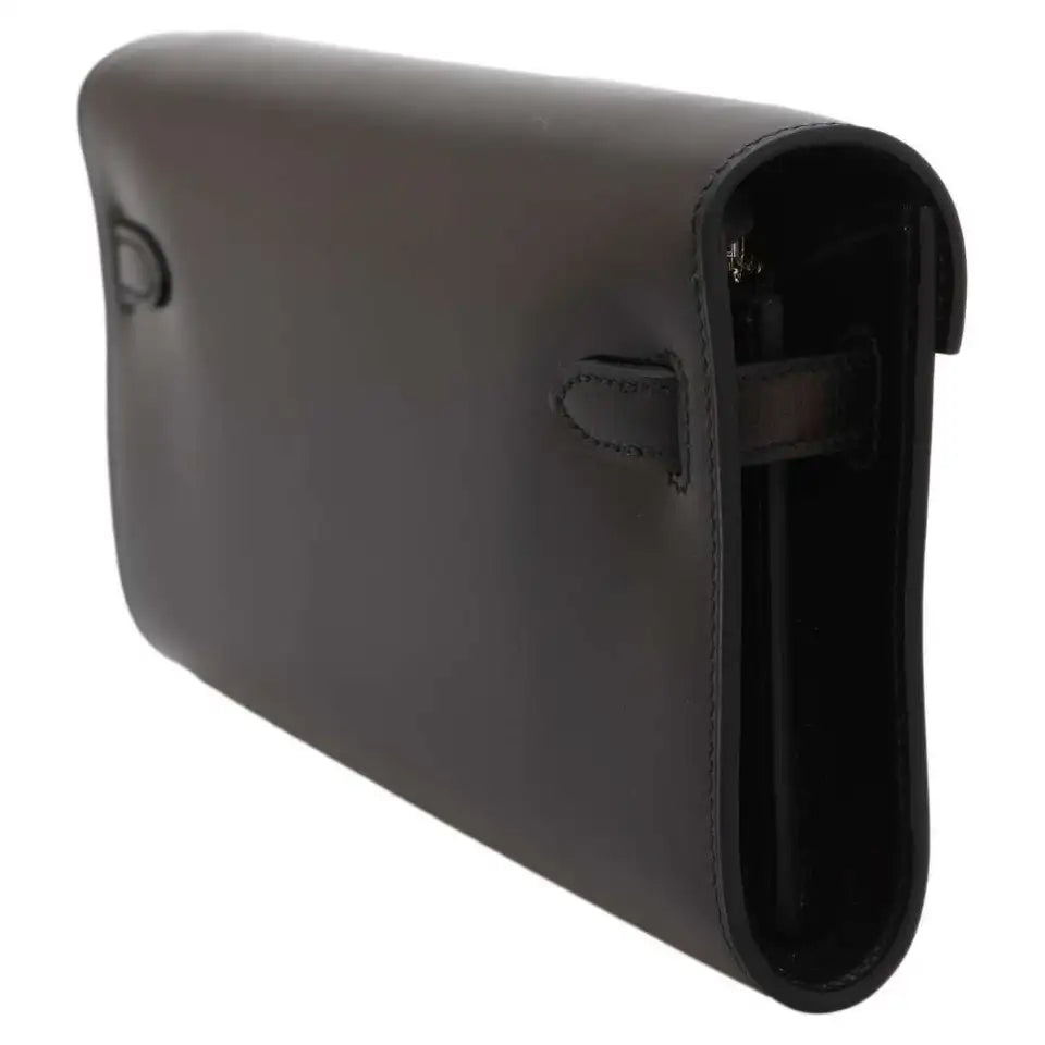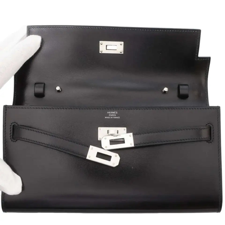 HERMES Kelly Wallet Long to Go Box Calf Leather Black