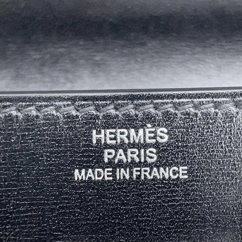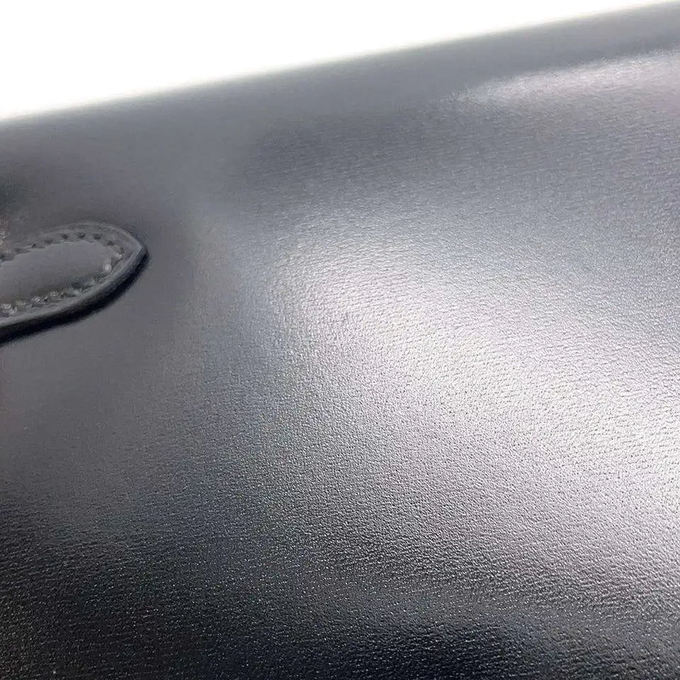 Experience the unparalleled craftsmanship of HERMES with this exquisite wallet, crafted from premium box calf leather in a timeless black shade. This pre-owned piece is a testament to HERMES's legacy of luxury and meticulous attention to detail. Presented in a condition that is virtually 'Like New', it shows minimal signs of wear, with scratches and stains that are almost imperceptible, reflecting the care with which it has been maintained.