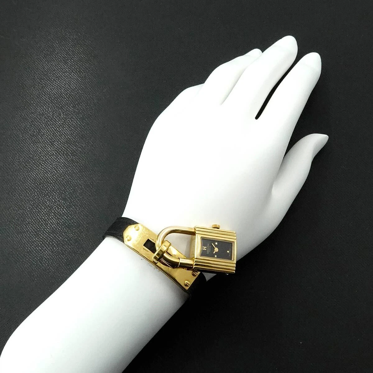 HERMES KELLY Watch Quartz Black Dial Leather Ladies Watch