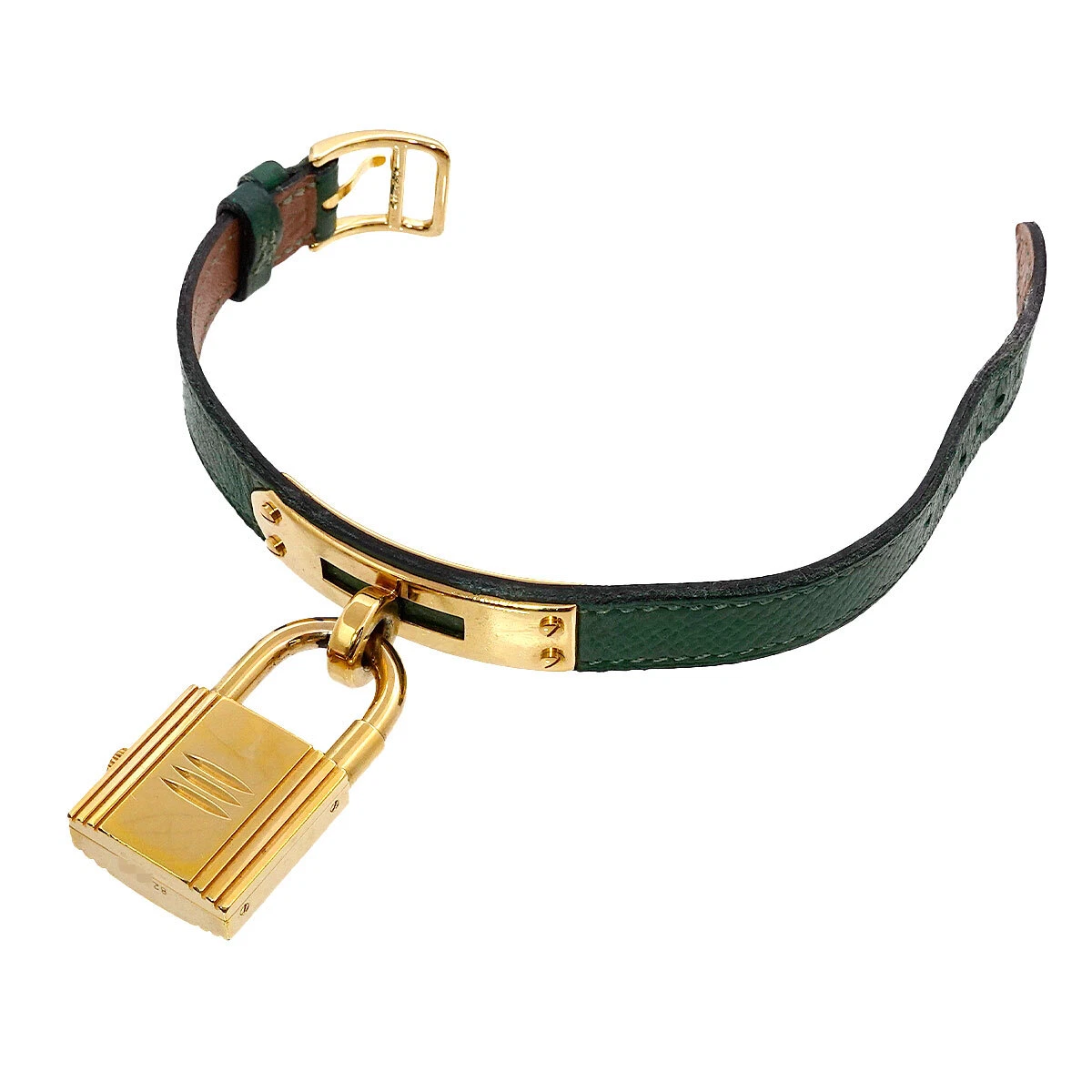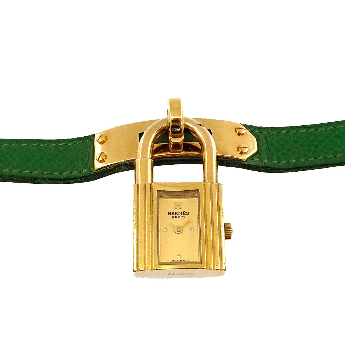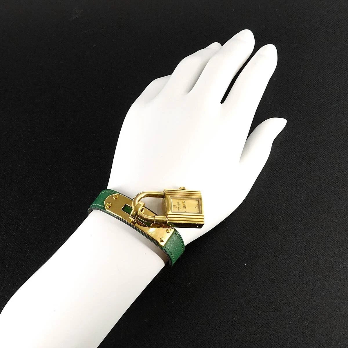 HERMES Kelly Watches Quartz Gold Dial Green Vintage Cadena Ladies Watch