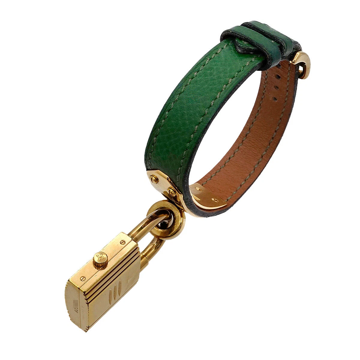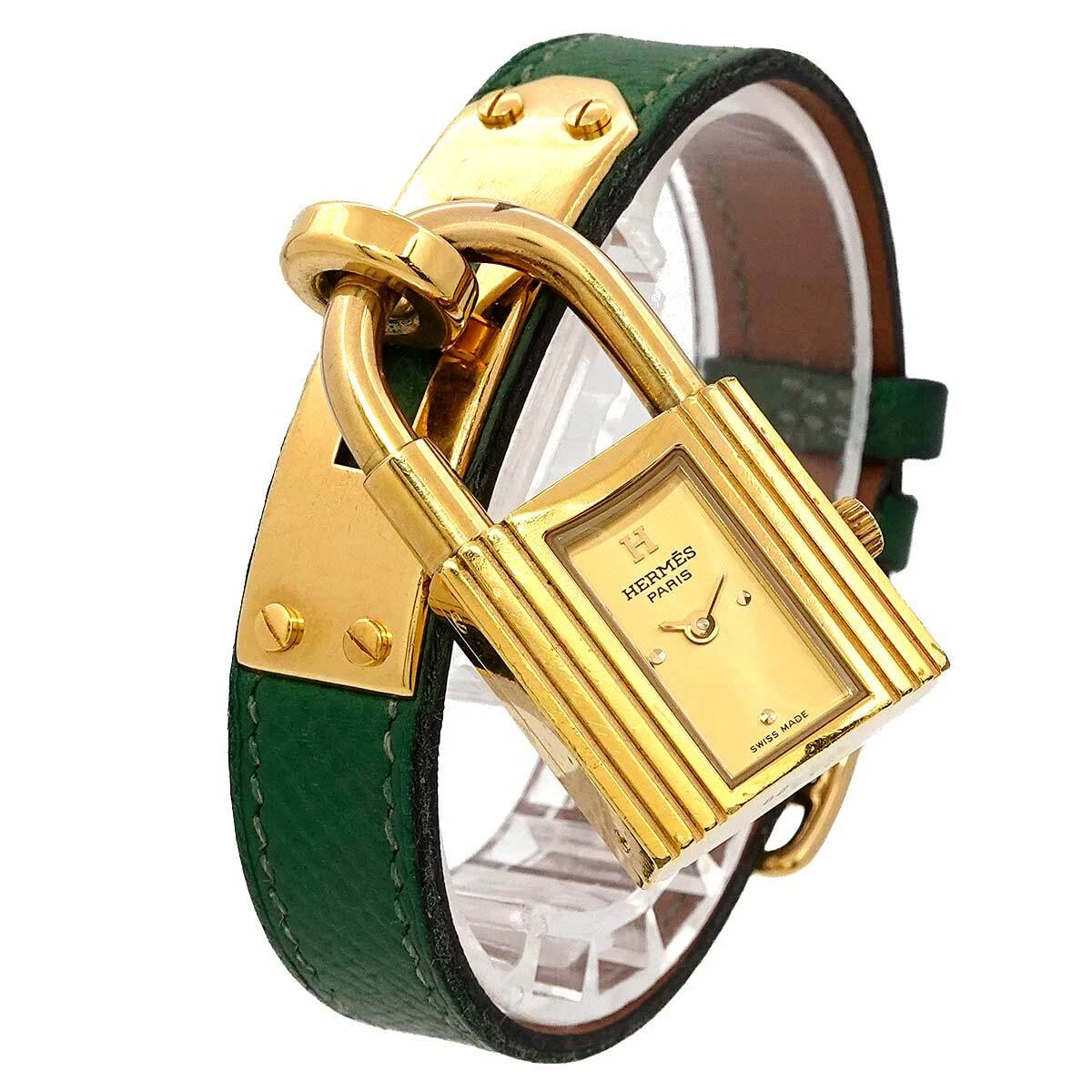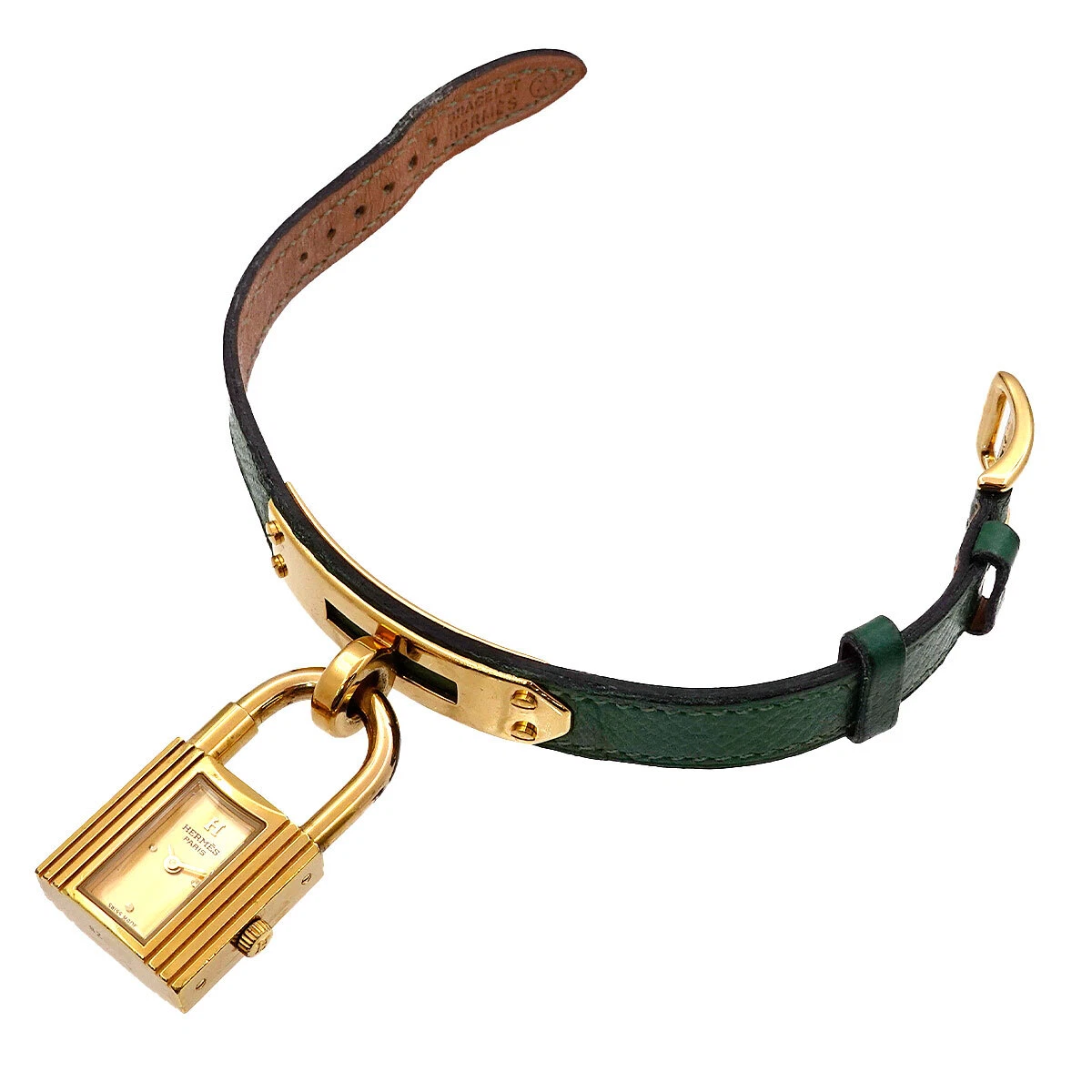 HERMES Kelly Watches Quartz Gold Dial Green Vintage Cadena Ladies Watch