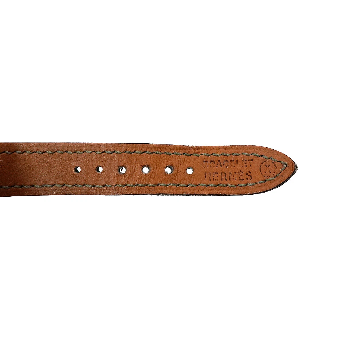 A timepiece exhibiting the patina of authentic vintage wear, this HERMES Kelly Quartz Gold Dial Watch displays minor glass scratching while maintaining a well-preserved dial and hands. The case presents light surface abrasions with minimal plating deterioration. The bracelet features subtle friction marks on both the plate and buckle, with the leather strap showing nominal wear and residue consistent with its age.